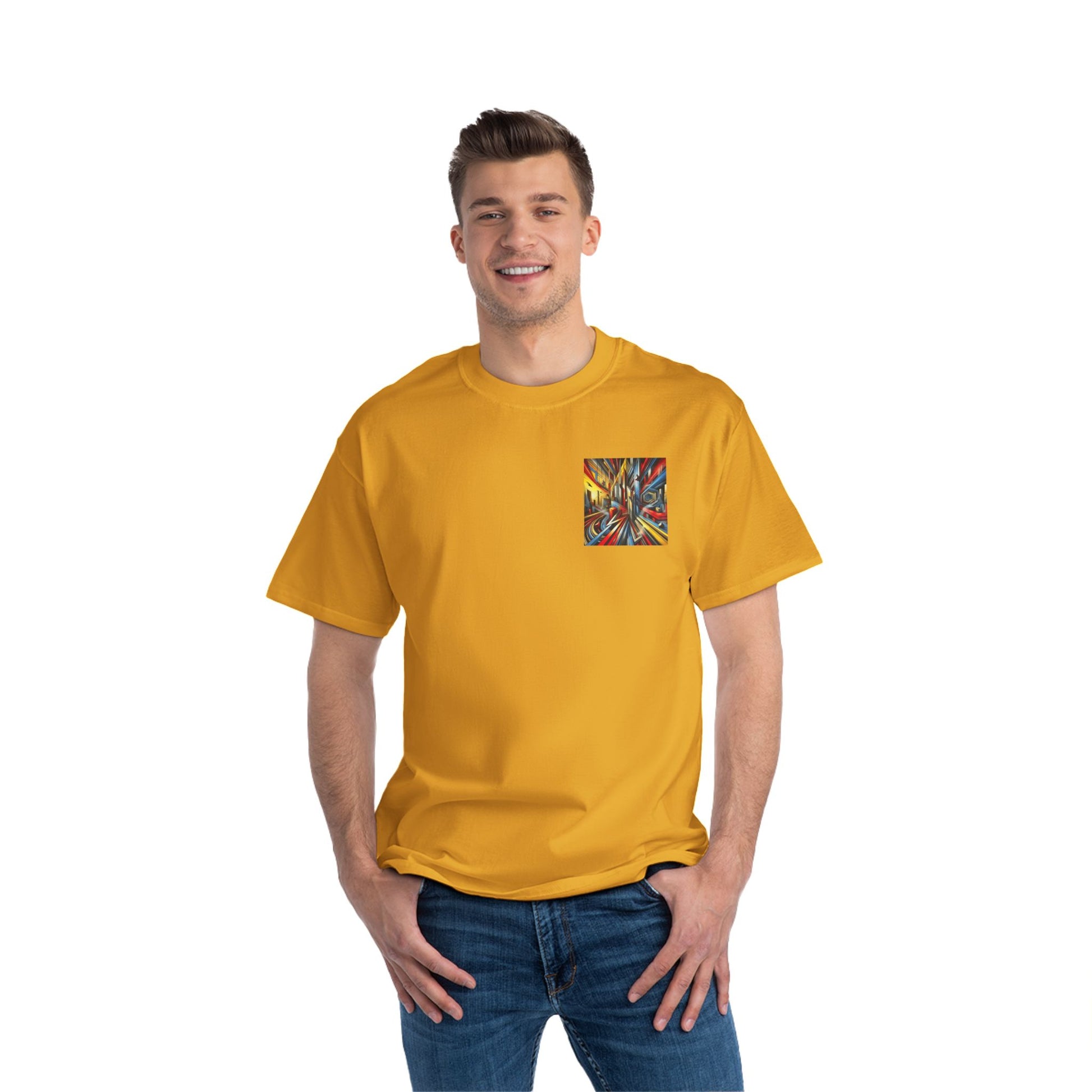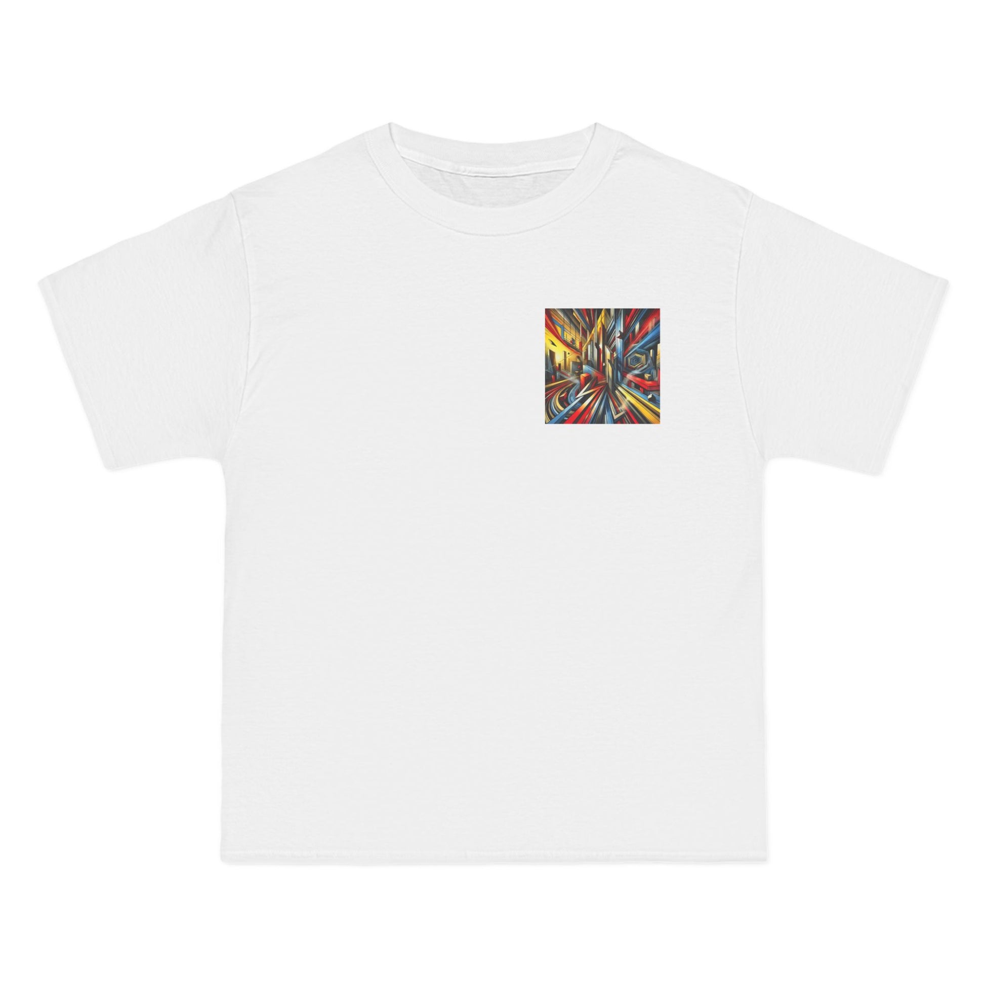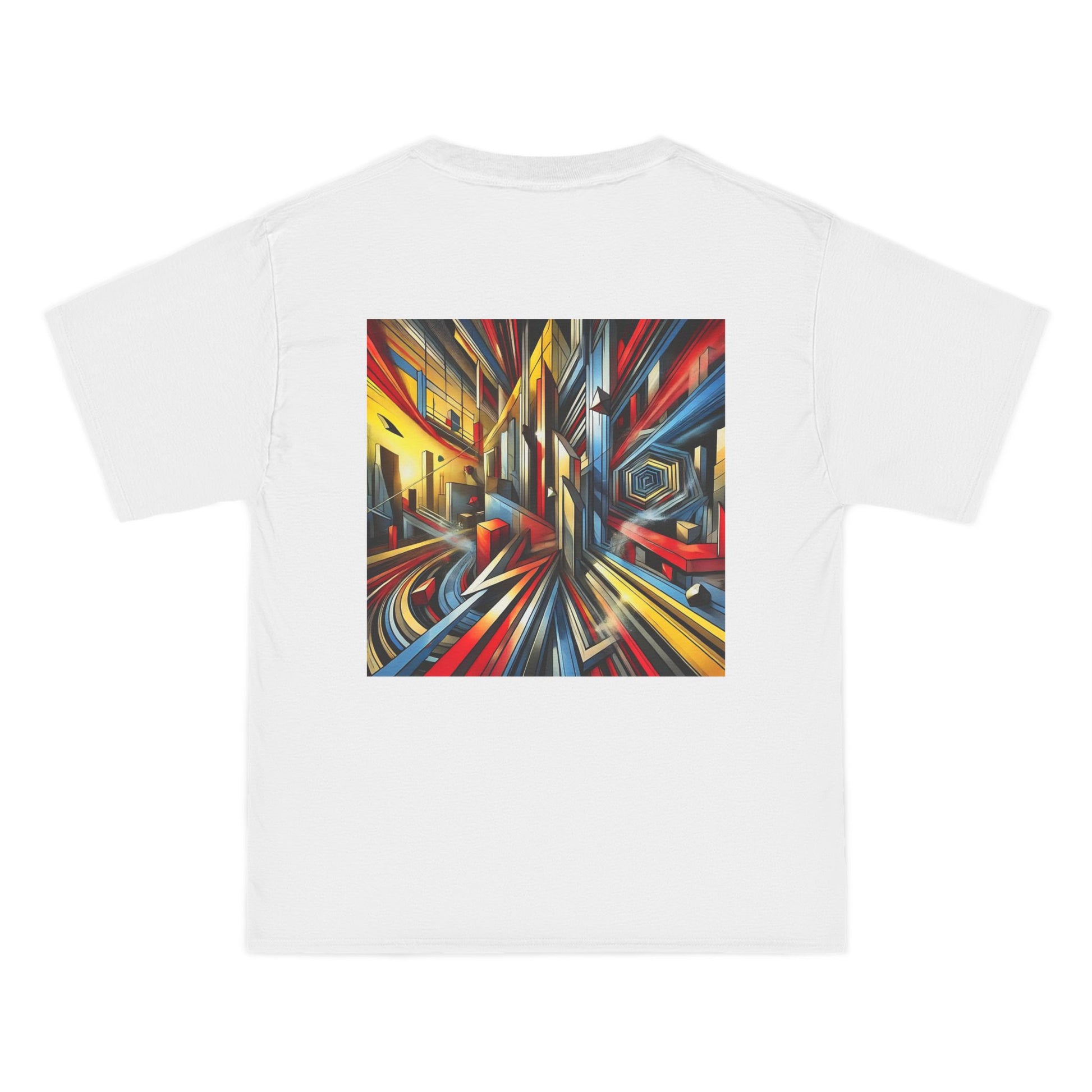 Unleash the power of your imagination with our Geometric Chaos: Futurist Expressionism design. A flaring fusion of sharp, angular geometric shapes dancing with a vibrant cityscape, this print serves as a testament to the dynamic interaction between urban chaos and form. It's not just a piece of clothing, it's wearable art that allows you to 'Wear Your World' in your own unique way.