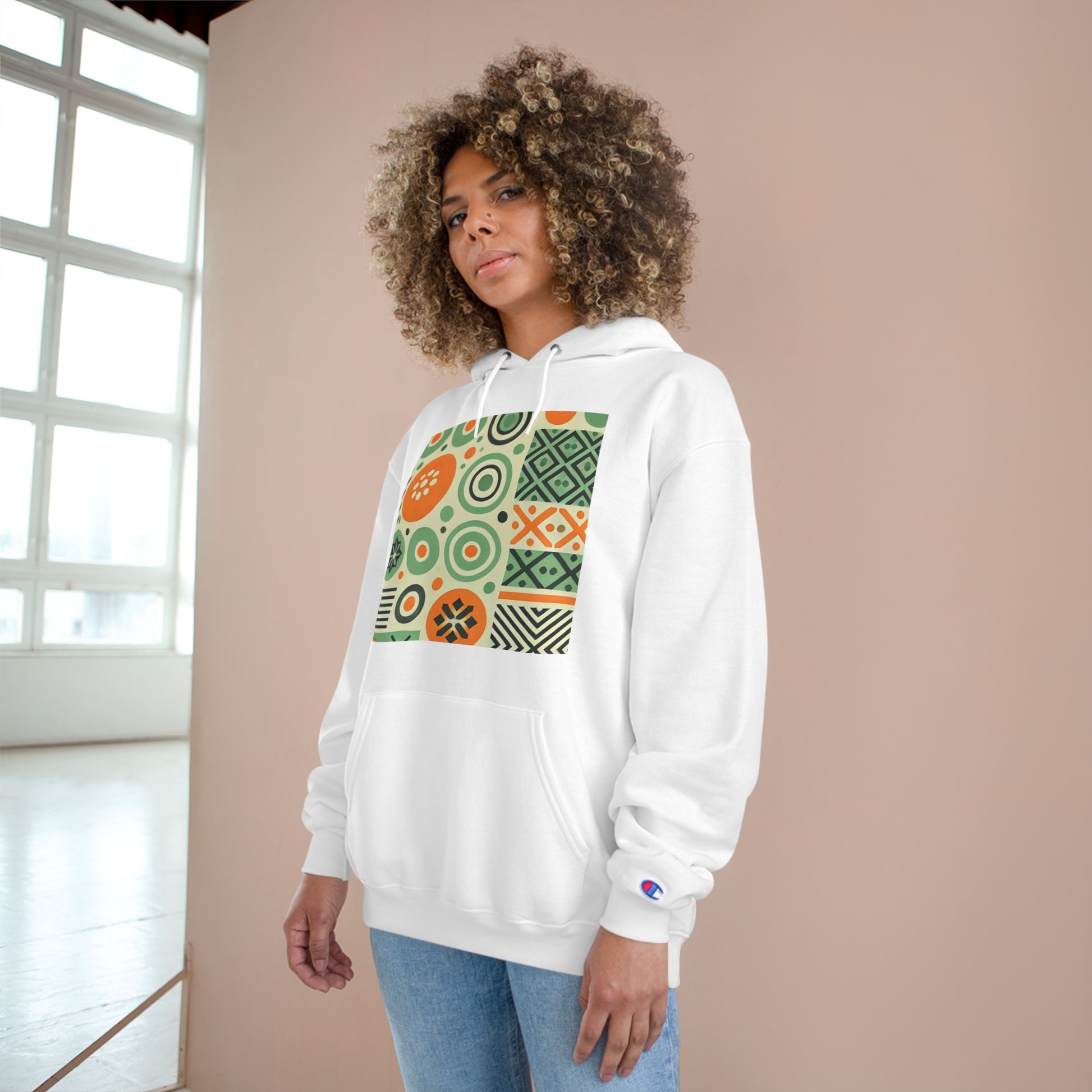 Step into the Whatever Clothing universe with our Geometric Shapes: Floral Orange Vibe hoodie, a unique expression of your world in wearable art. This piece is a nostalgia-drenched journey back in time with a retro-inspired pattern that screams creativity. Bursting with circles, squares, and chevrons in vibrant shades of green and orange, it's a tribute to the bold and the beautiful, designed for those who dare to be different.