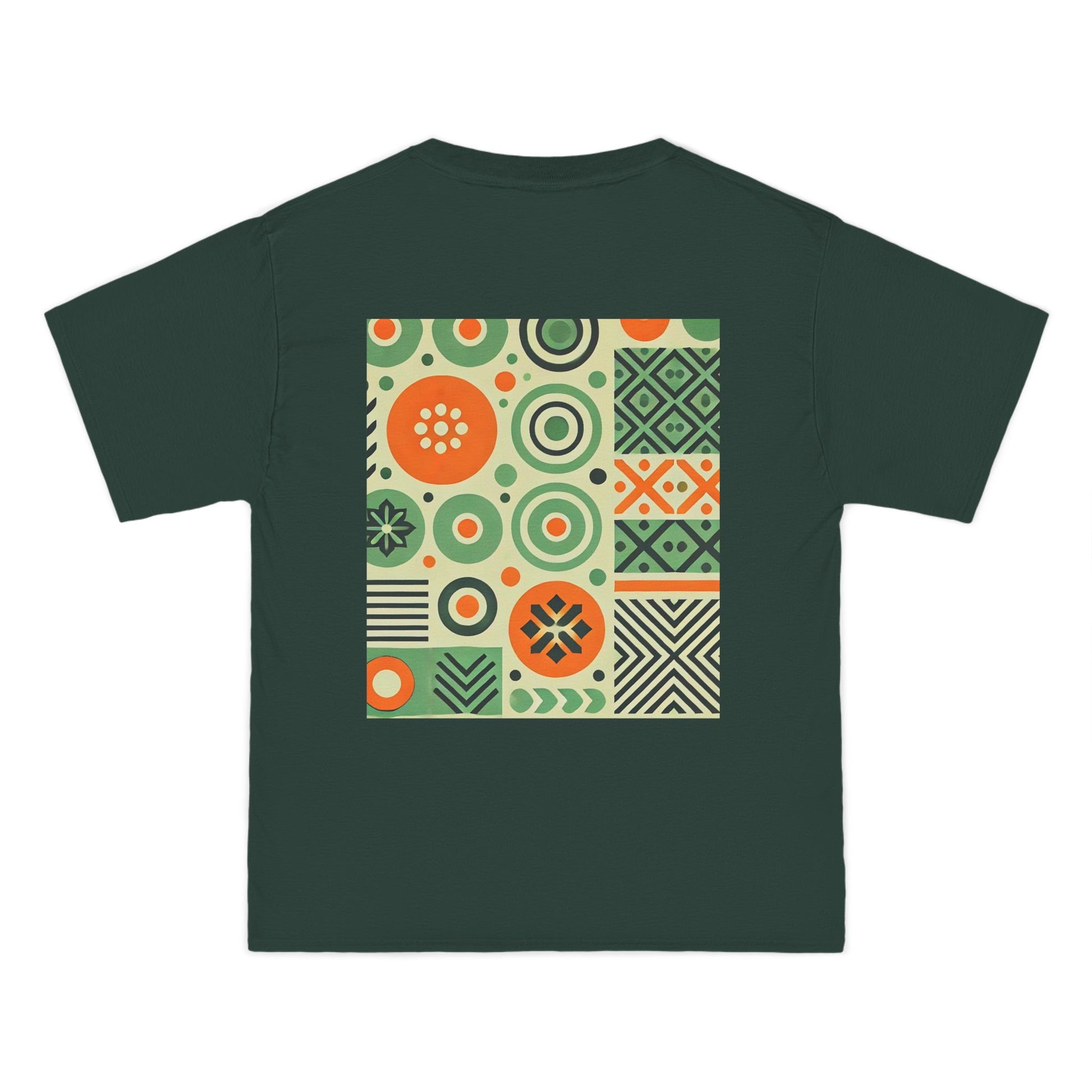 Step into the vibrant world of 'Geometric Shapes: Floral Orange Vibe', a wearable masterpiece from Whatever Clothing! This lively design is a dazzling journey through a geometric jungle of circles, squares, and chevrons, bursting with vivid shades of green and orange. Our AI-powered technology has transformed a simple pattern into a retro-inspired, wearable art, perfect for expressing your unique style.