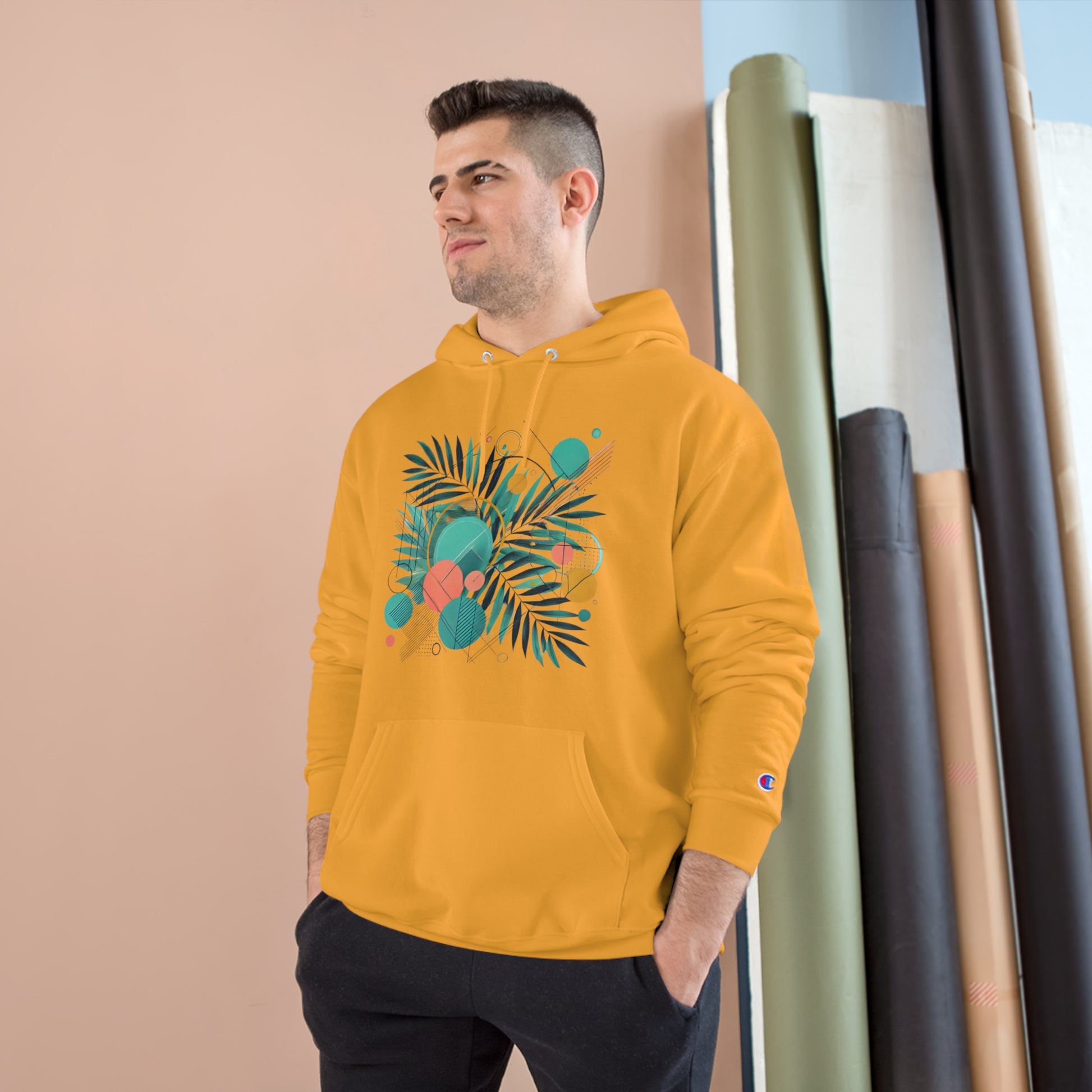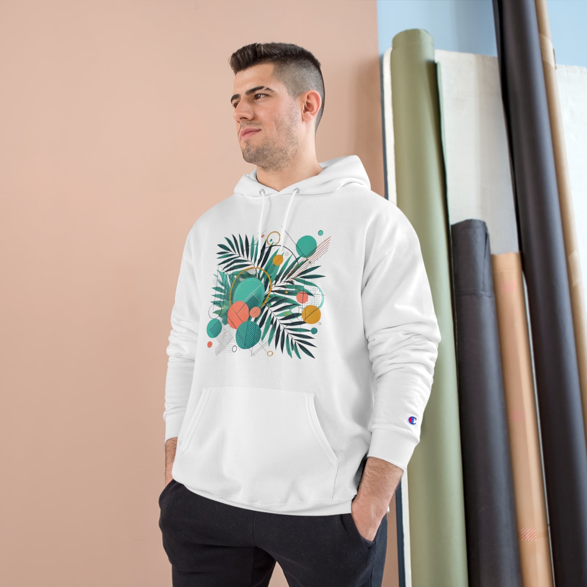 Unleash your creativity with our Geometric Shapes: Tropical Vibe hoodie! This piece of wearable art, created with our revolutionary AI, intertwines abstract geometric shapes and tropical leaf patterns in a vibrant color palette that's sure to enliven your wardrobe.