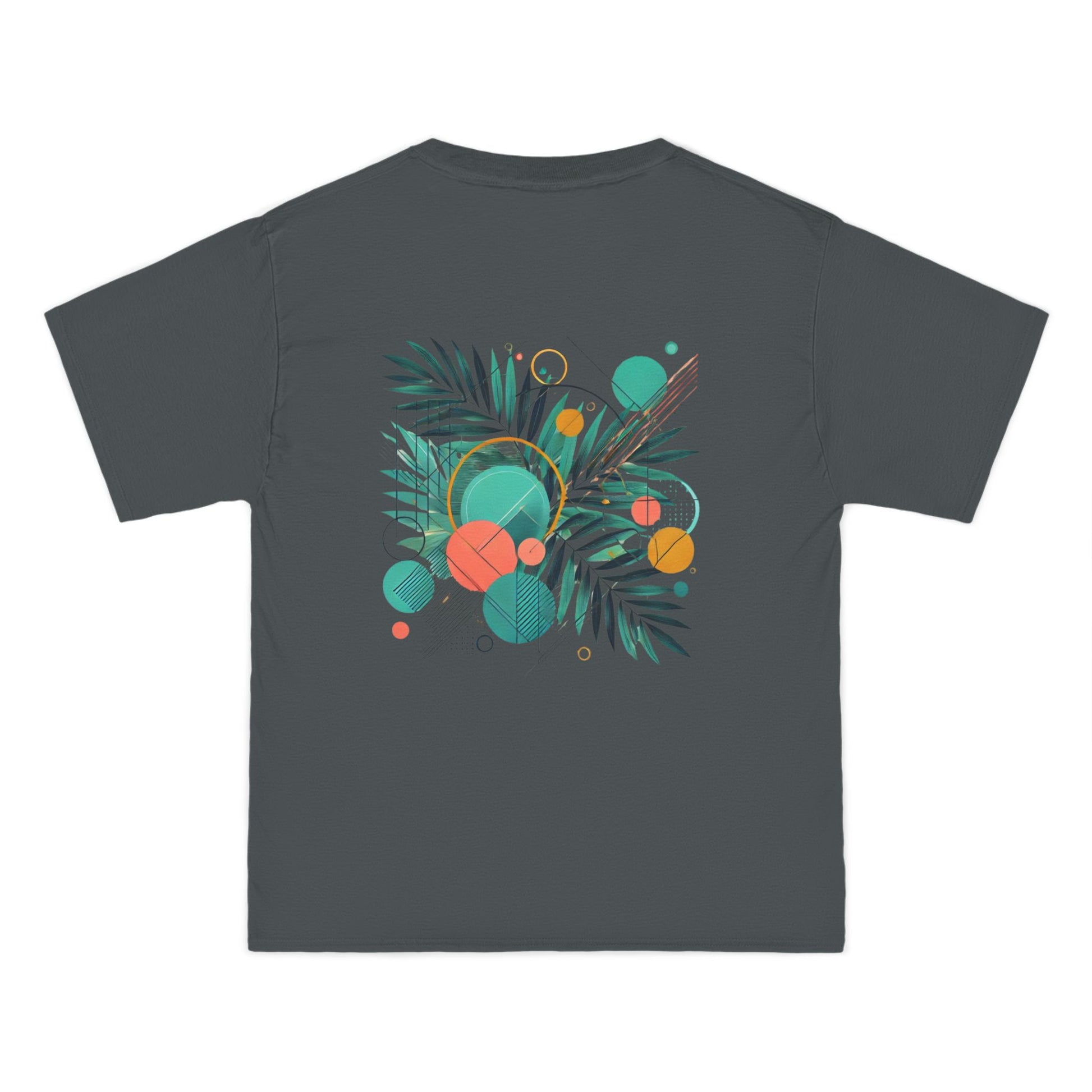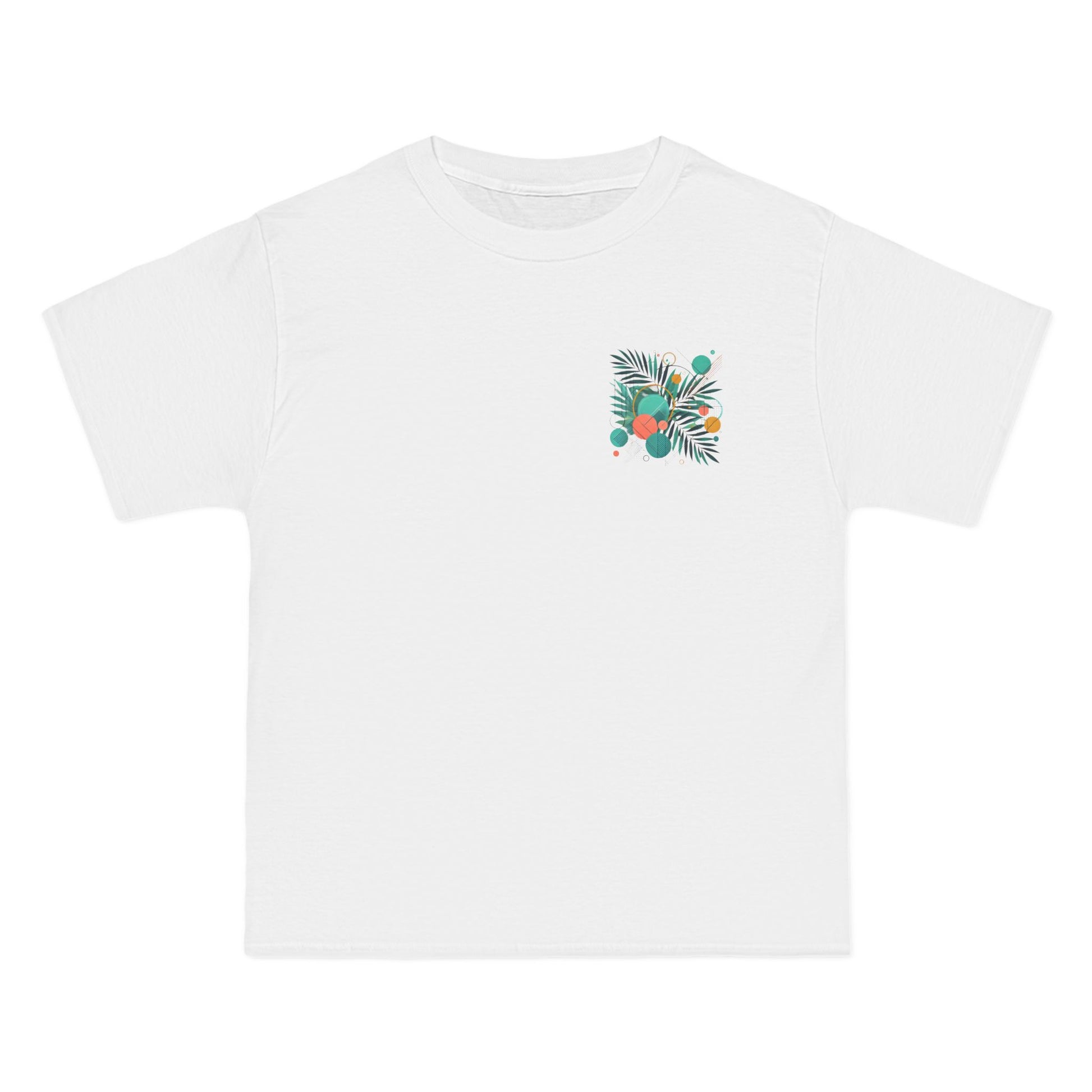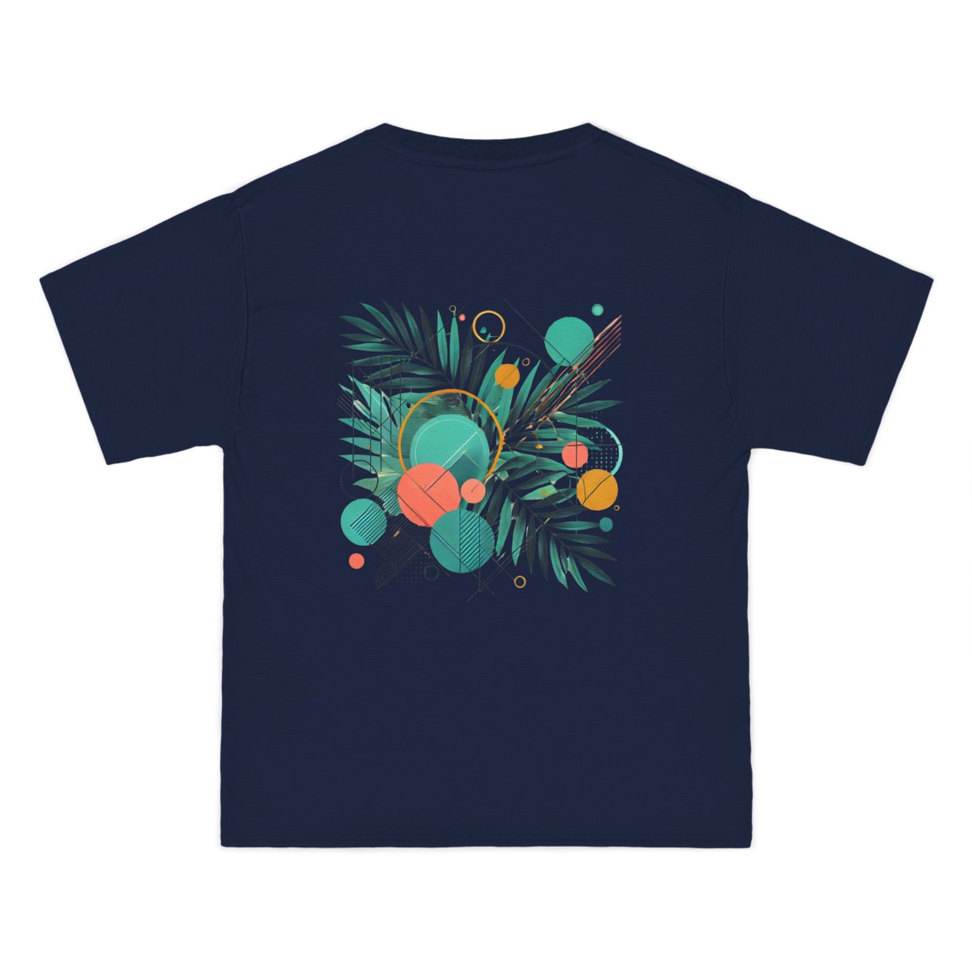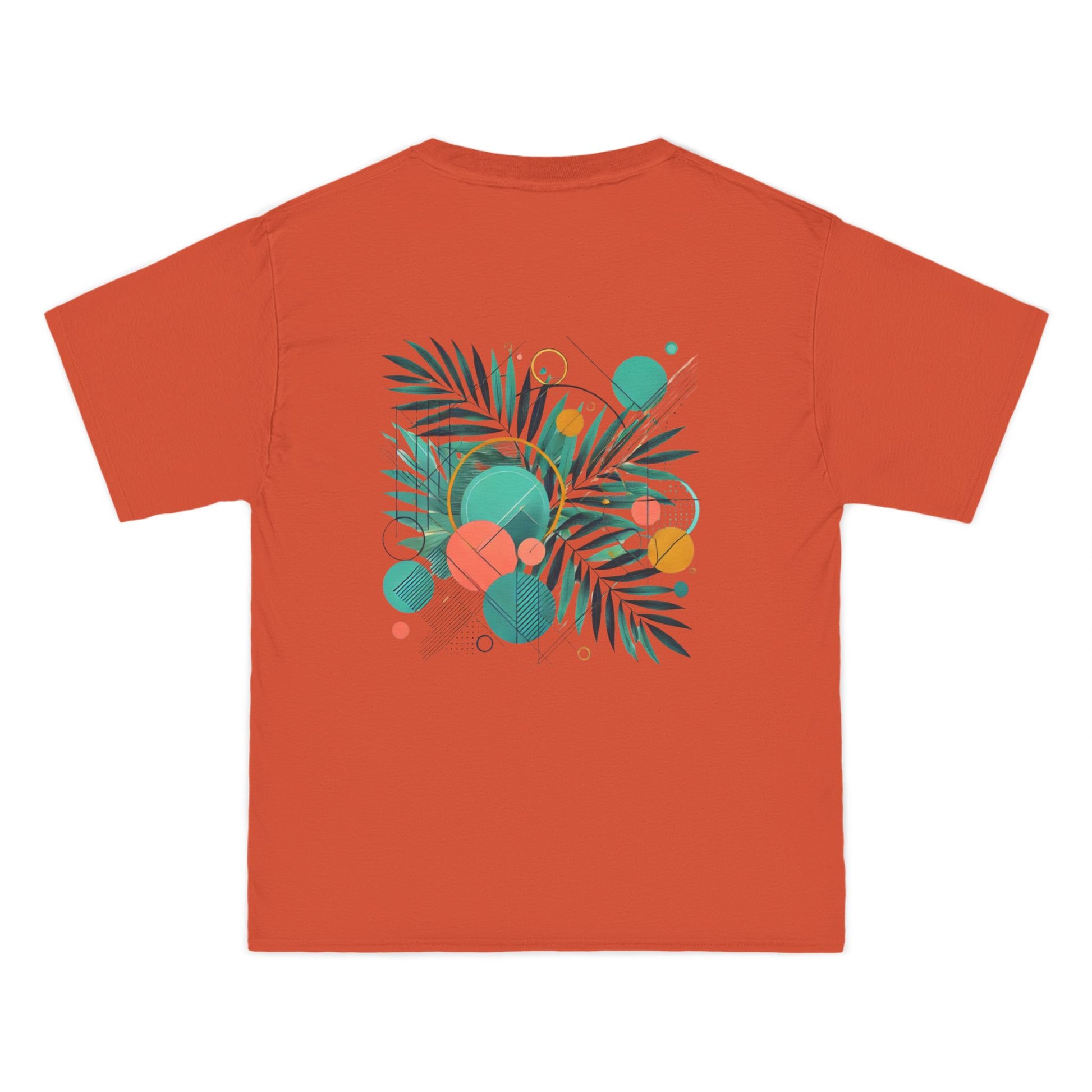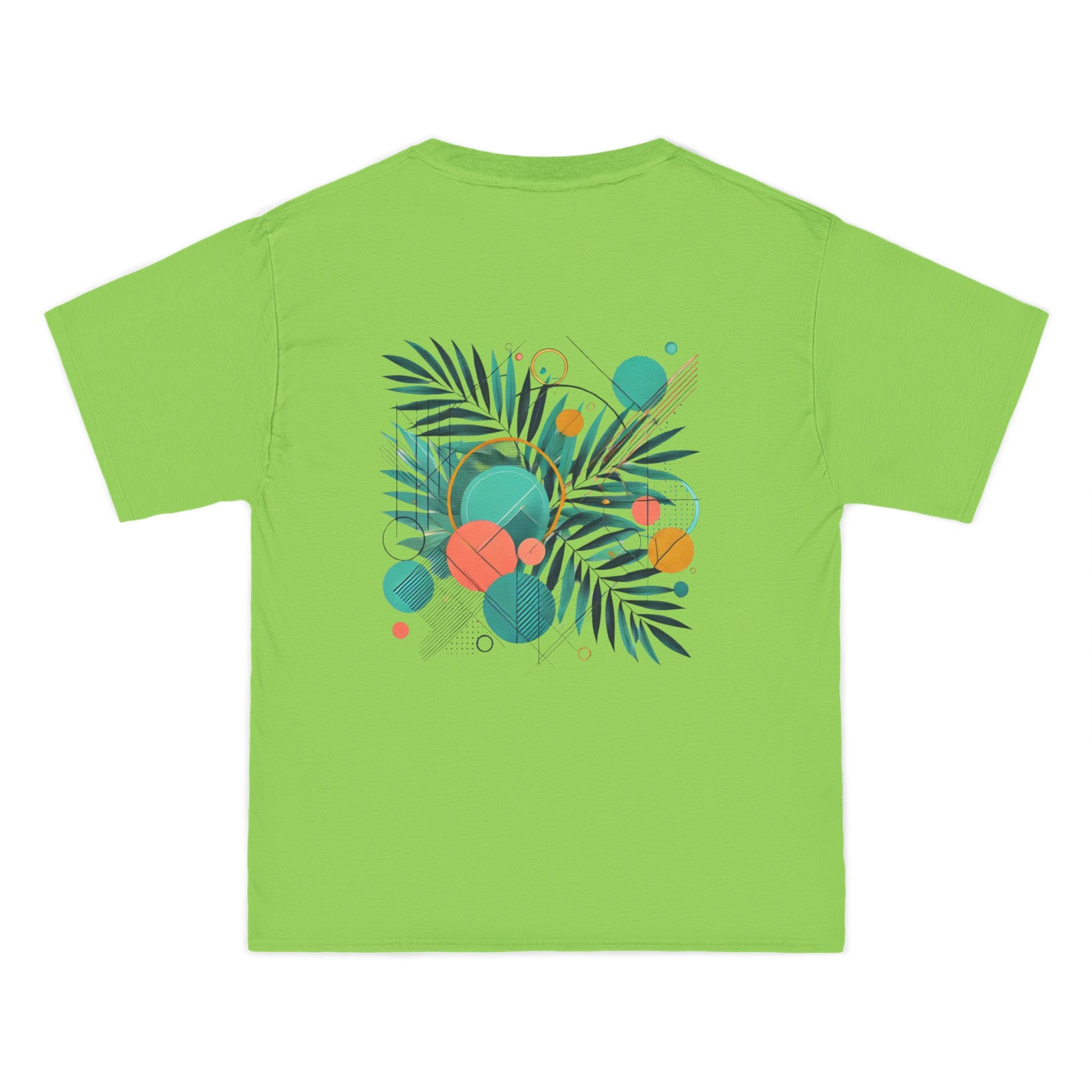 Step into a world of color and express yourself like never before with our Geometric Shapes: Tropical Vibe tee. Crafted with passion and precision, this wearable art piece marries abstract geometric shapes with the lush allure of tropical leaf patterns, all in a symphony of vibrant colors.