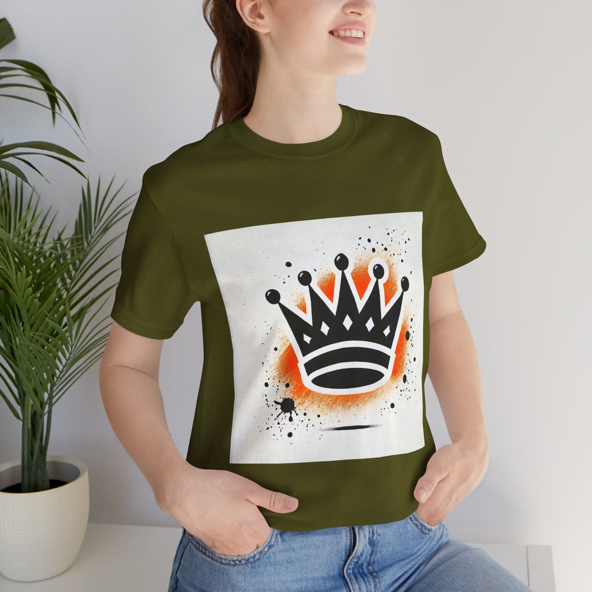 A black crown with rough, sharp points and an orange splatter for a graffiti-inspired look.