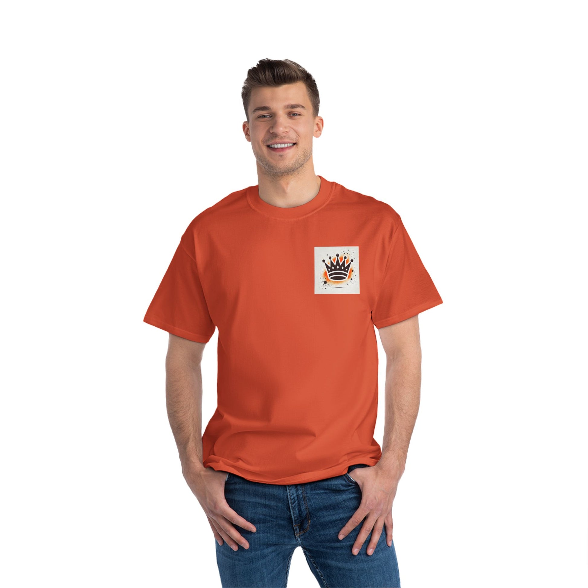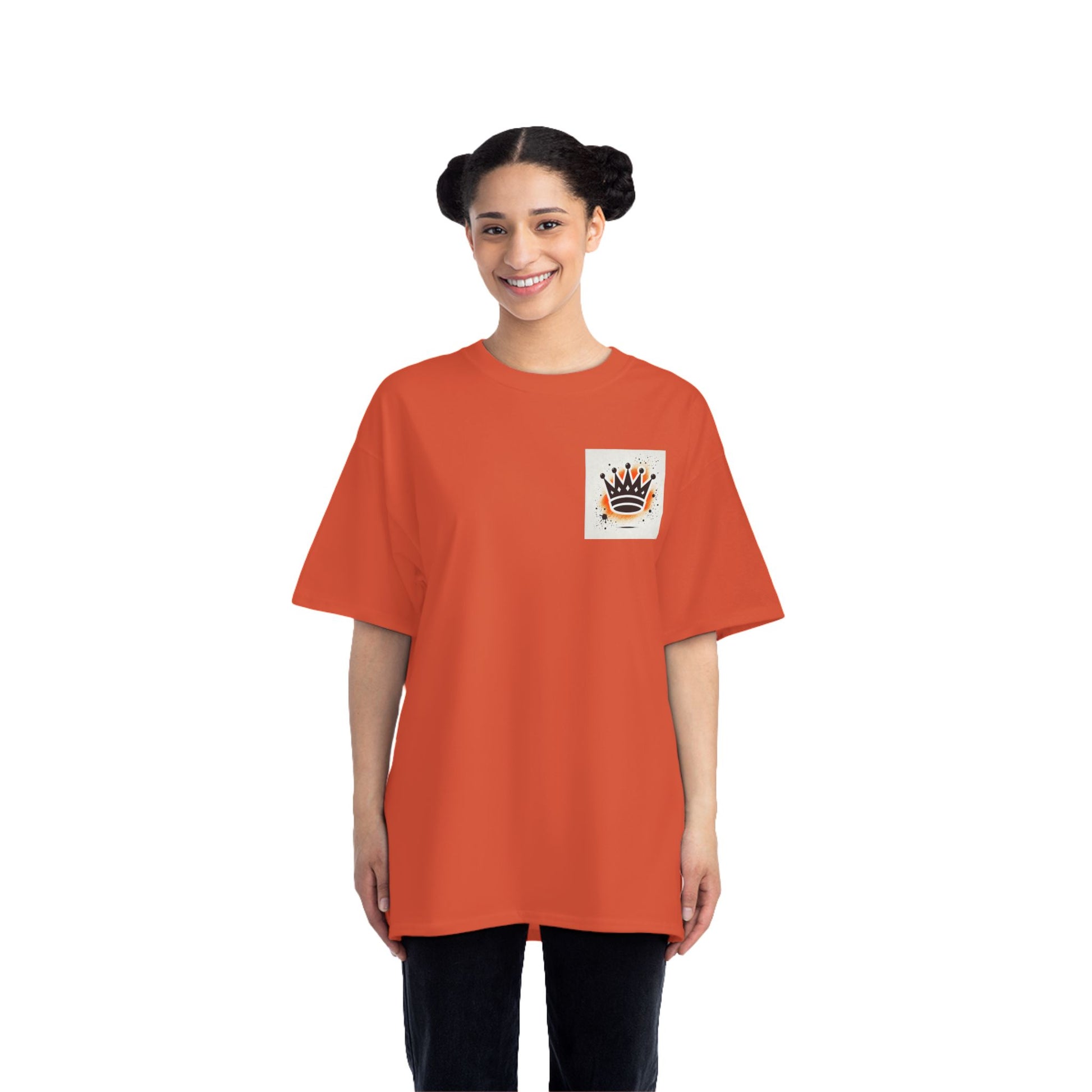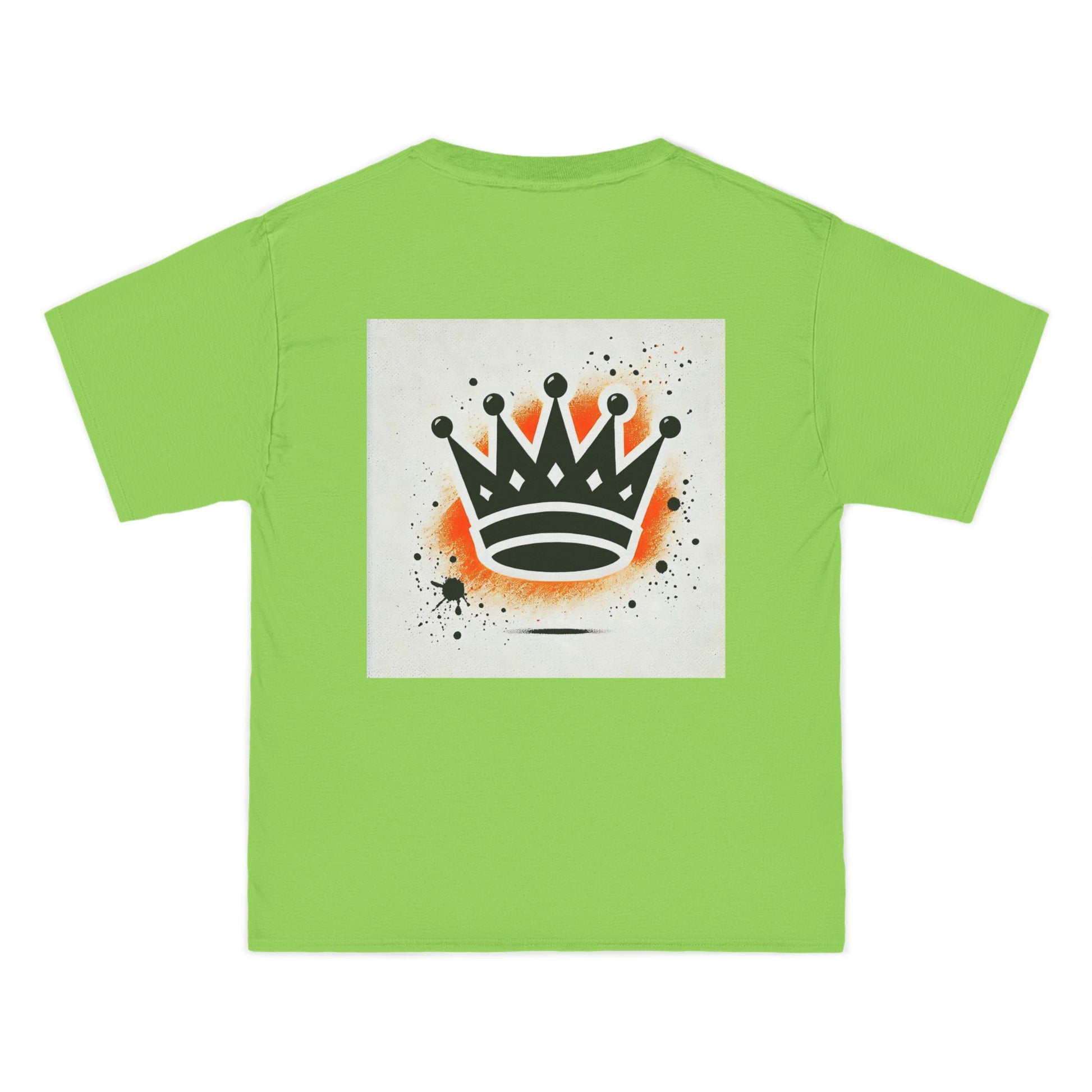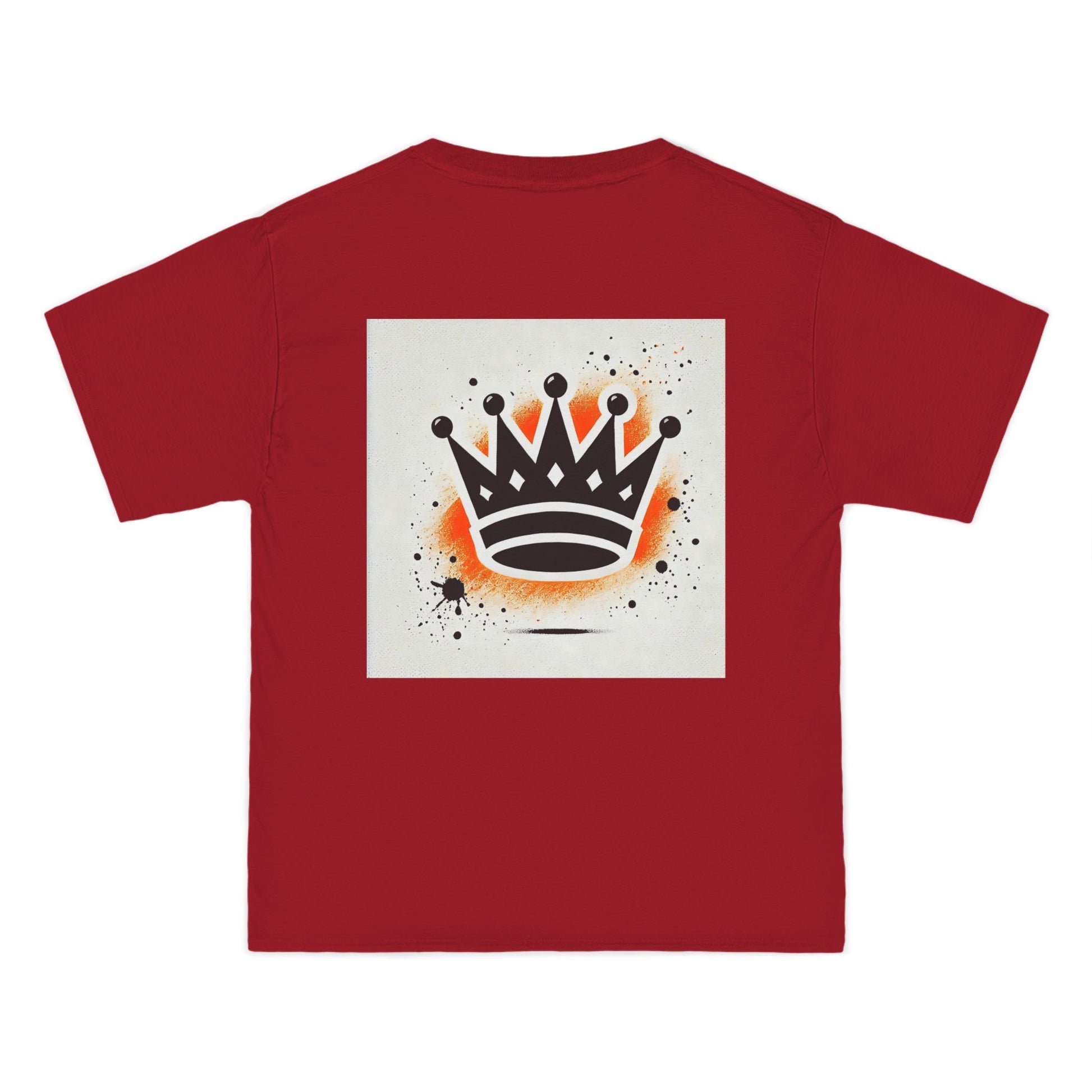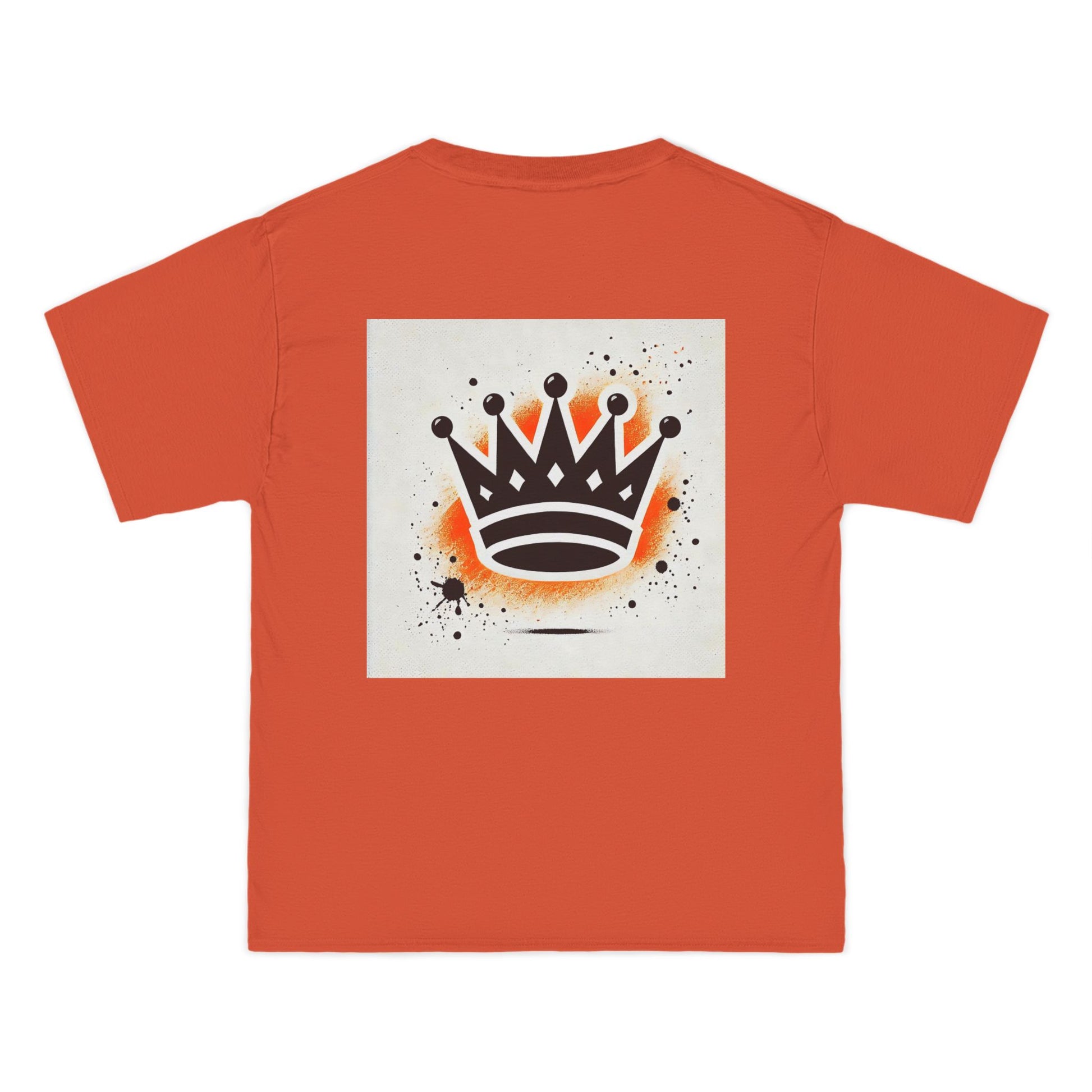 Meet our Graffiti Crown: Pop Art Minimalistic tee. It's more than just a shirt; it's a canvas that celebrates your individuality. The shirt features a bold black crown with sharp, edgy points, splashed with a vibrant orange for that authentic graffiti-inspired look. It's a statement piece designed to empower you to "Wear Your World" with pride.
