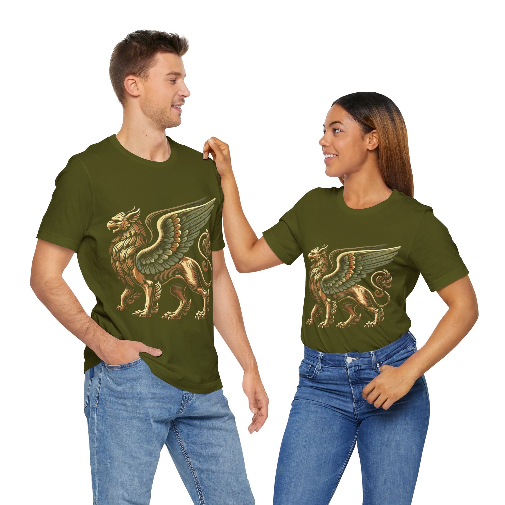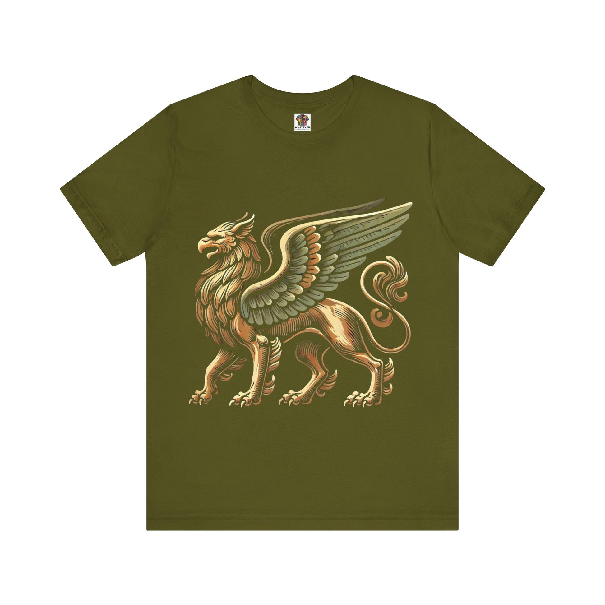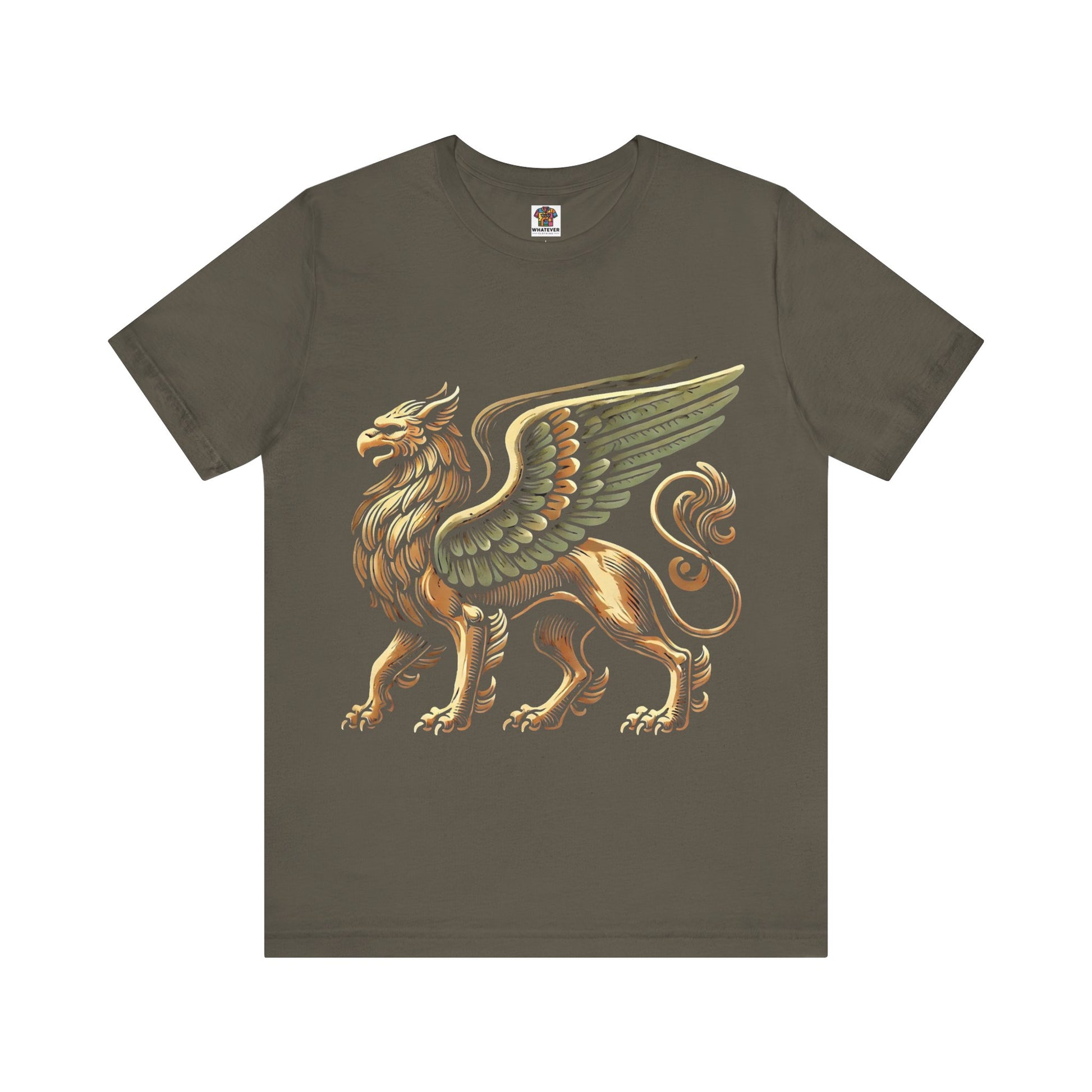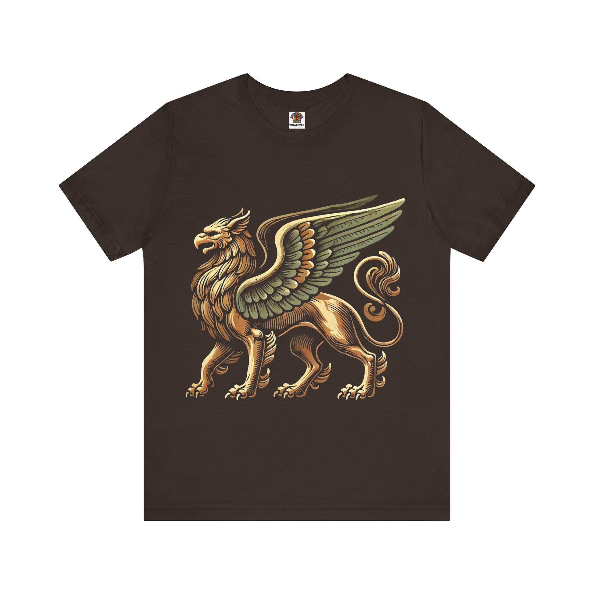 A mythical griffon with muscular features and detailed feathers, rendered in bronze and muted browns, symbolizing power and majesty.