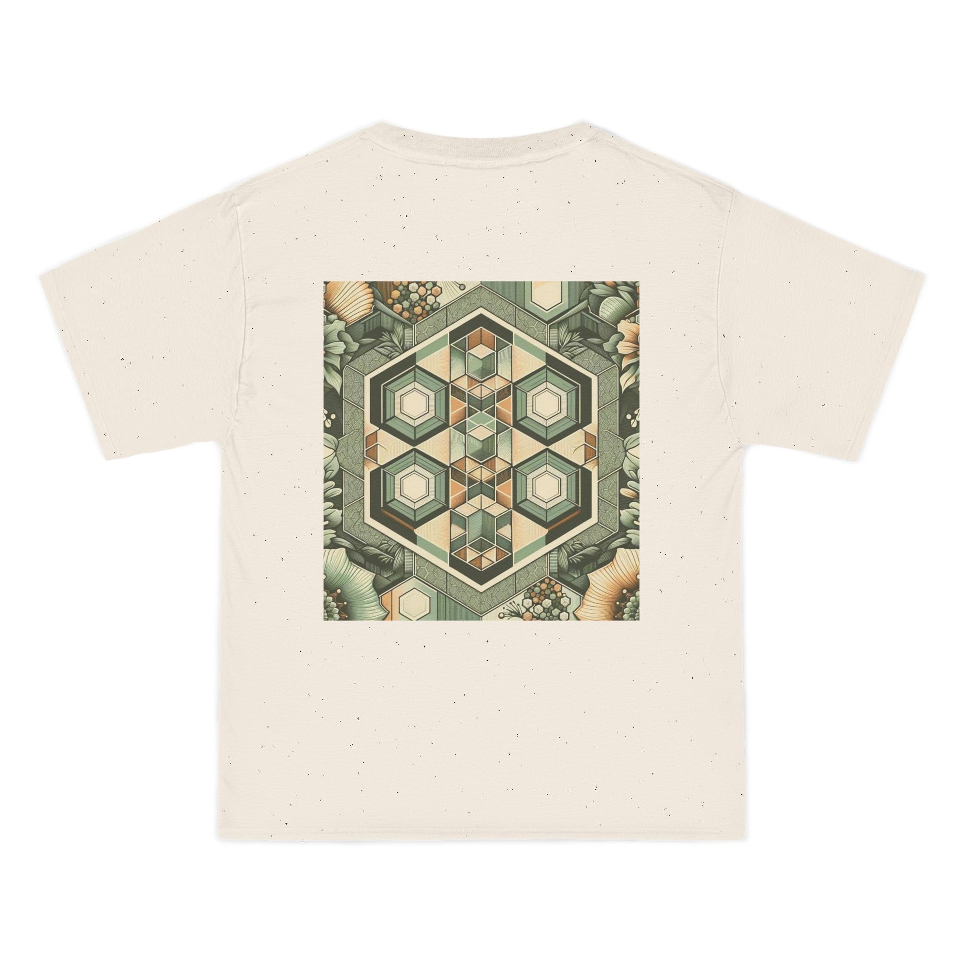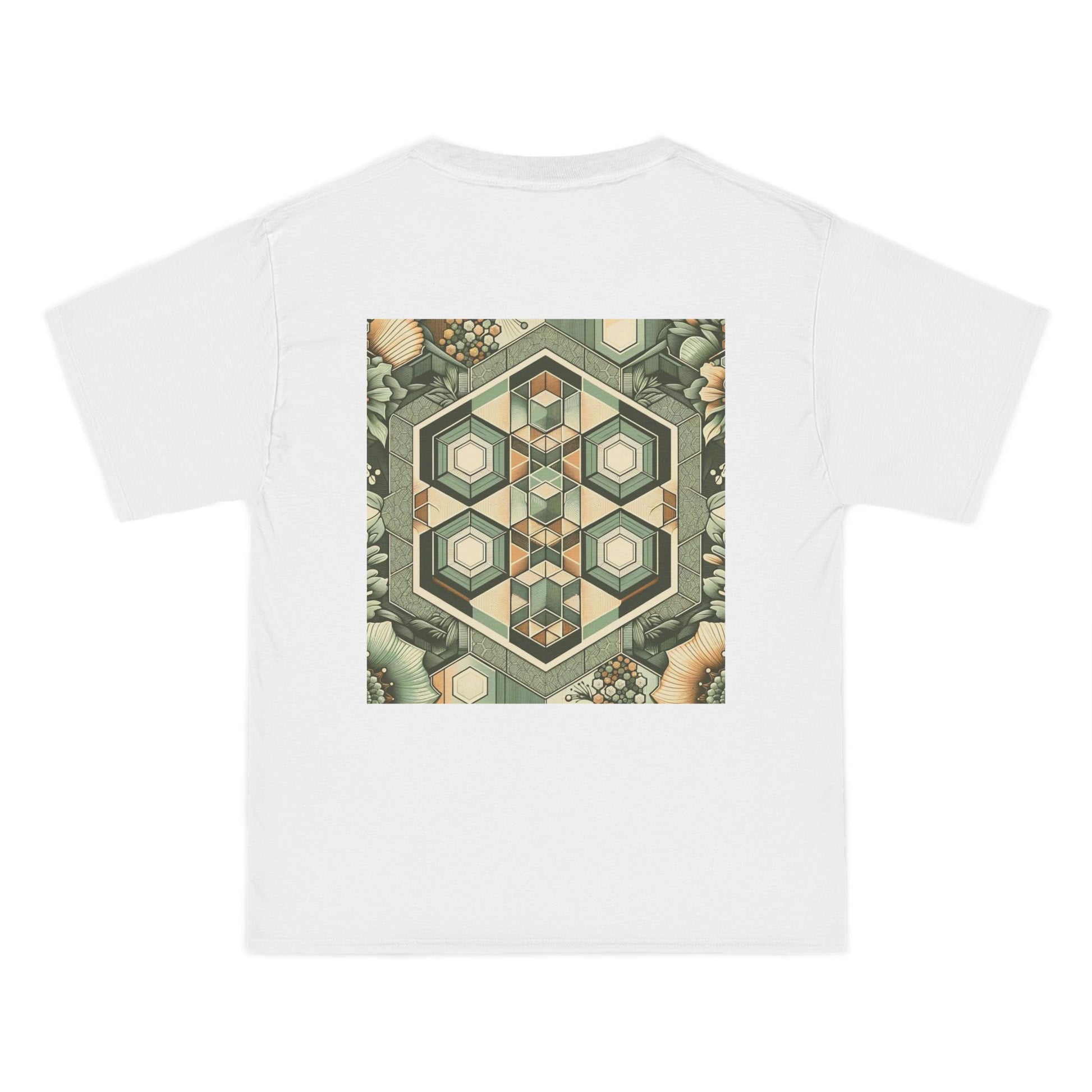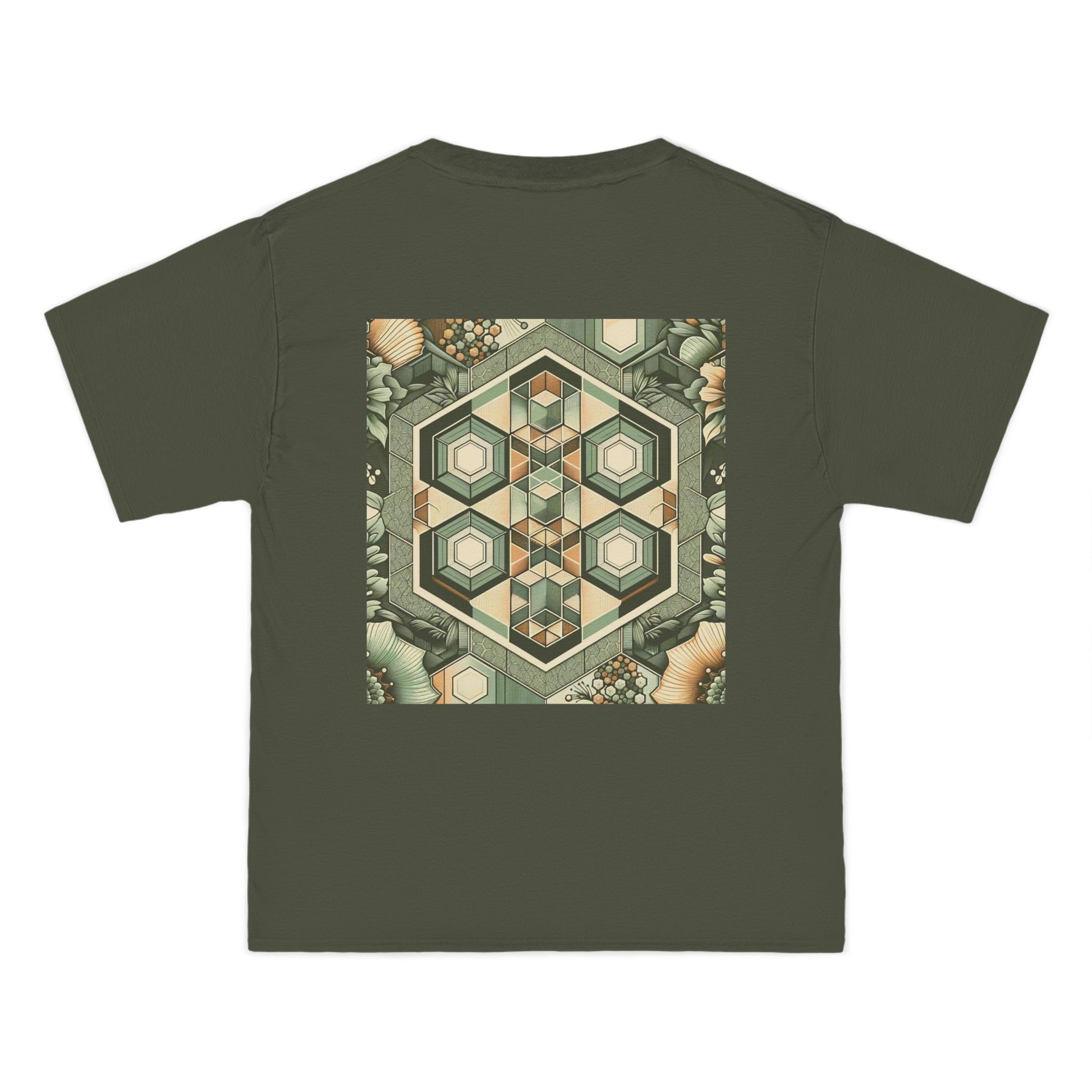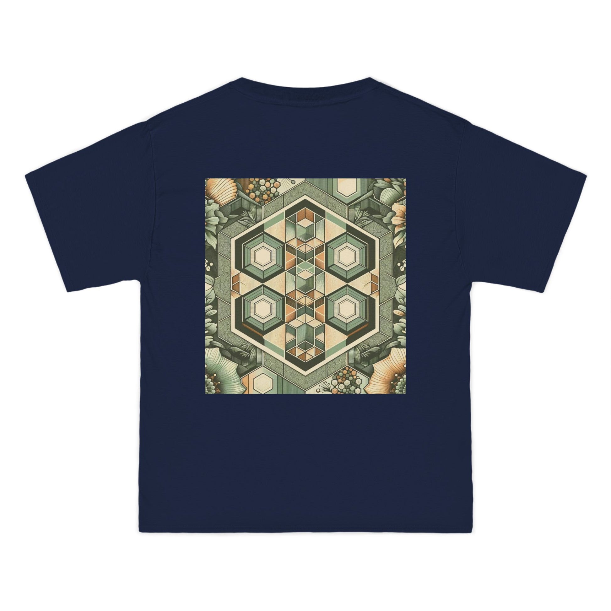 Dive into the world of wearable art with our Hexagonal Patterns: Floral Sepia shirt. Let your personality shine through the interconnected hexagons, reminiscent of a honeycomb, in soothing green and warm orange tones. The floral accents breathe life into the design, making it a one-of-a-kind piece that radiates creativity and individuality.