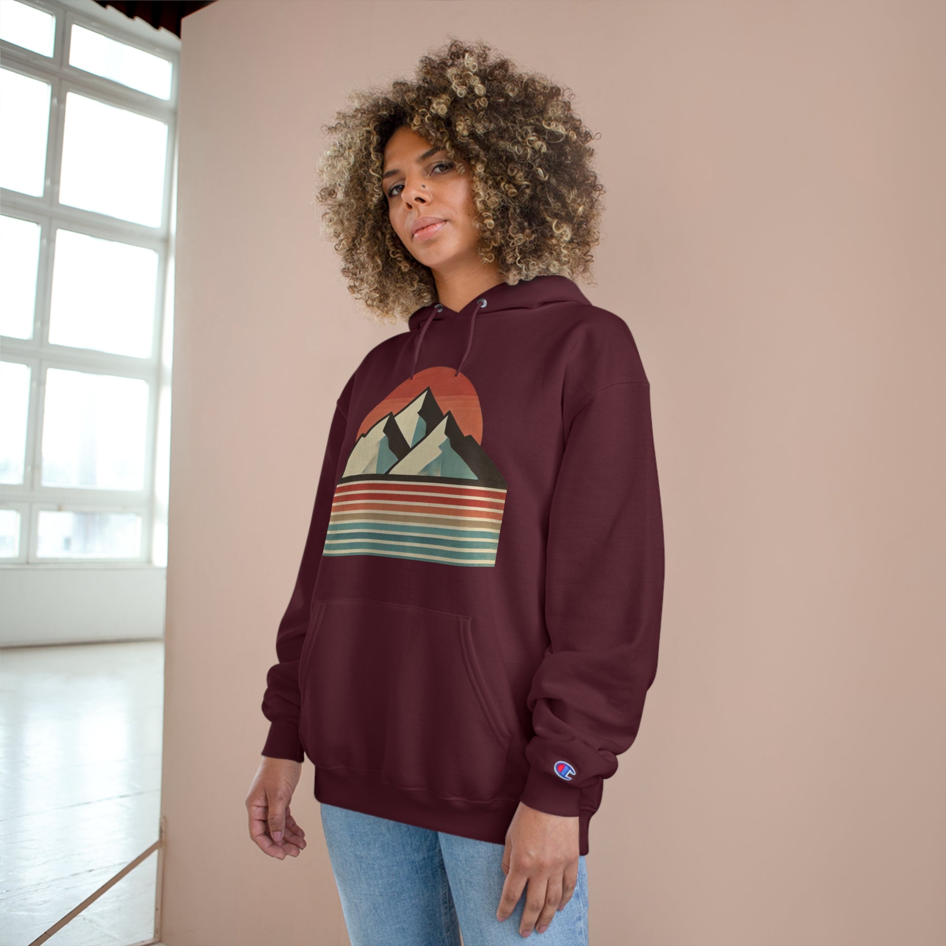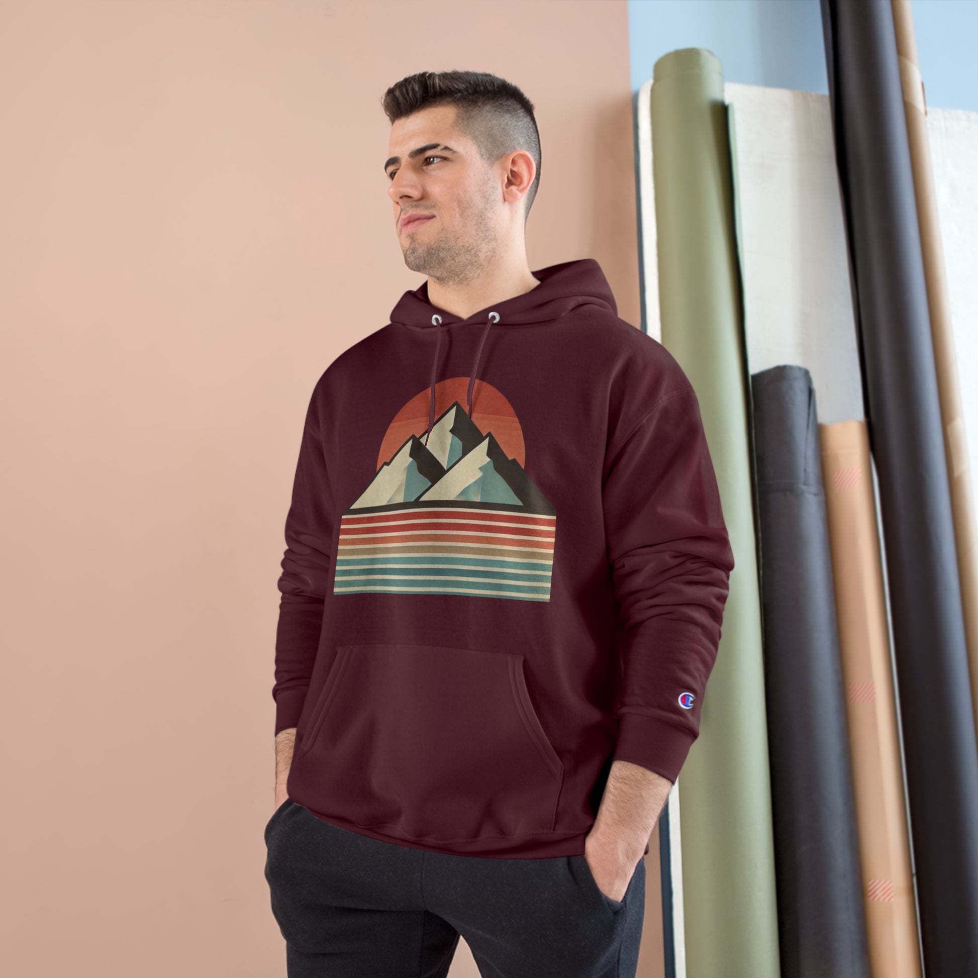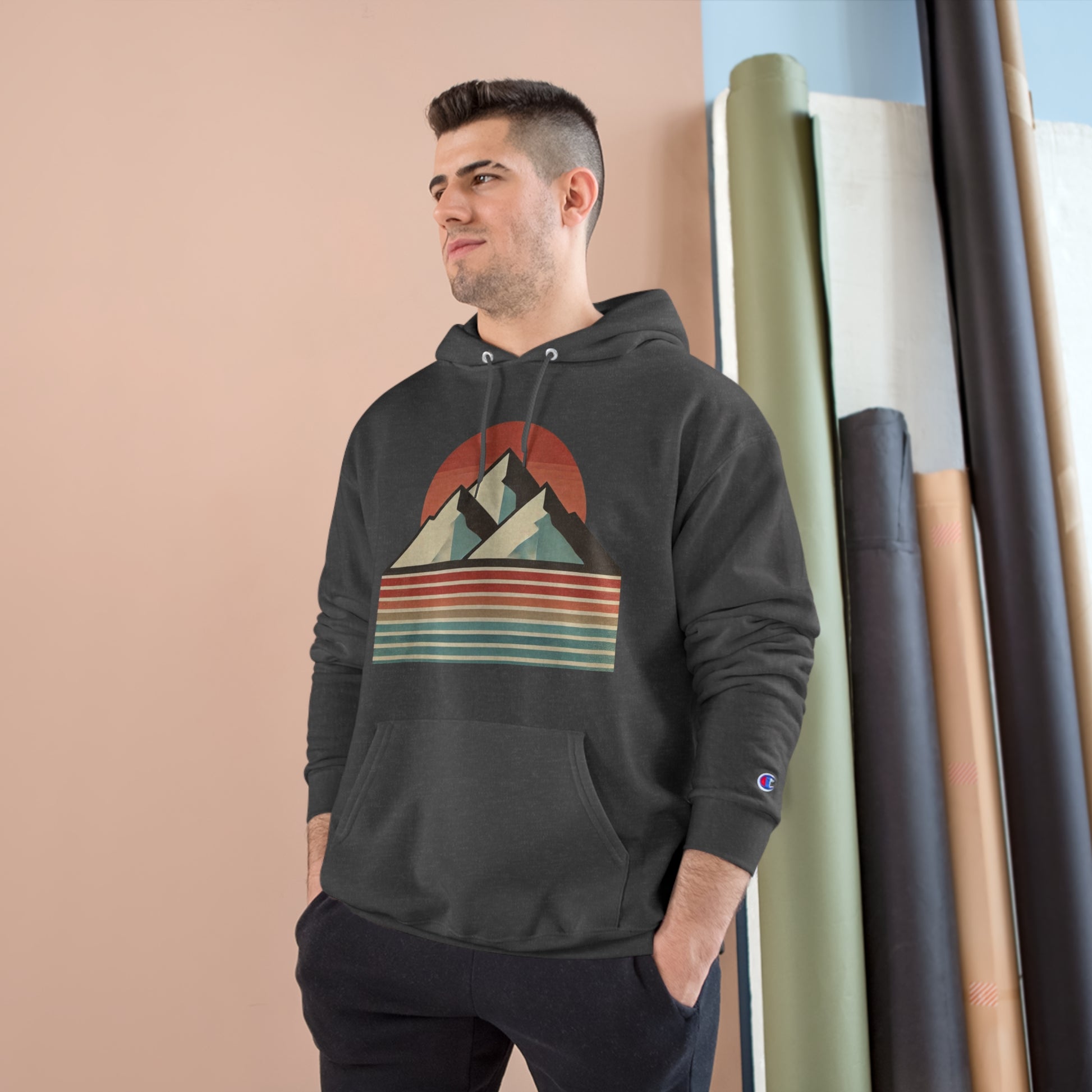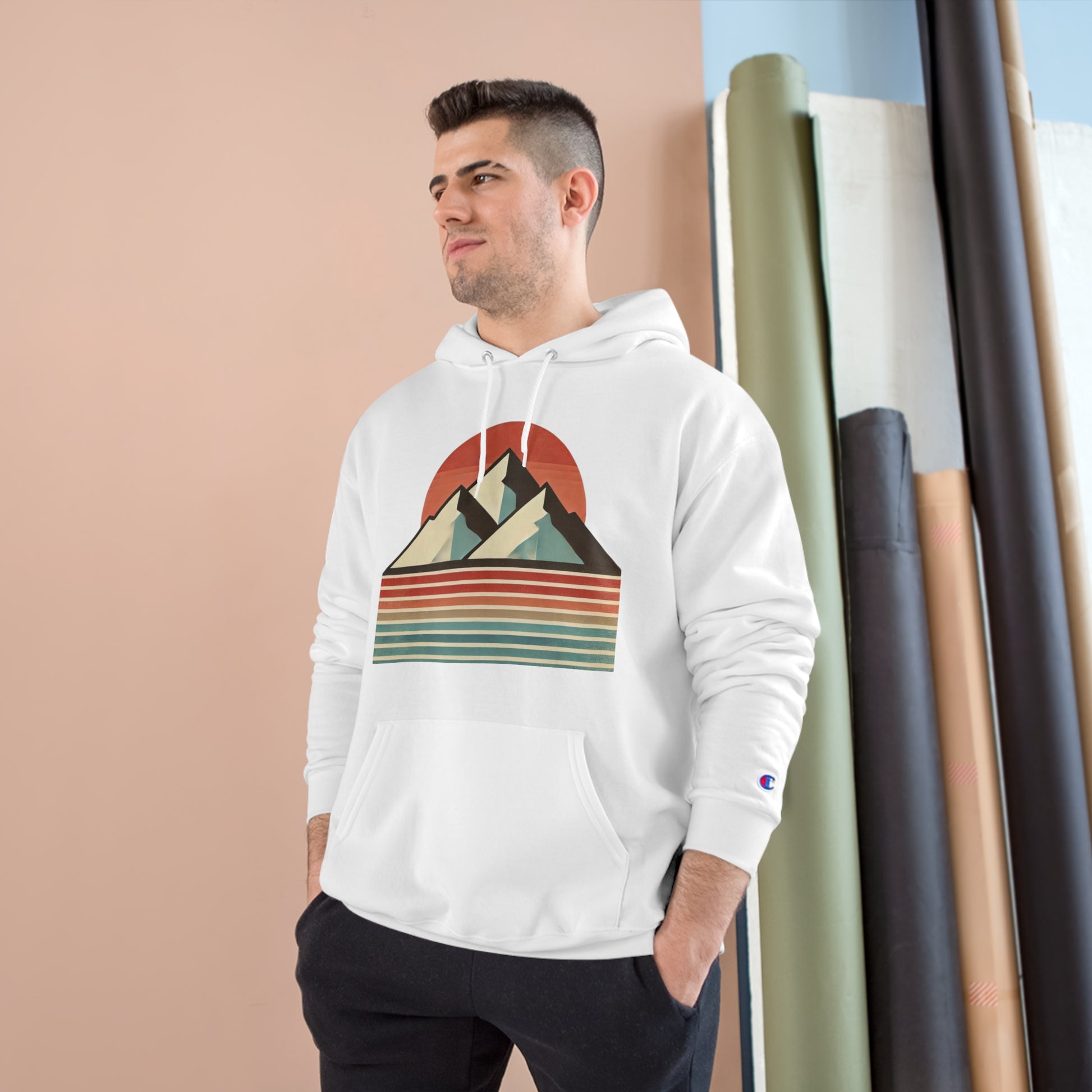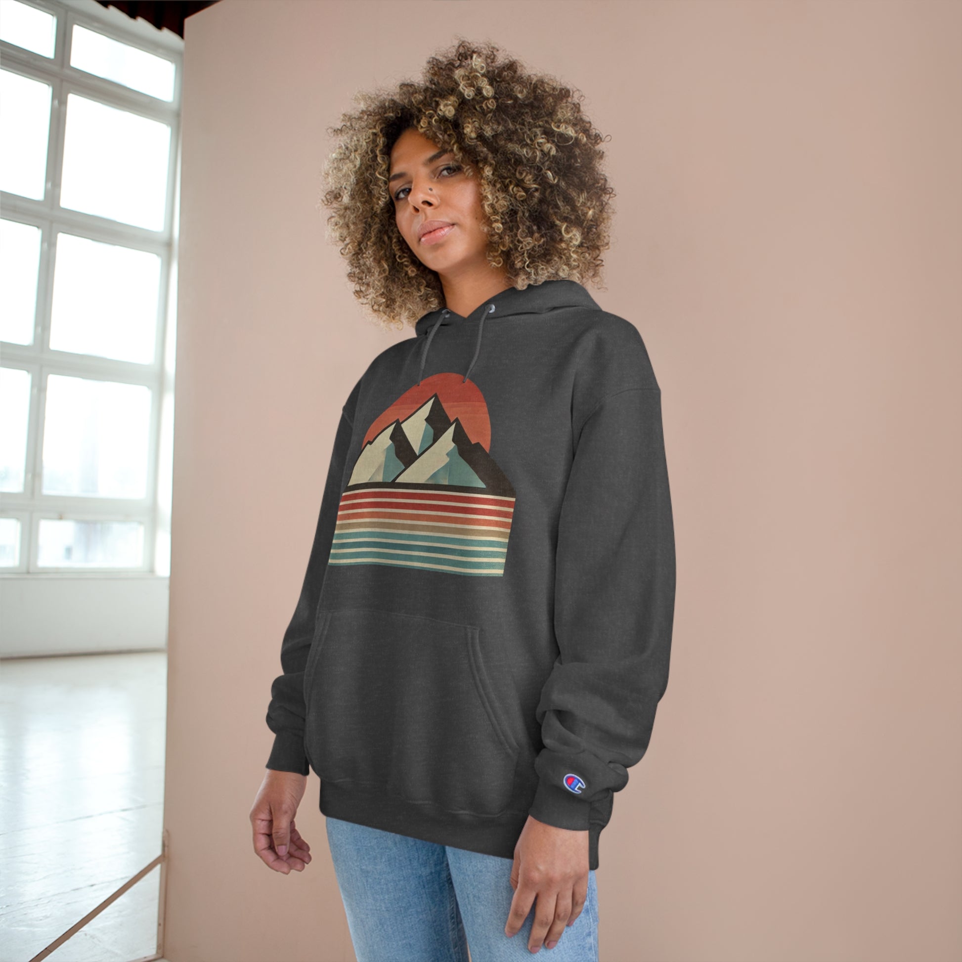 Step into the world of 'wearable art' with our Landscapes: Minimalist Retro hoodie. This piece captures the essence of a minimalist mountain range, designed with bold, clean lines against a vertical gradient backdrop. The muted, grainy texture is a nod to nostalgic simplicity, designed to ignite your imagination and encourage you to 'wear your world.'