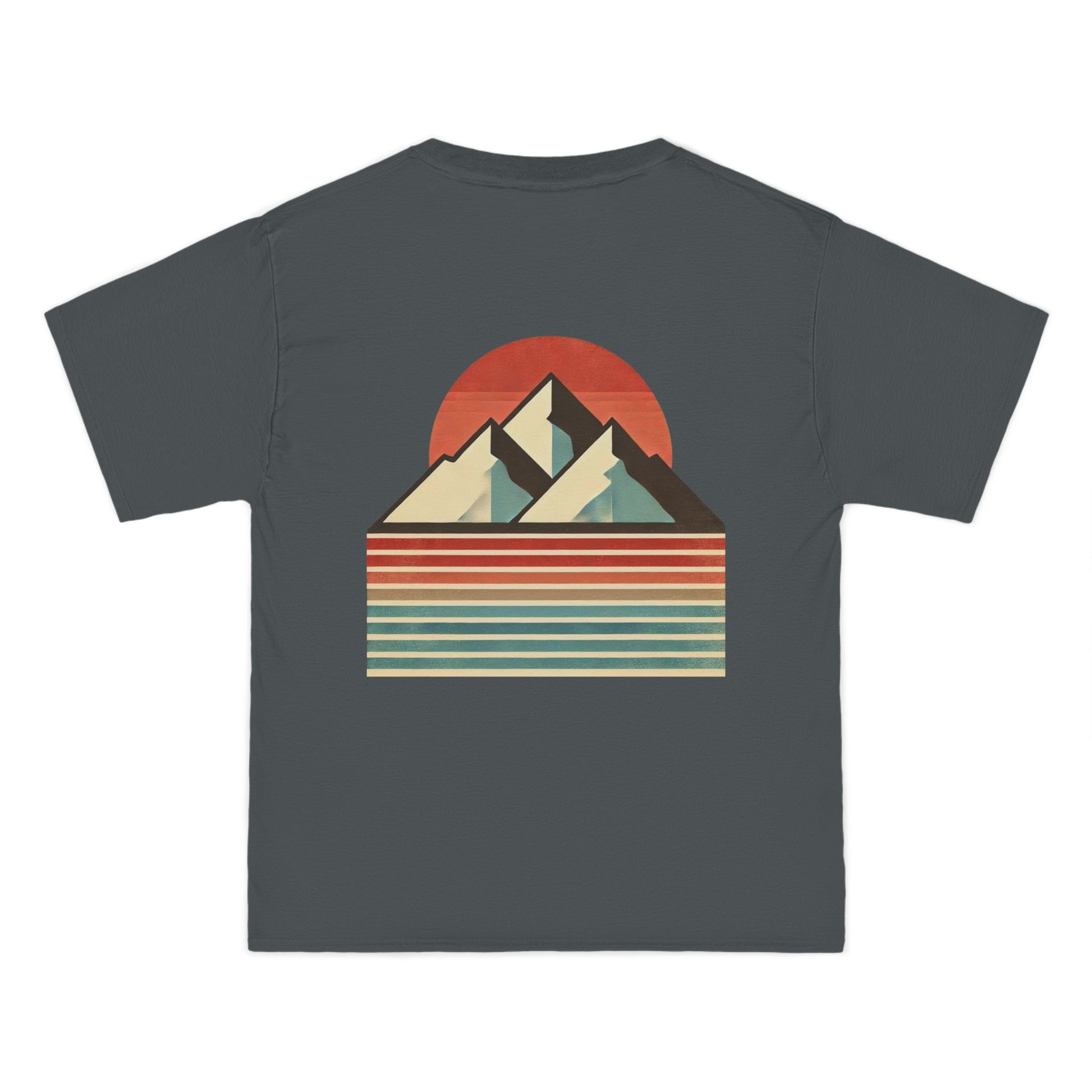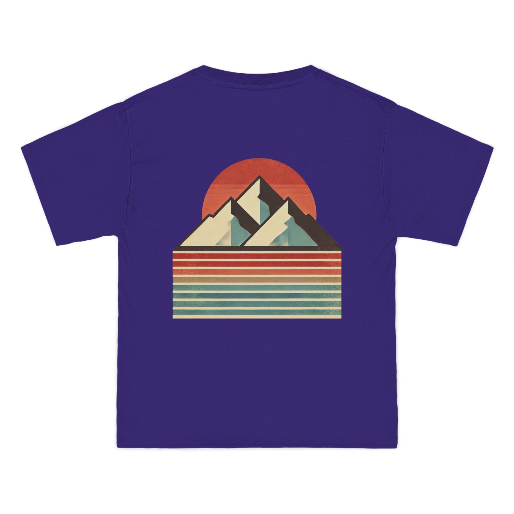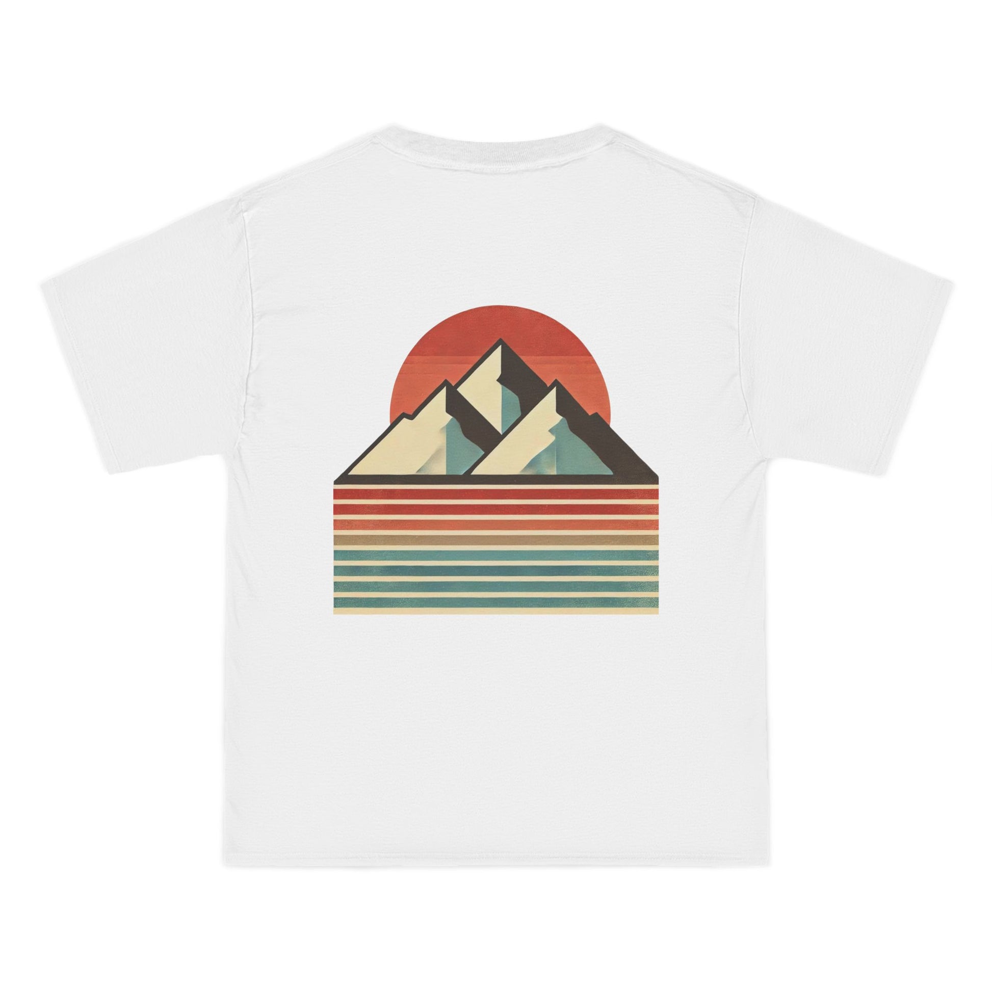 Embrace the beauty of simplicity with our Landscapes: Minimalist Retro t-shirt. This unique piece showcases a minimalist mountain range, defined by bold, clean lines that echo the principles of retro design. The backdrop? A vertical gradient canvas alive with muted colors and a grainy texture, evoking a sense of nostalgia and tranquility.
