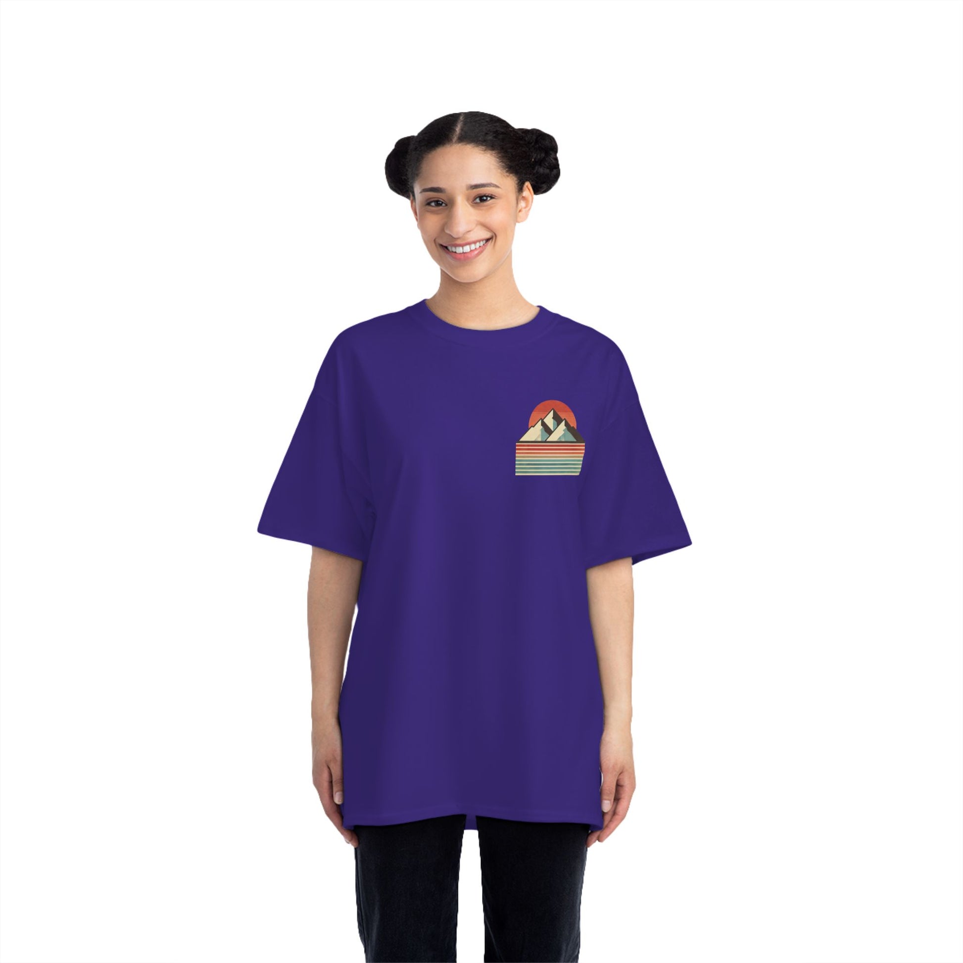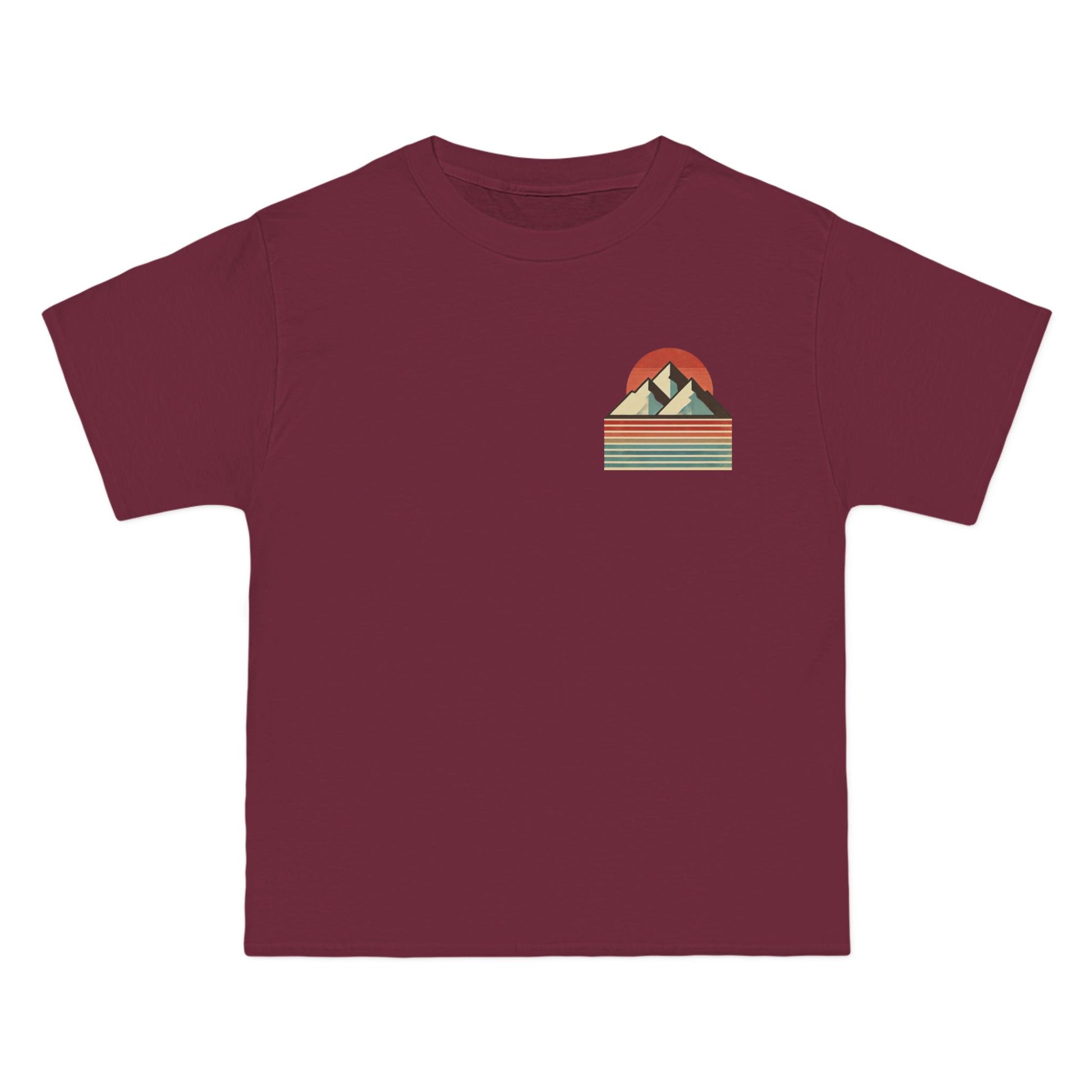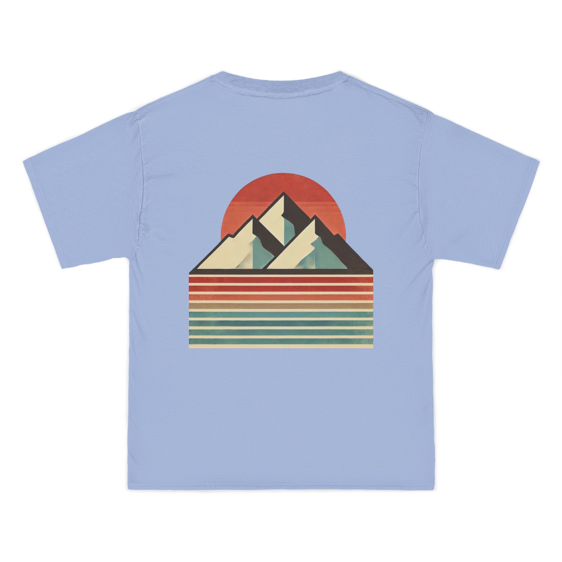 Embrace the beauty of simplicity with our Landscapes: Minimalist Retro t-shirt. This unique piece showcases a minimalist mountain range, defined by bold, clean lines that echo the principles of retro design. The backdrop? A vertical gradient canvas alive with muted colors and a grainy texture, evoking a sense of nostalgia and tranquility.
