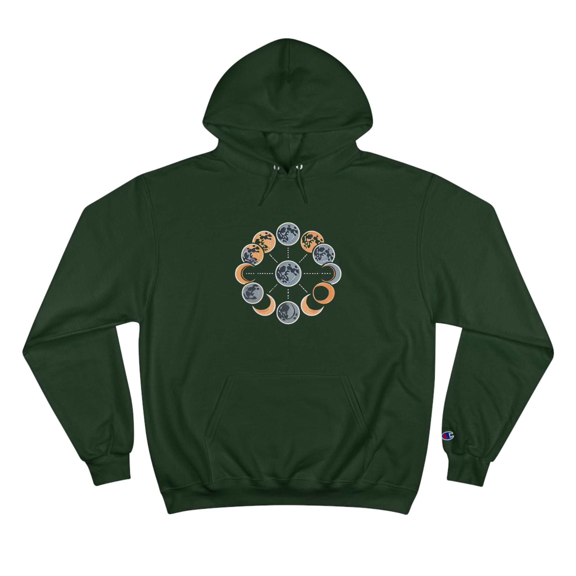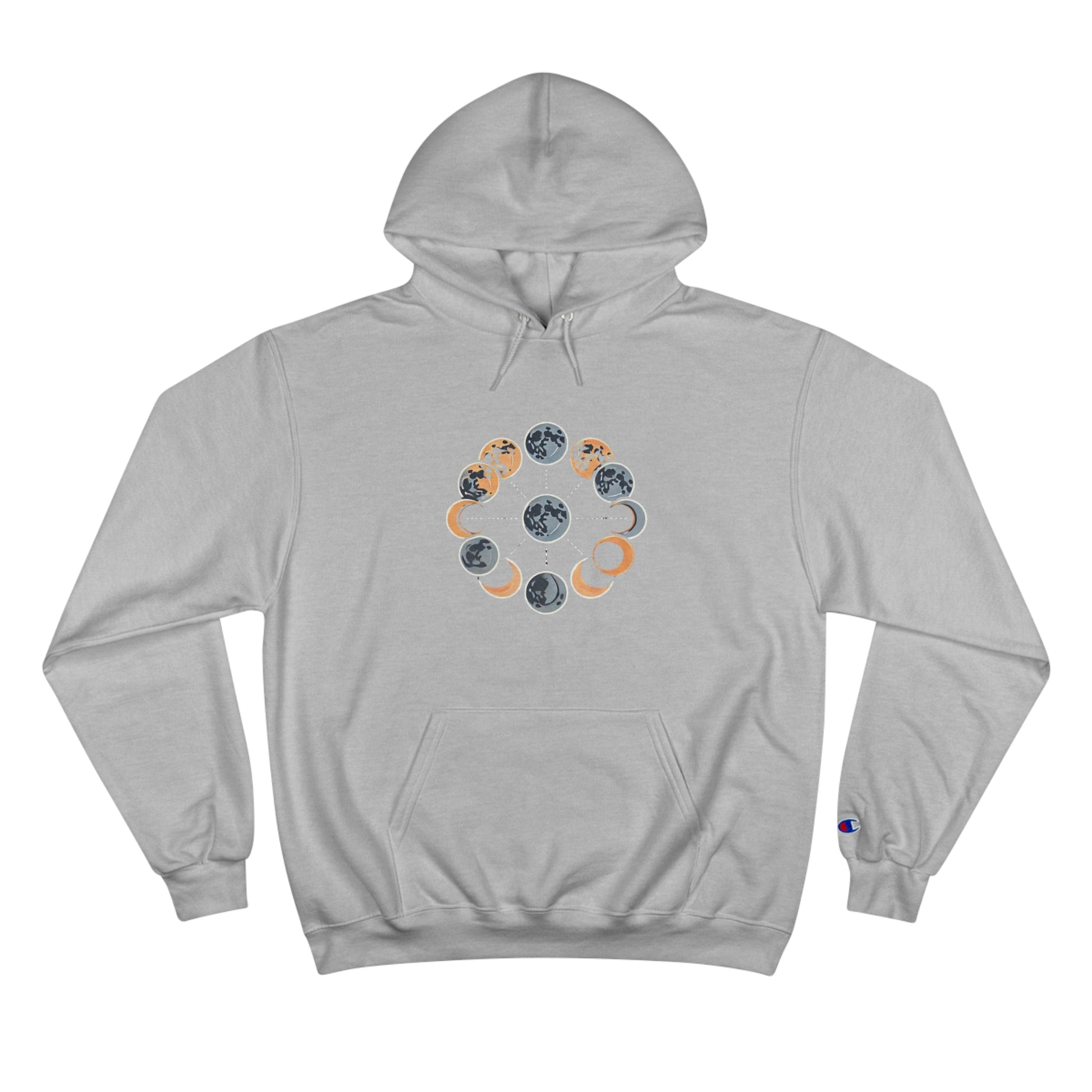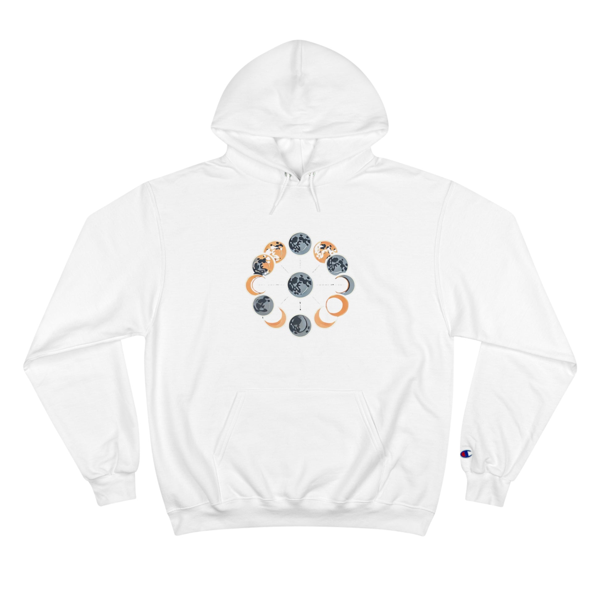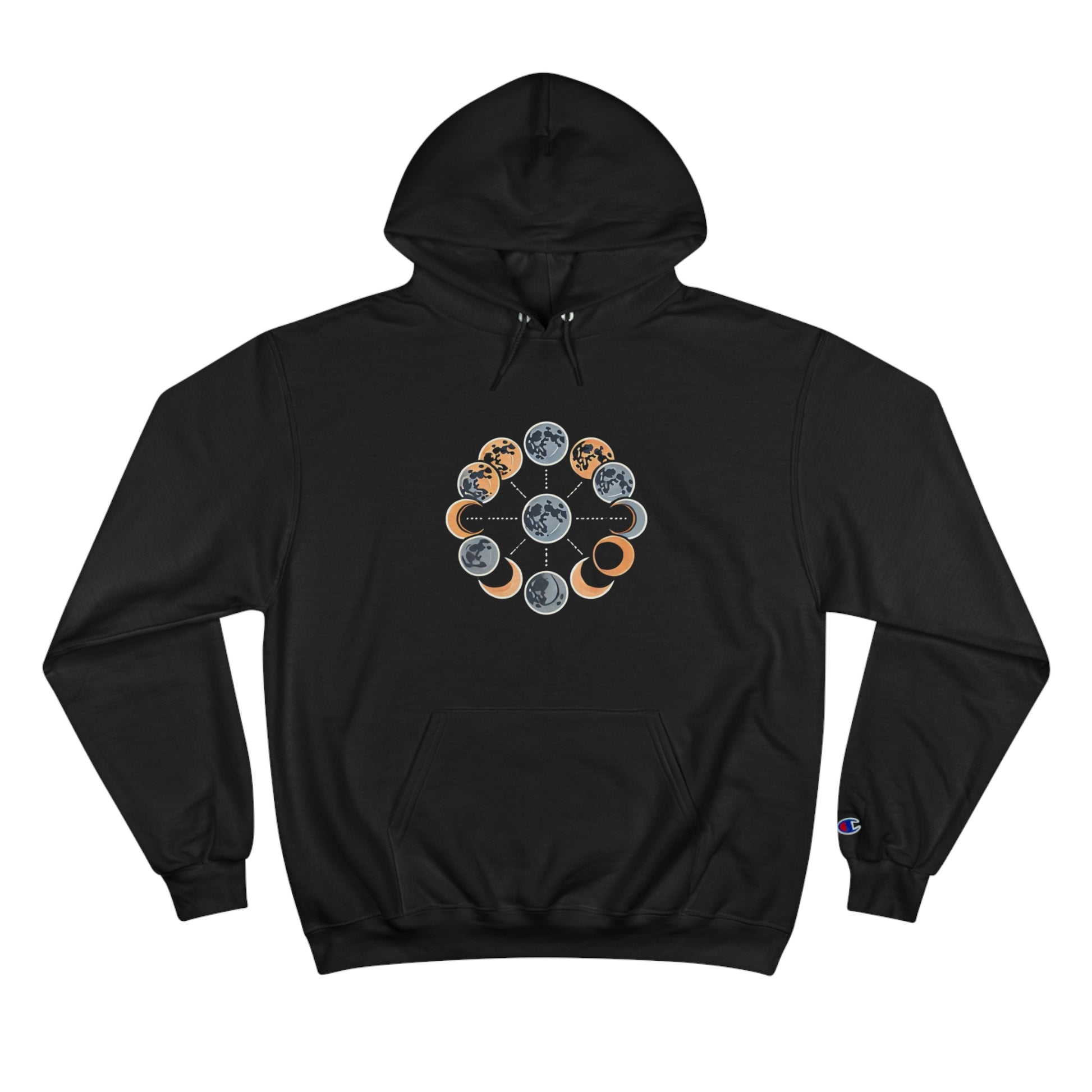 But what makes this hoodie truly special is the design - a stunning series of moons in different phases, arranged symmetrically with bold orange highlights. This design, generated by our innovative AI, encapsulates the beauty of lunar phases in a minimalist, geometric style. It's more than just a hoodie - It's your canvas to express yourself and unleash your creativity.