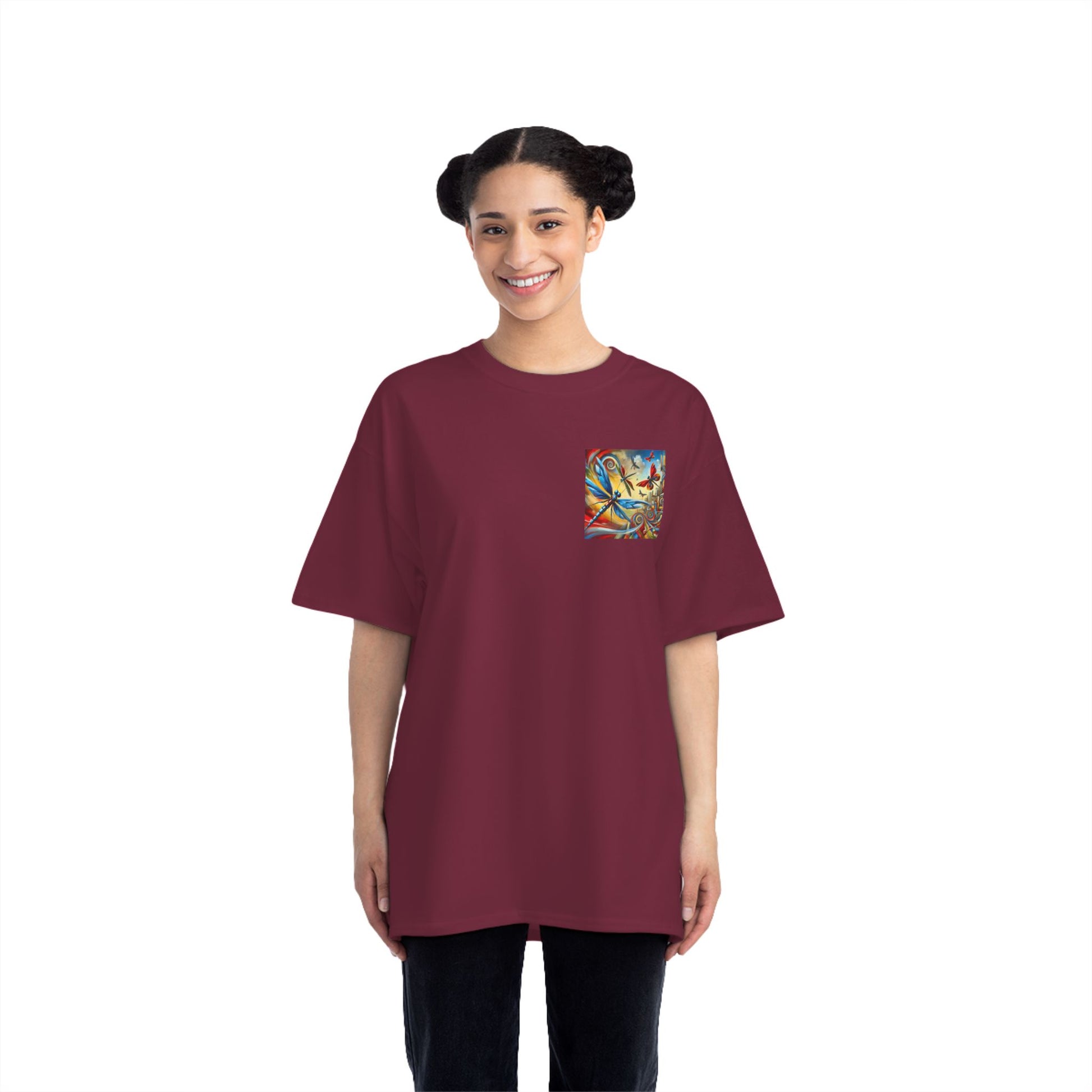 Crafted from 100% cotton solids and comfy blends, this t-shirt is a canvas for your creativity. Its smooth finish and specially spun fibers create a print-friendly surface, perfect for our AI-generated design. Double-needle stitching ensures durability, while stabilized shoulder seams and a lay-flat collar keep your wearable art looking fresh wash after wash.
