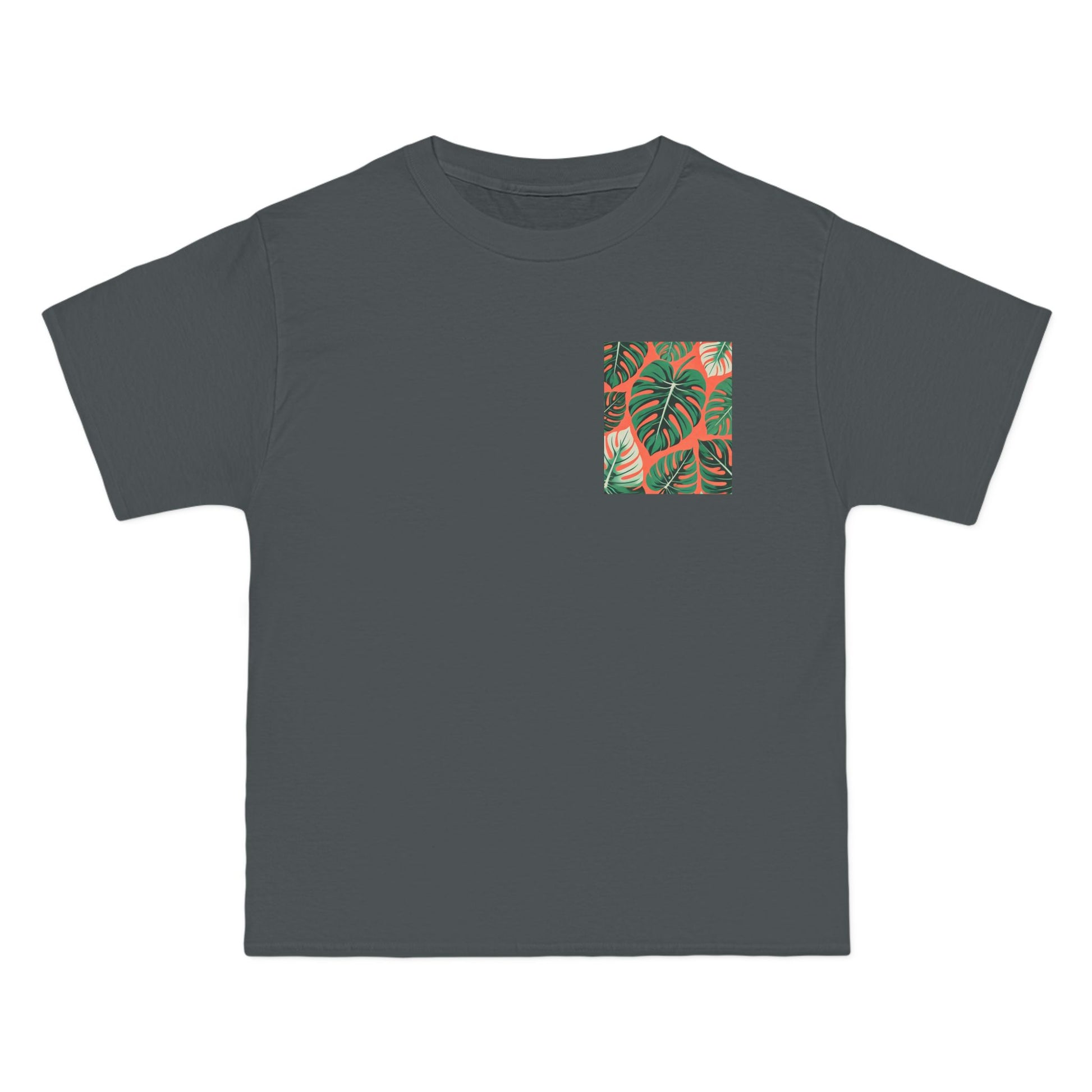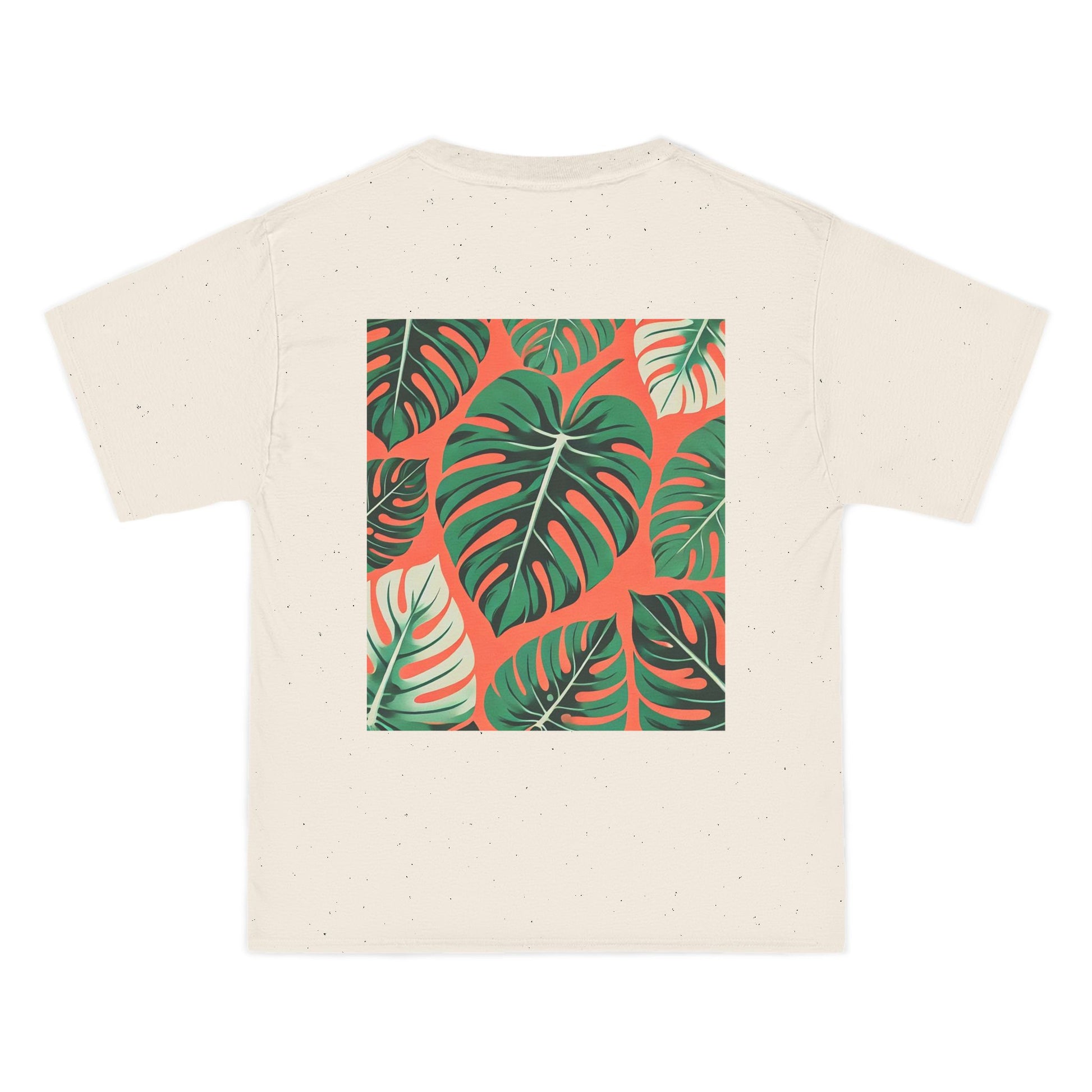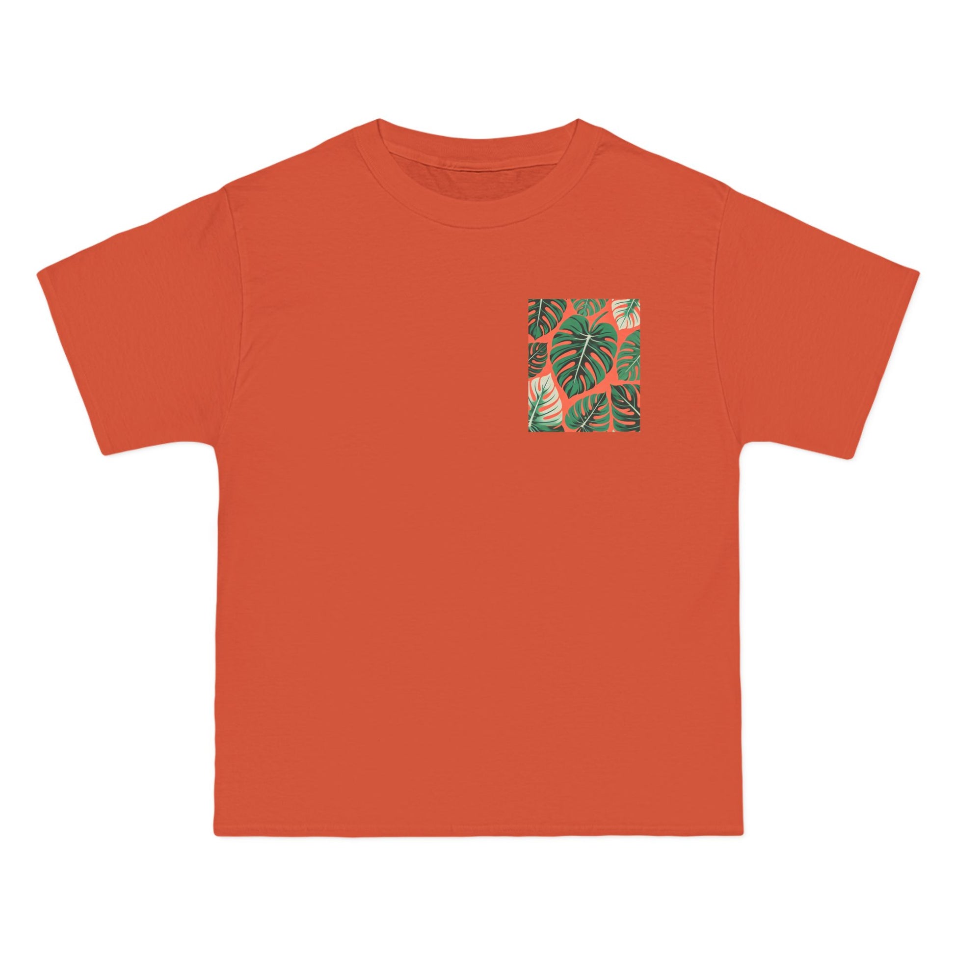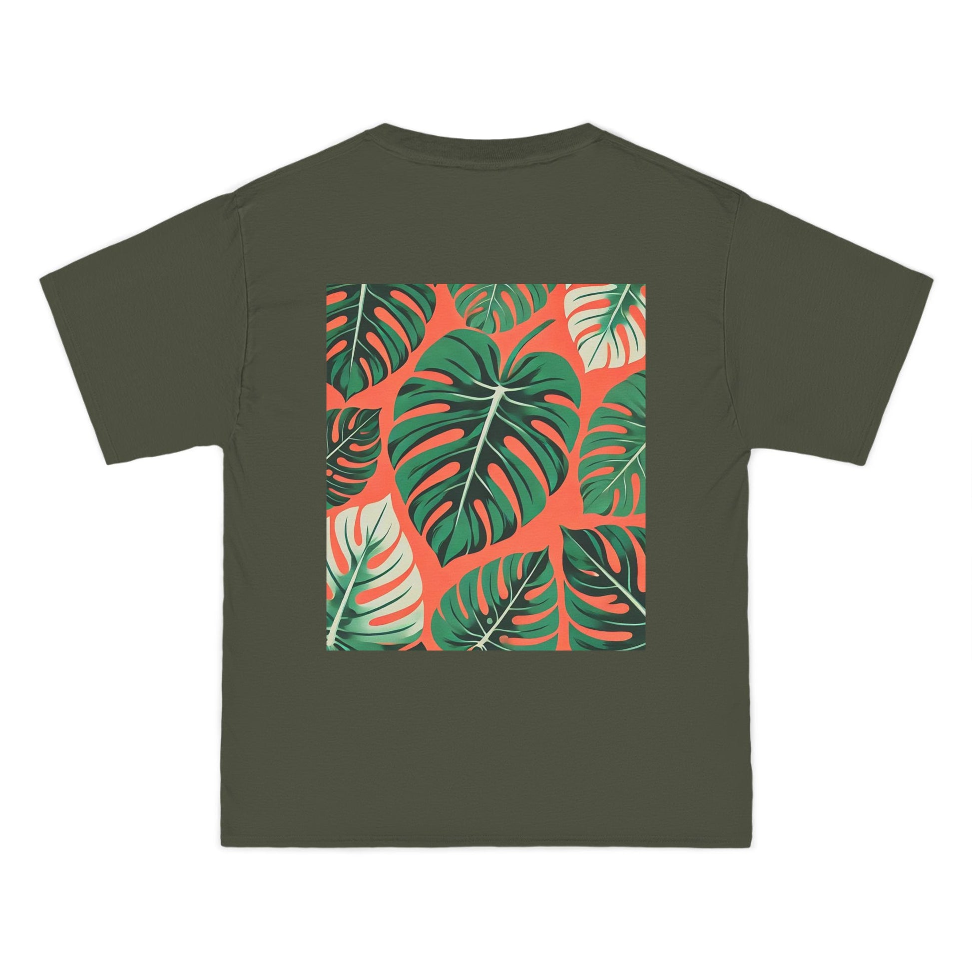 Welcome to the lush world of our Monstera Pattern: Tropical Vibe. It's your passport to paradise, wherever you are. Our designers have used advanced AI technology to craft a tropical wonderland right onto your clothing, with large monstera leaves dancing across a vibrant coral backdrop. It's not just a shirt, it's wearable art.