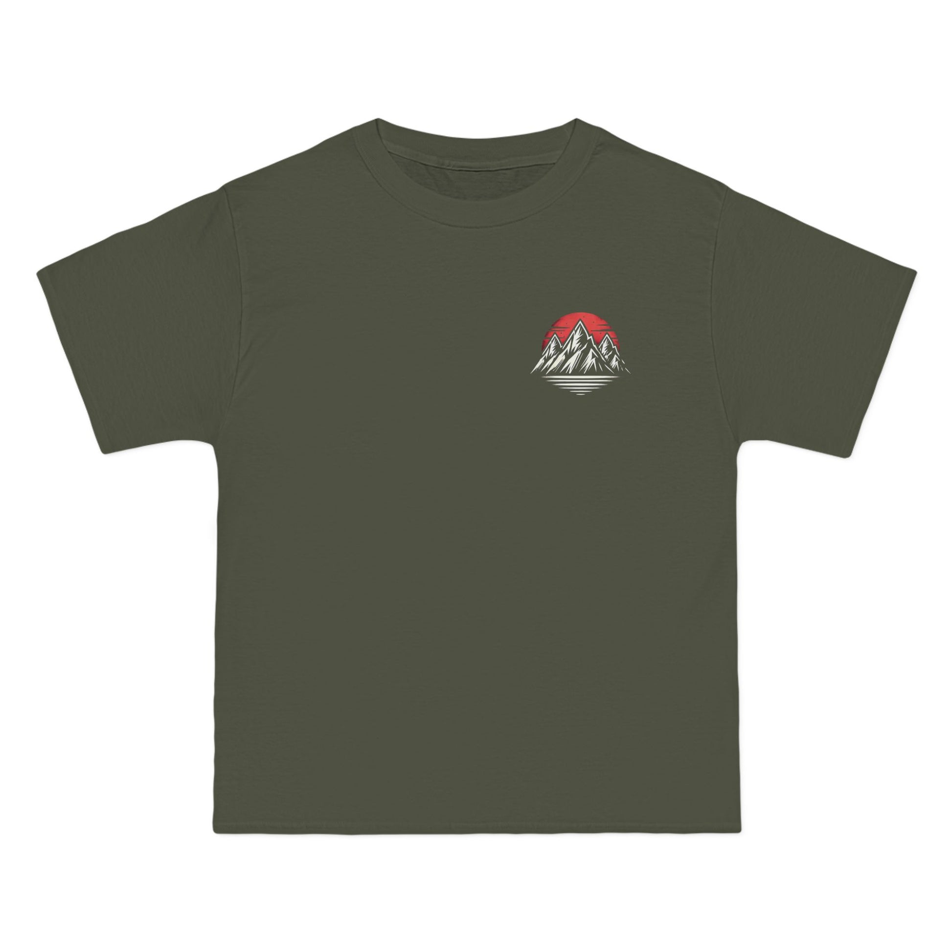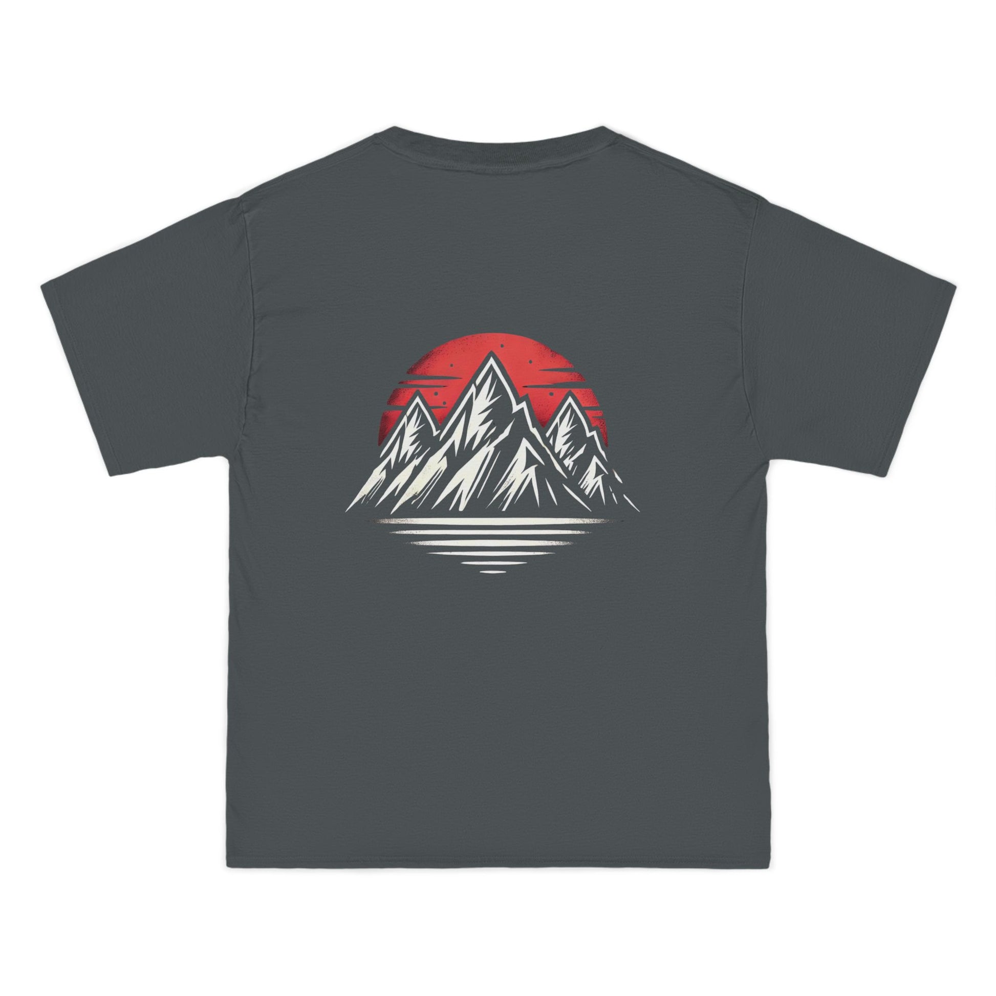 The design itself is awe-inspiring. The dramatic black and white mountain range against the blood-red moon creates a high-contrast scene, an echo of nature's grandeur in a gothic streetwear style. This isn't just a design; it's a story, your story.