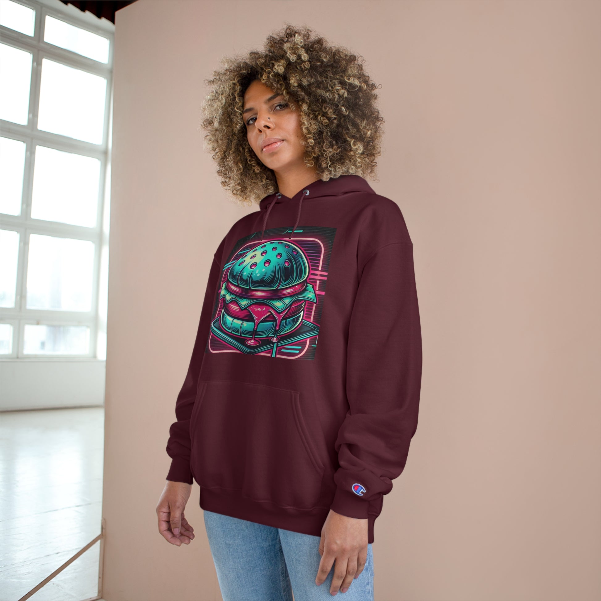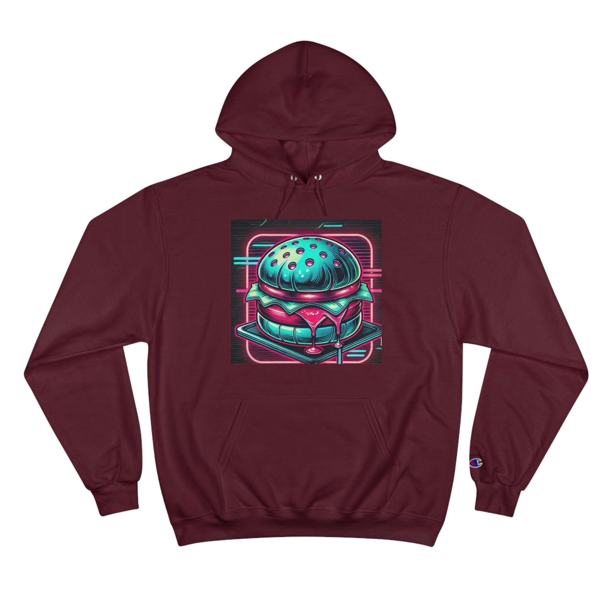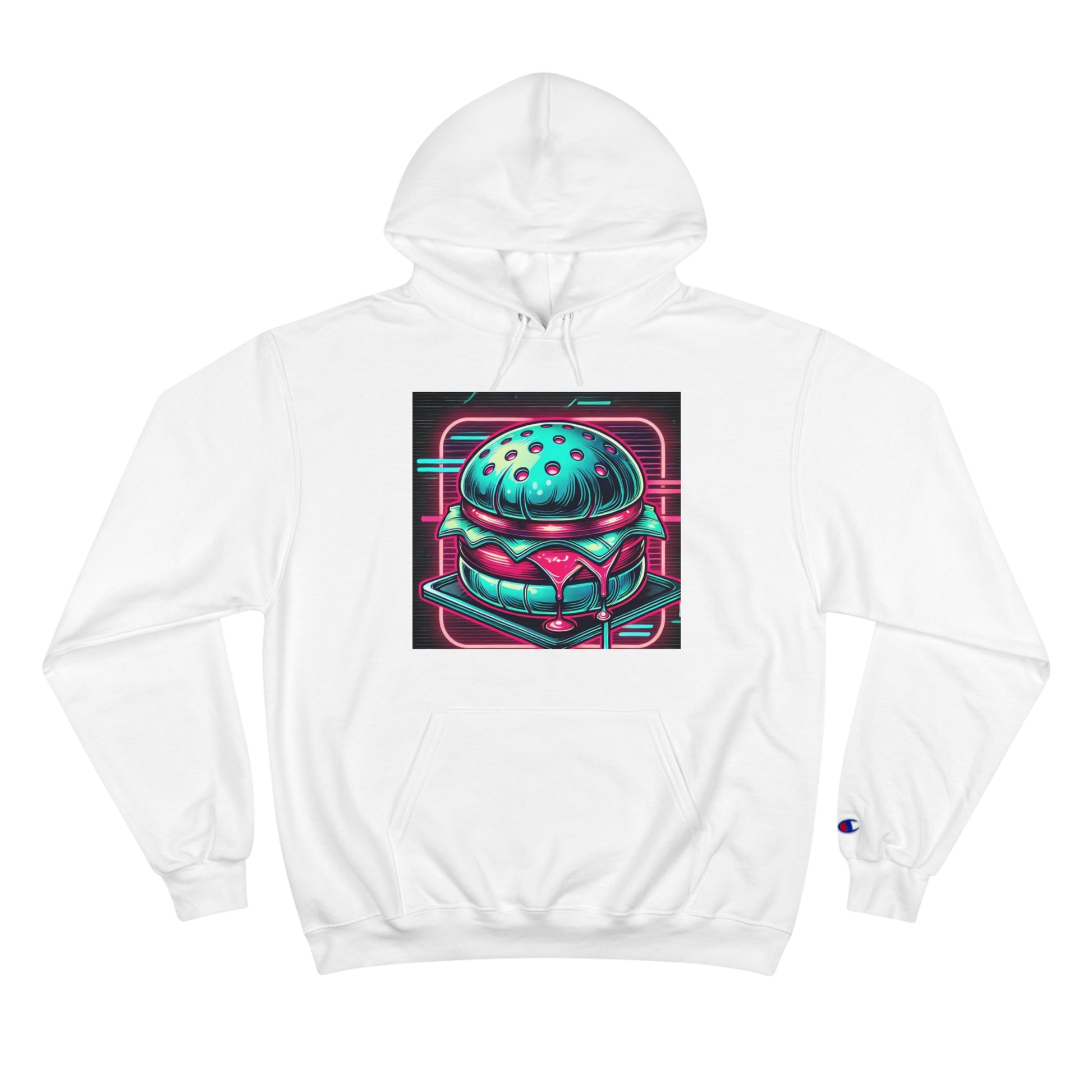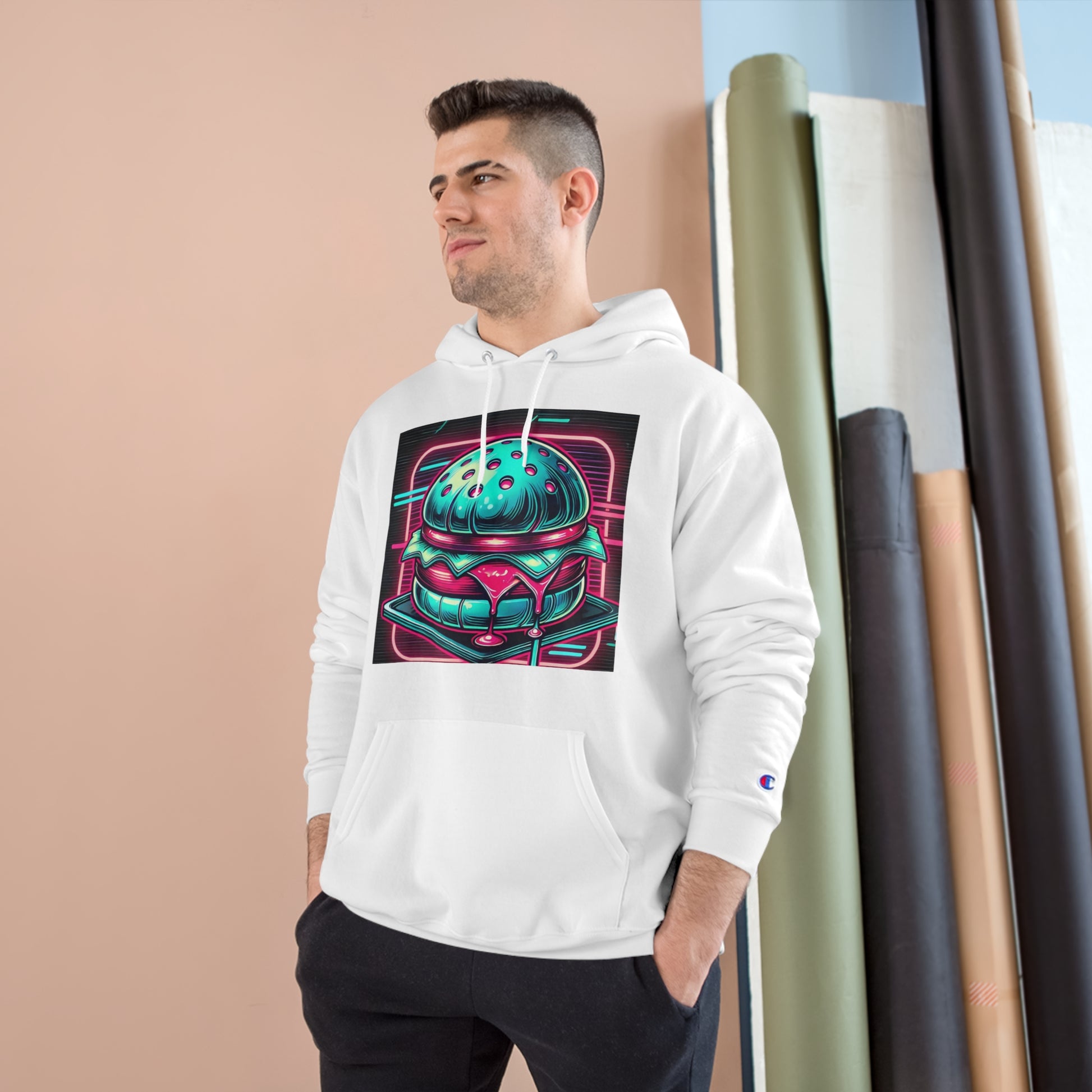 Featuring a futuristically delicious design of a burger with metallic buns and glowing neon layers, this hoodie is sure to turn heads. The imaginative design, set against a dark, cyberpunk background, is the perfect canvas to express yourself and Wear Your World.