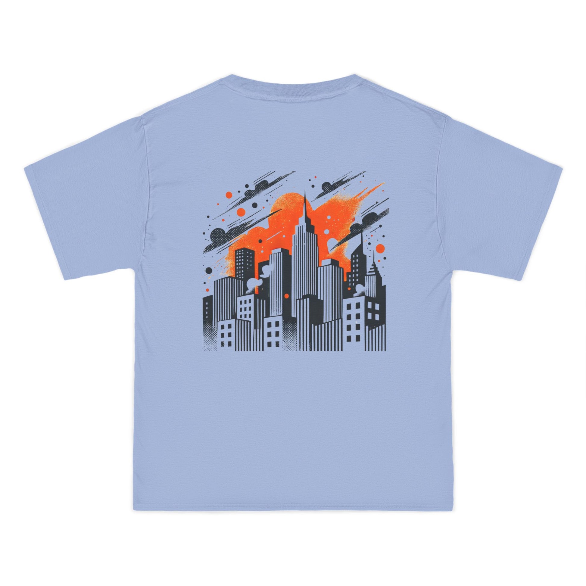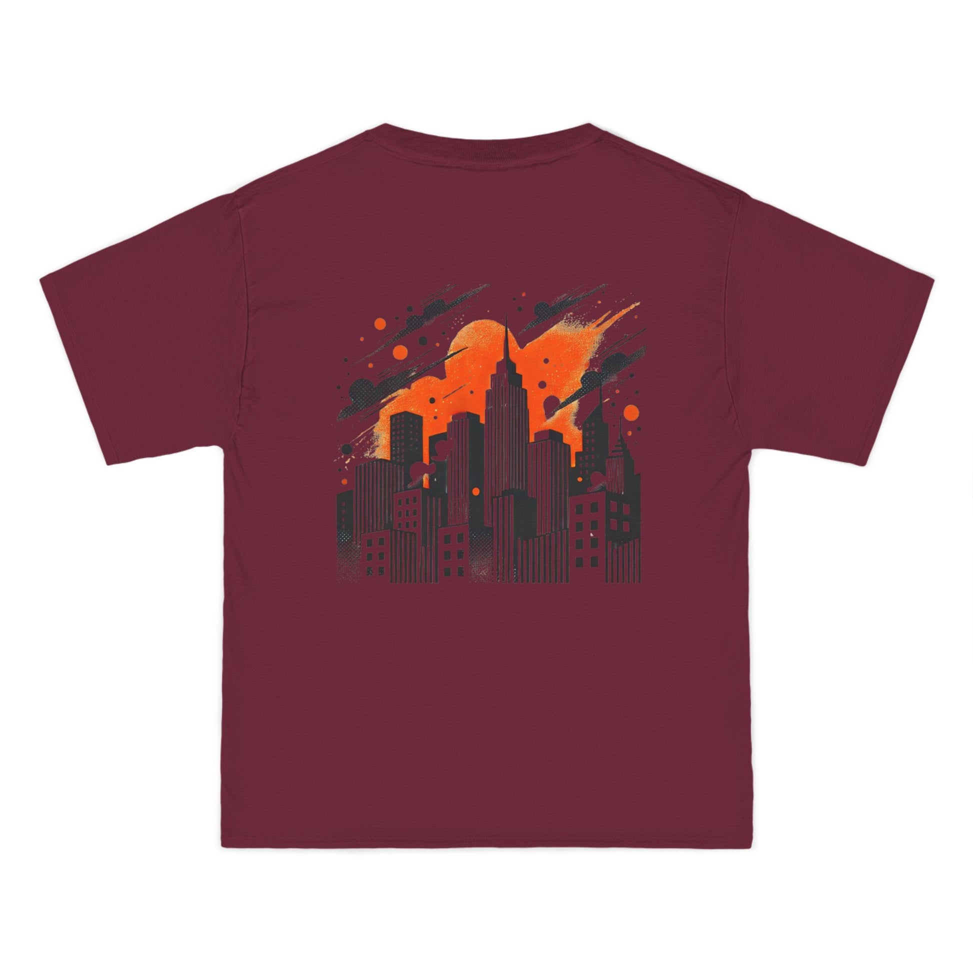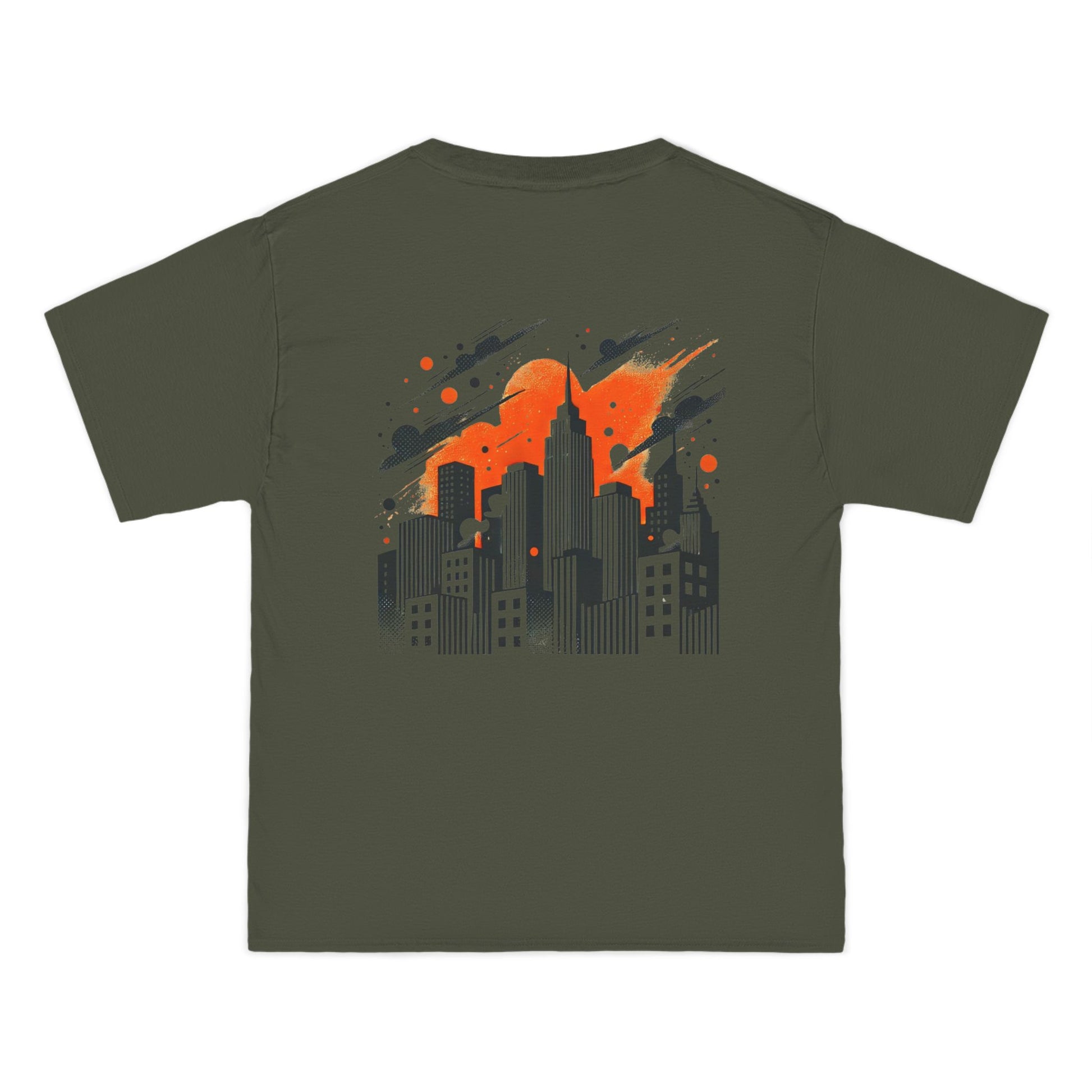 Unleash the artist in you with Whatever Clothing's Neon Skyline: Pop Art Minimalistic tee! This isn't just a shirt, it's a canvas for your world. The design features a bold, black geometric city skyline, contrasting against a dynamic orange splatter that lights up the sky – a testament to your vitality and zest for life.