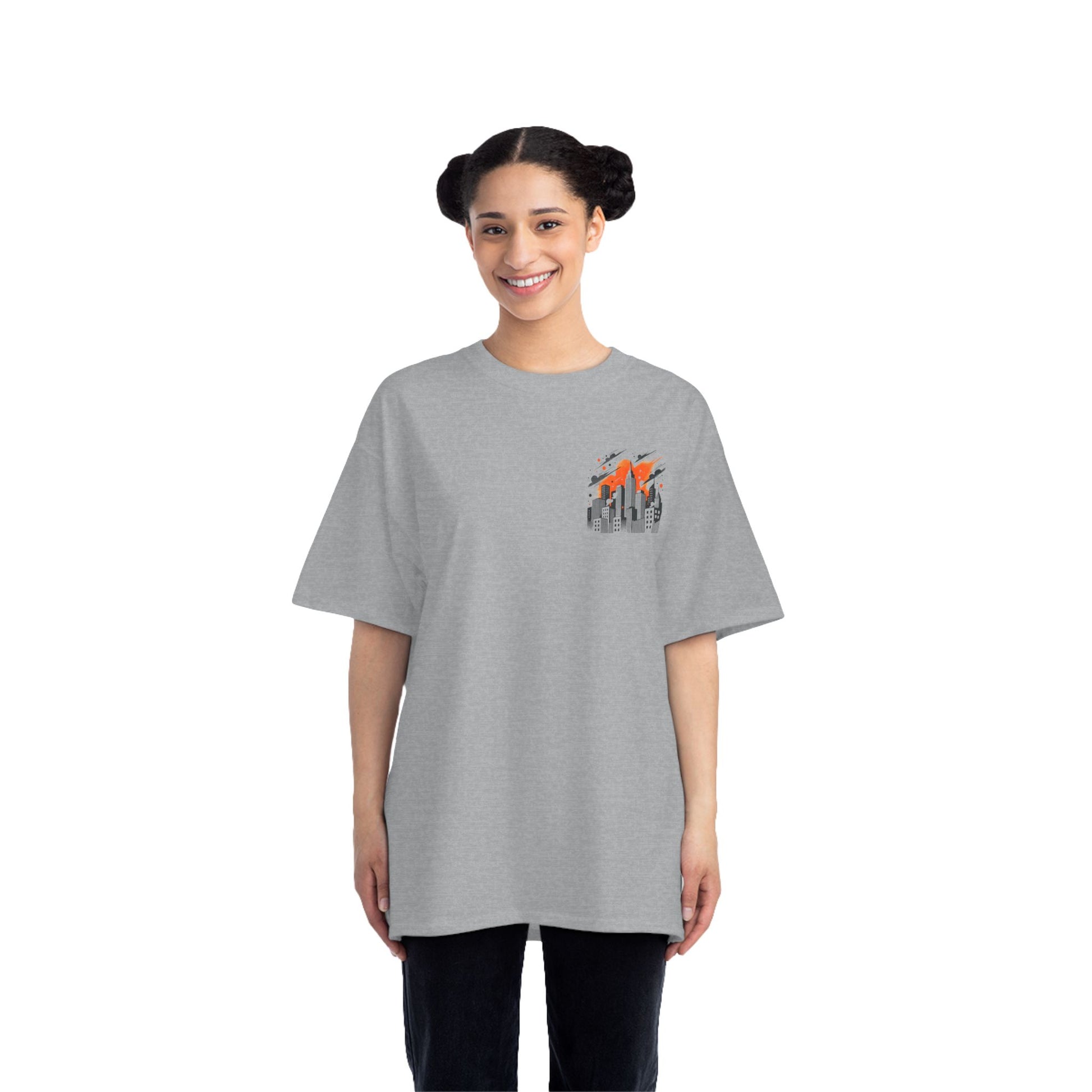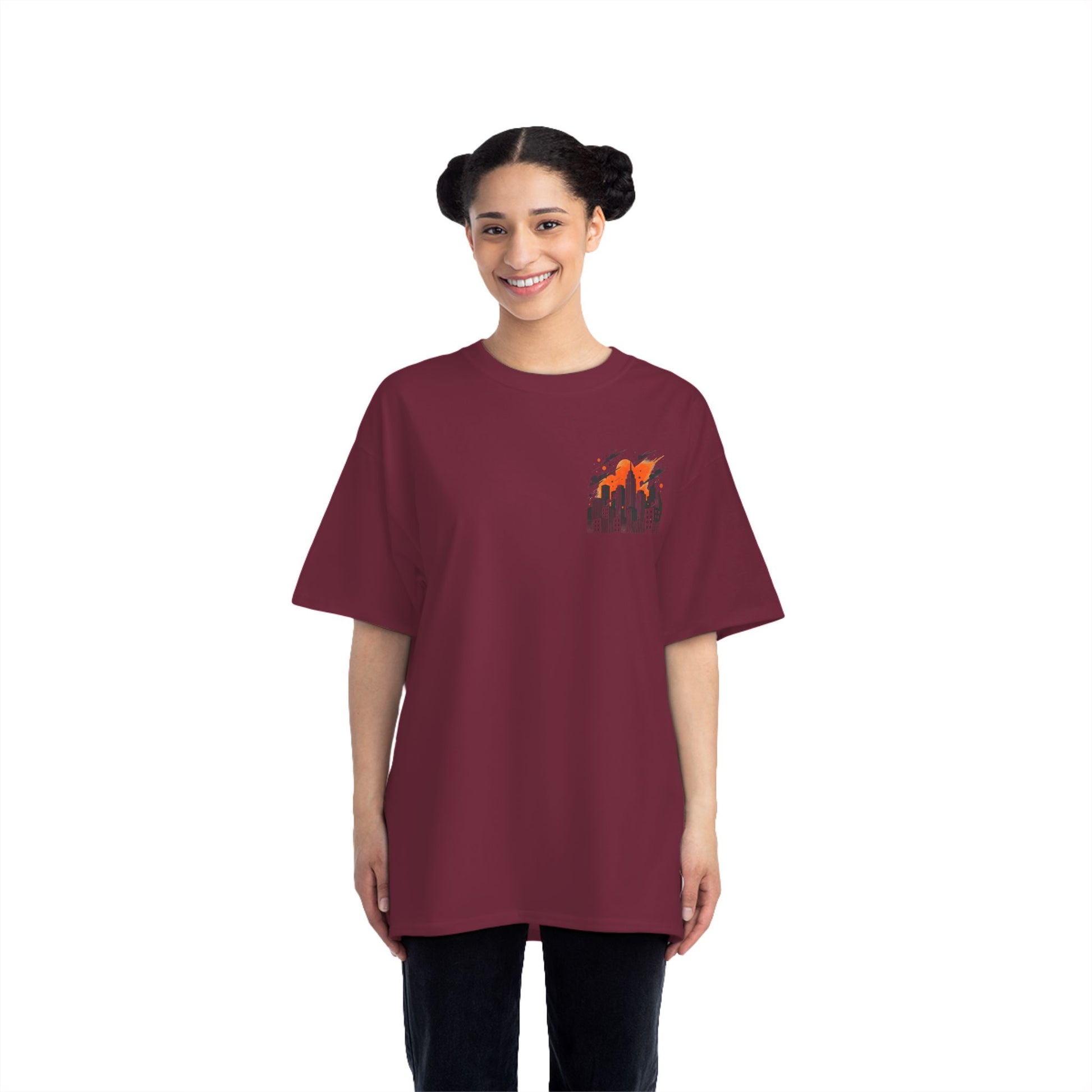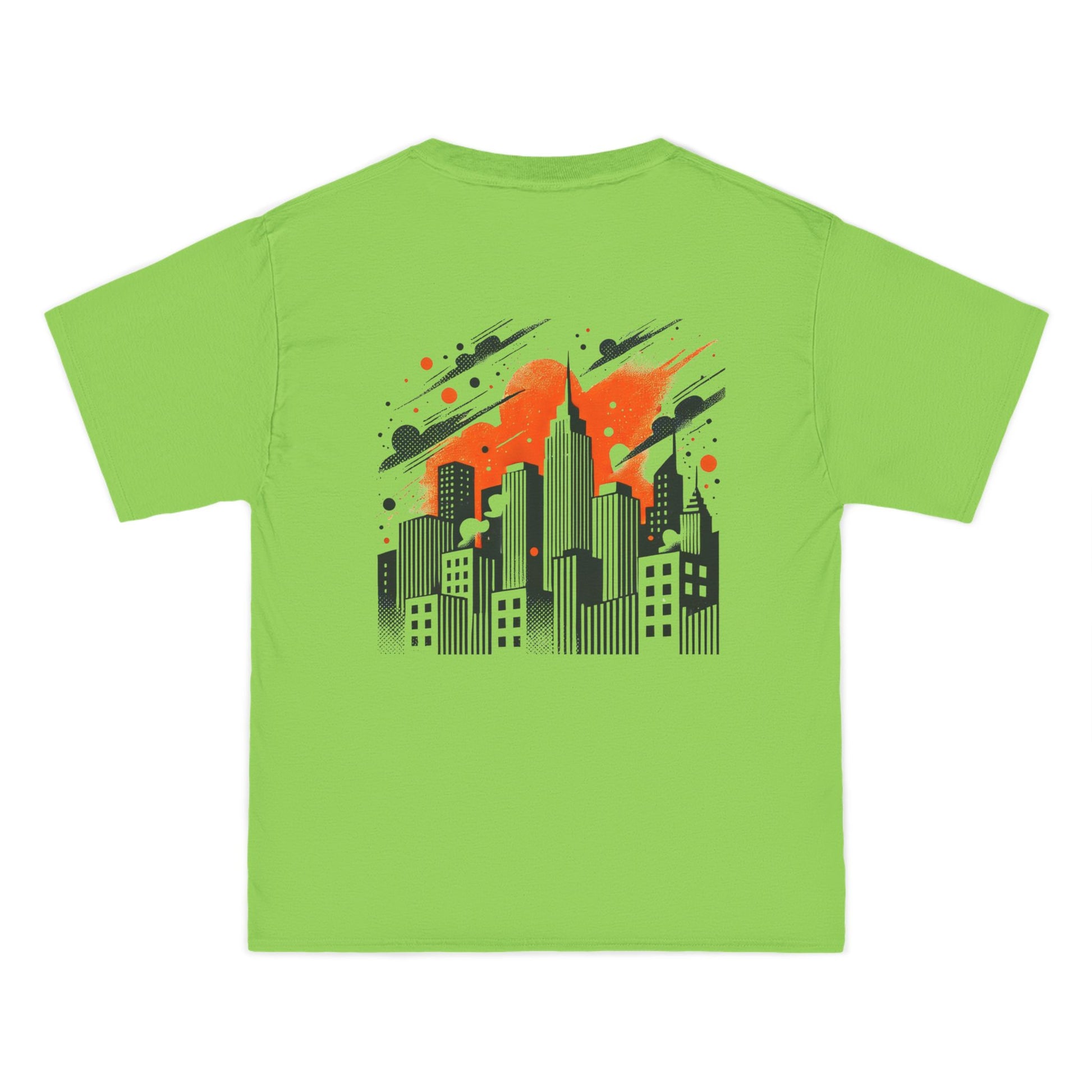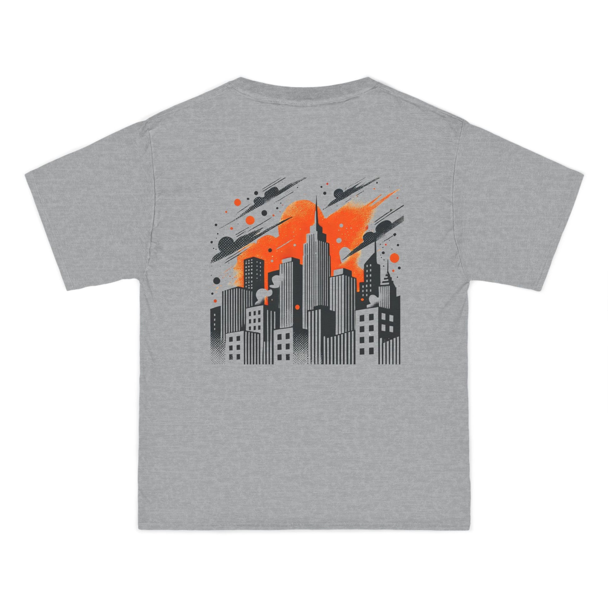 Unleash the artist in you with Whatever Clothing's Neon Skyline: Pop Art Minimalistic tee! This isn't just a shirt, it's a canvas for your world. The design features a bold, black geometric city skyline, contrasting against a dynamic orange splatter that lights up the sky – a testament to your vitality and zest for life.