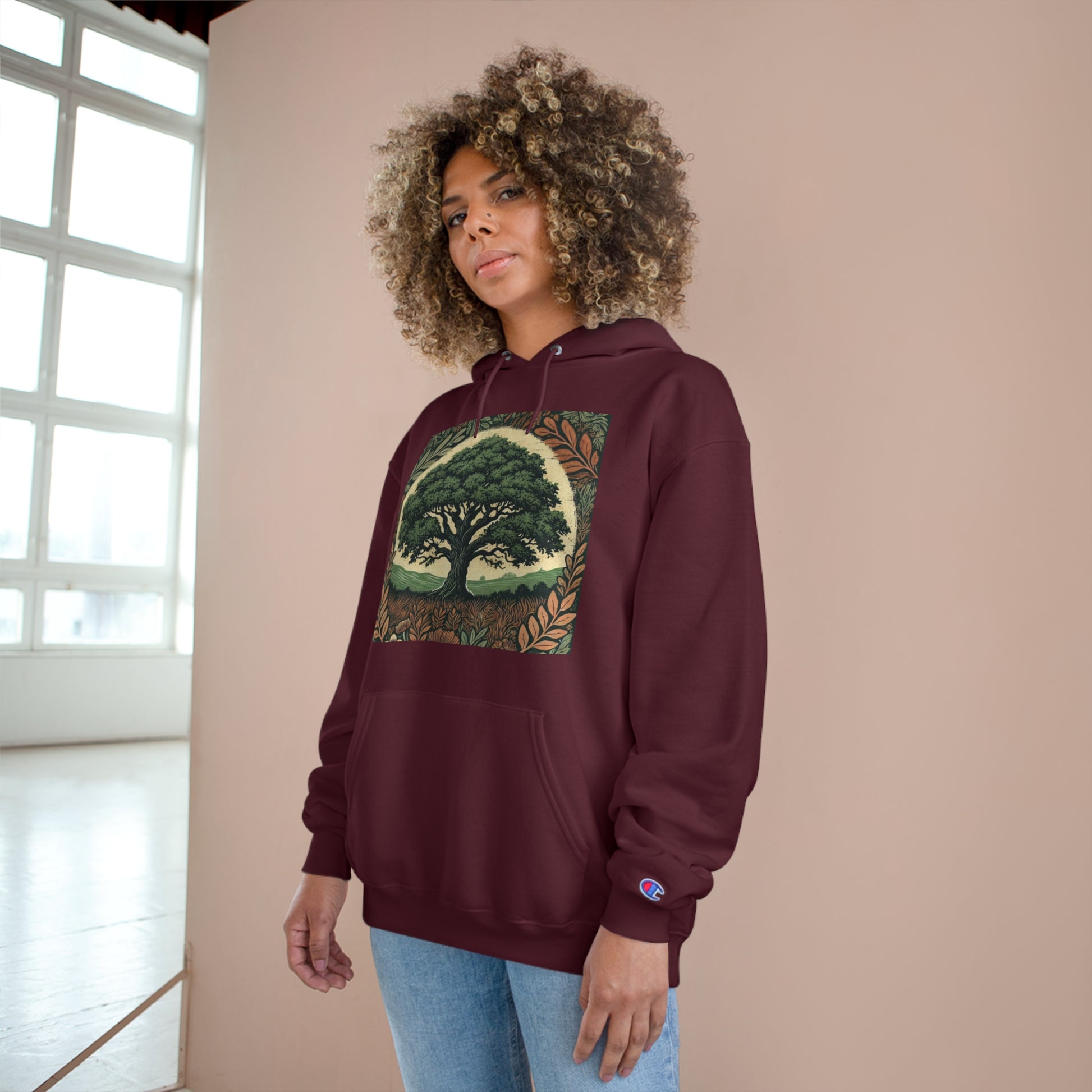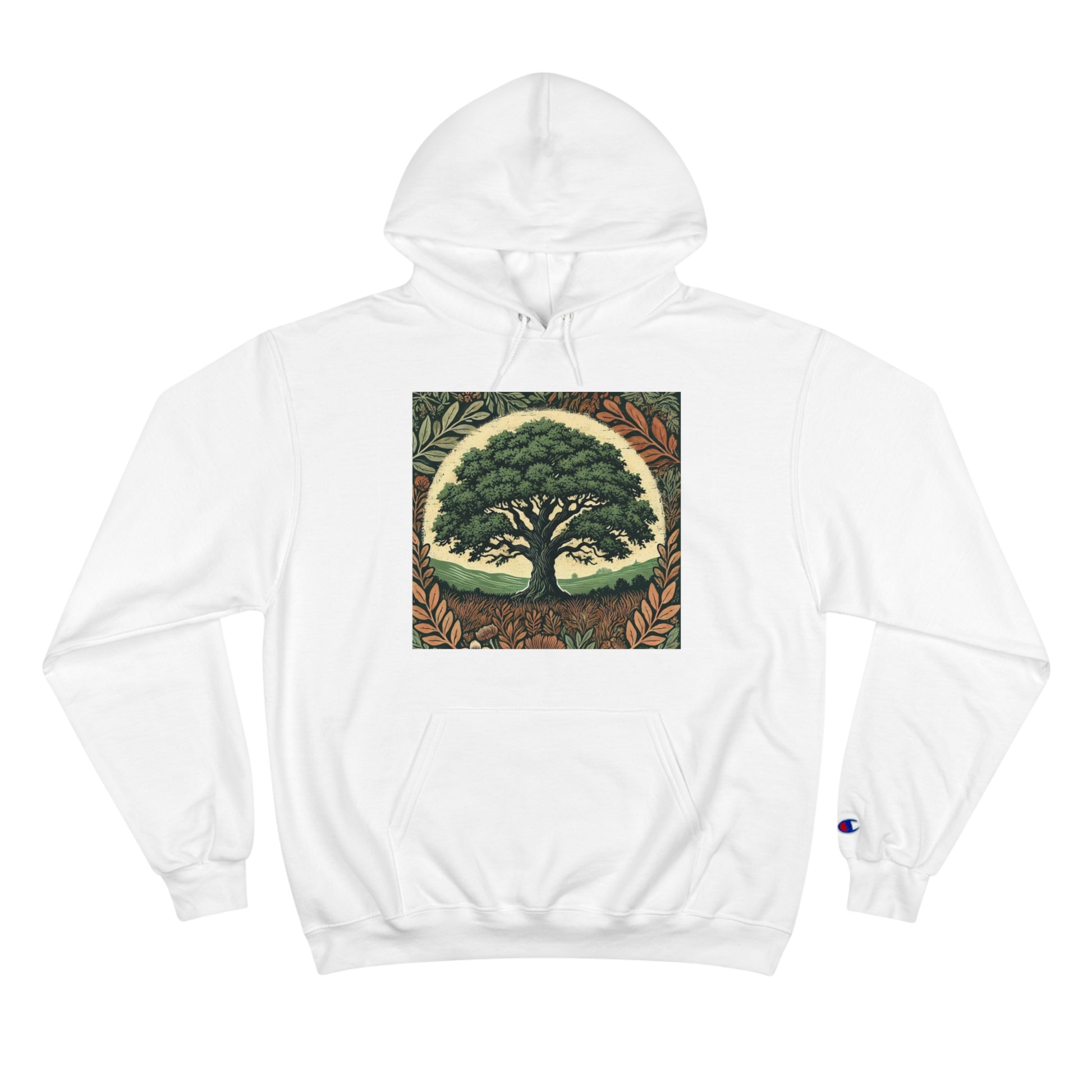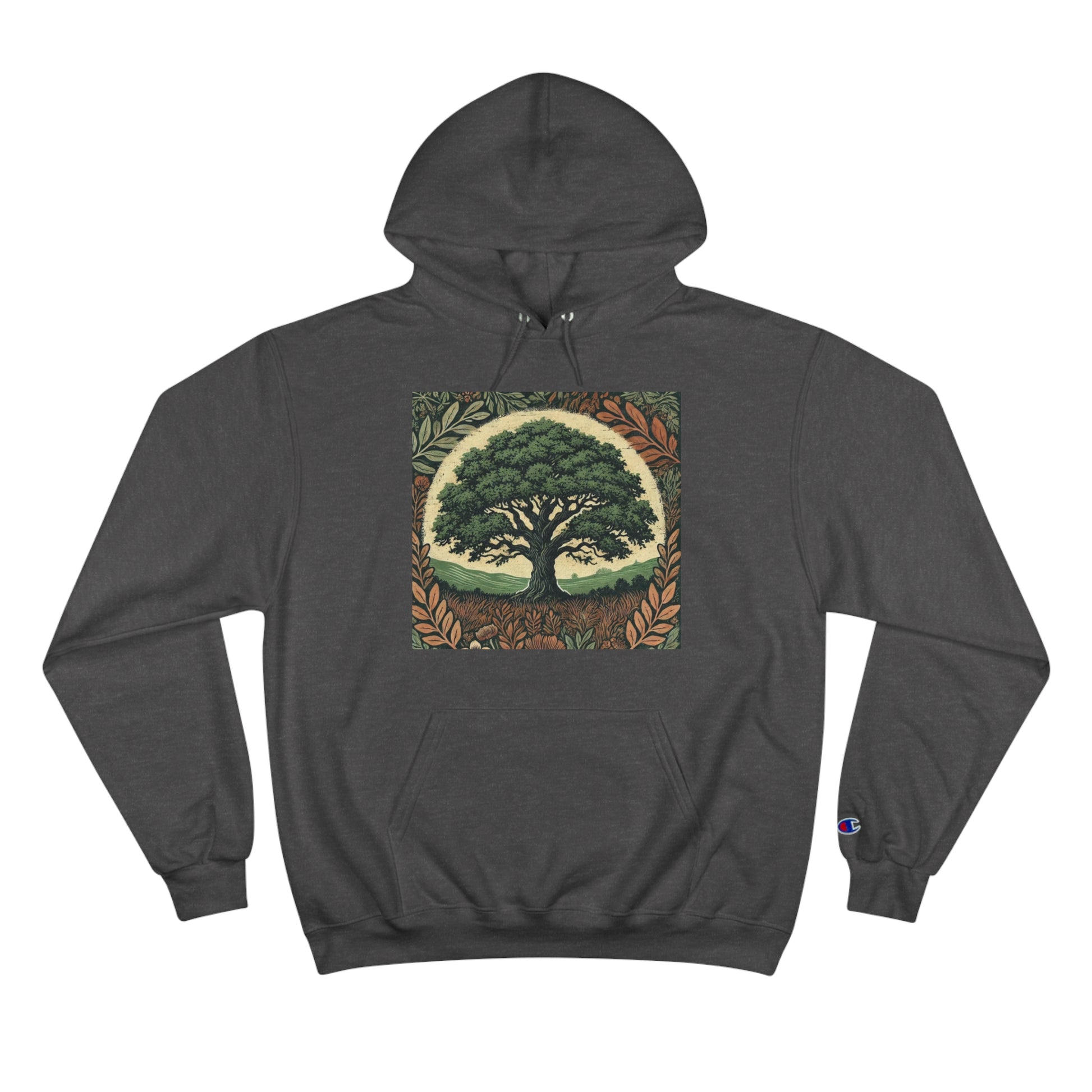 Introducing the Oak Tree: Floral Sepia, a wearable masterpiece that truly lets you 'Wear Your World'! This stunning hoodie, crafted with a perfect blend of 50% cotton and 50% polyester, features a captivating design of a stylized oak tree in deep, soothing greens, subtly highlighted with charming orange flowers. It's not just a hoodie, but a canvas for your creativity and love for nature.