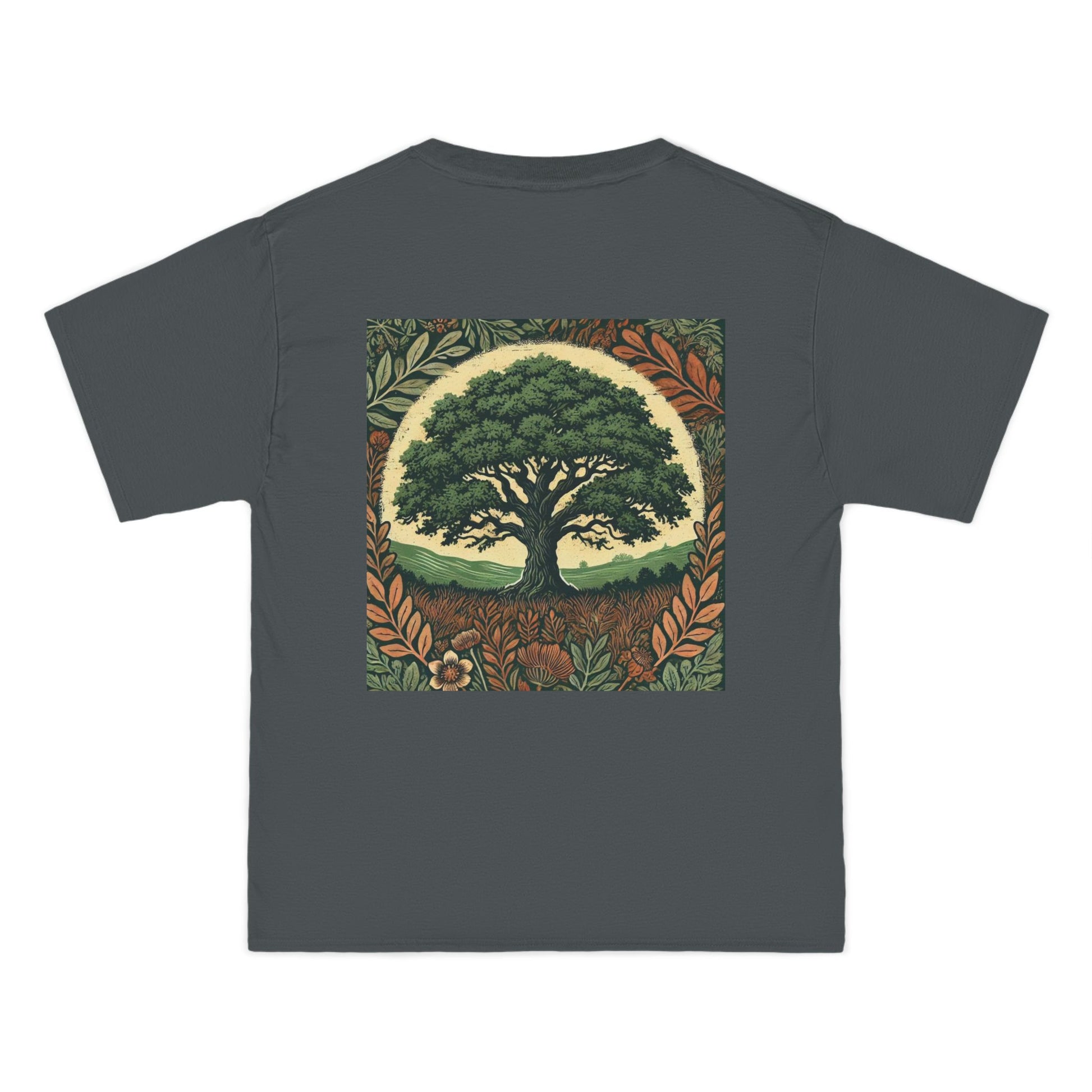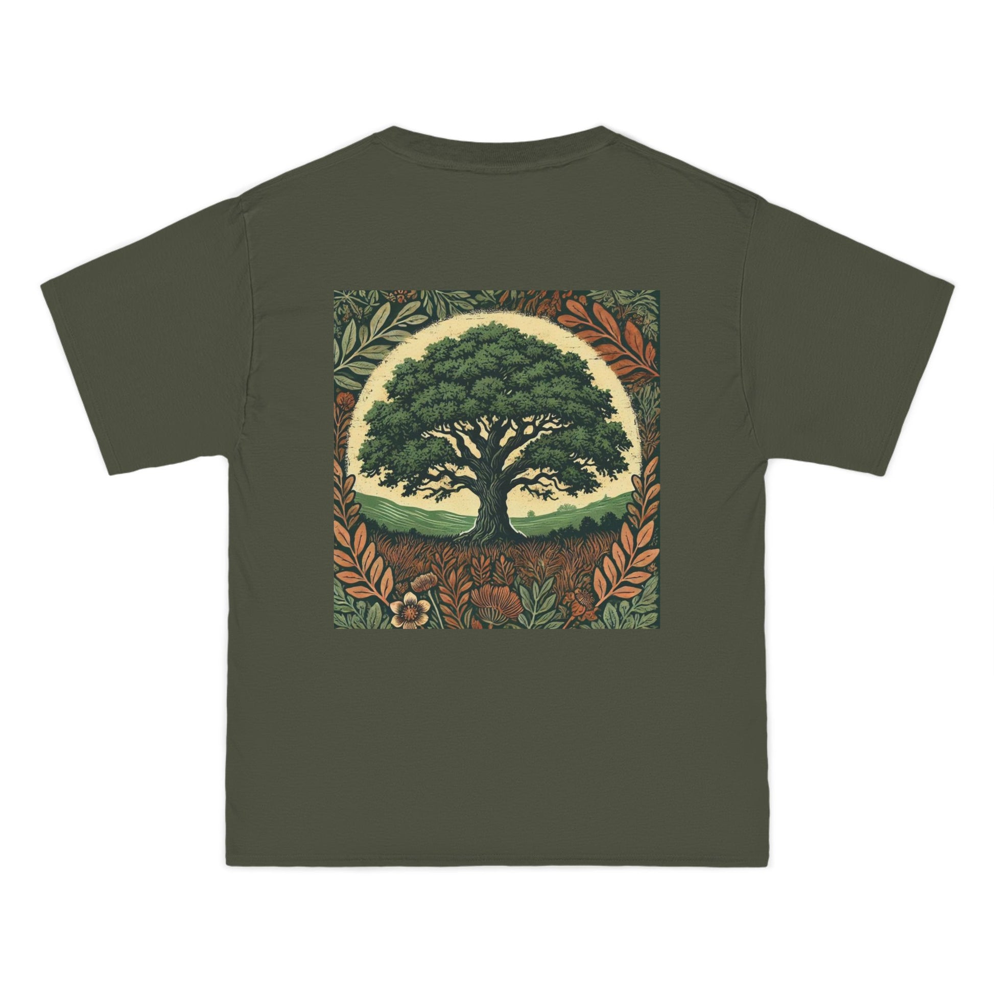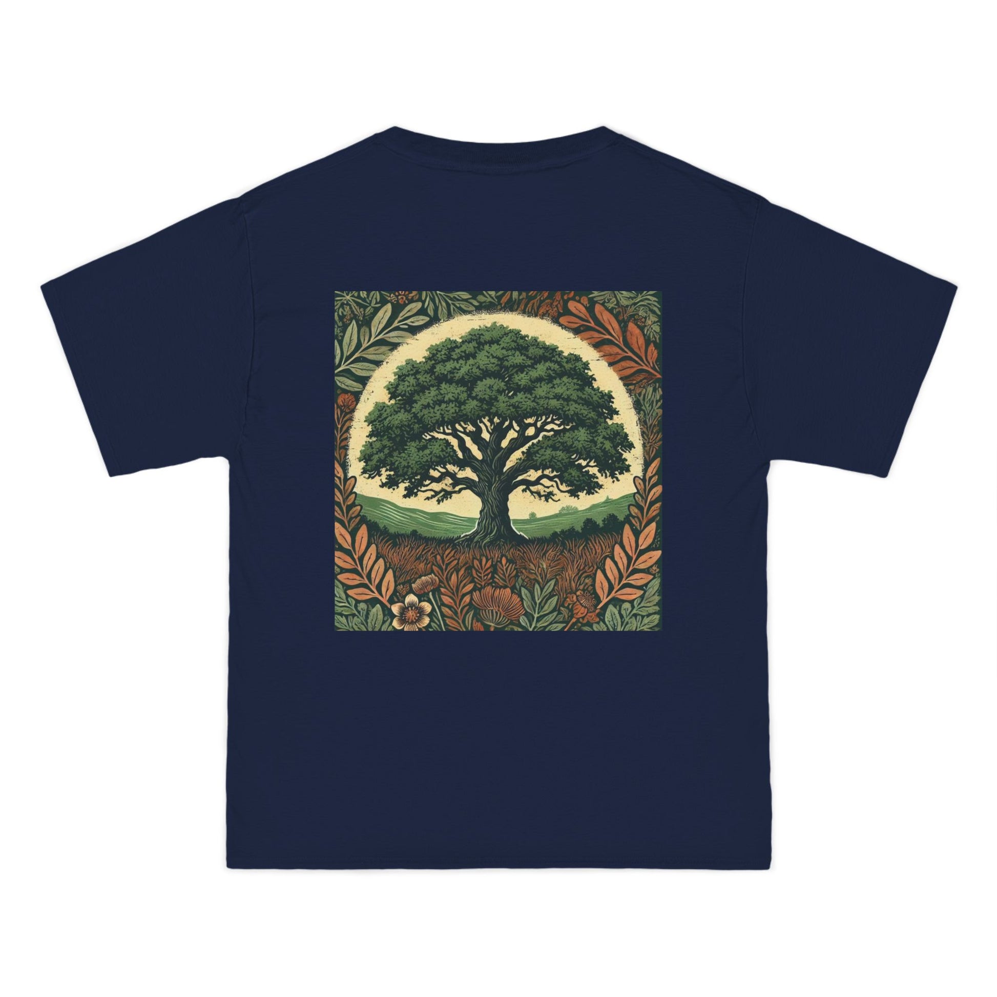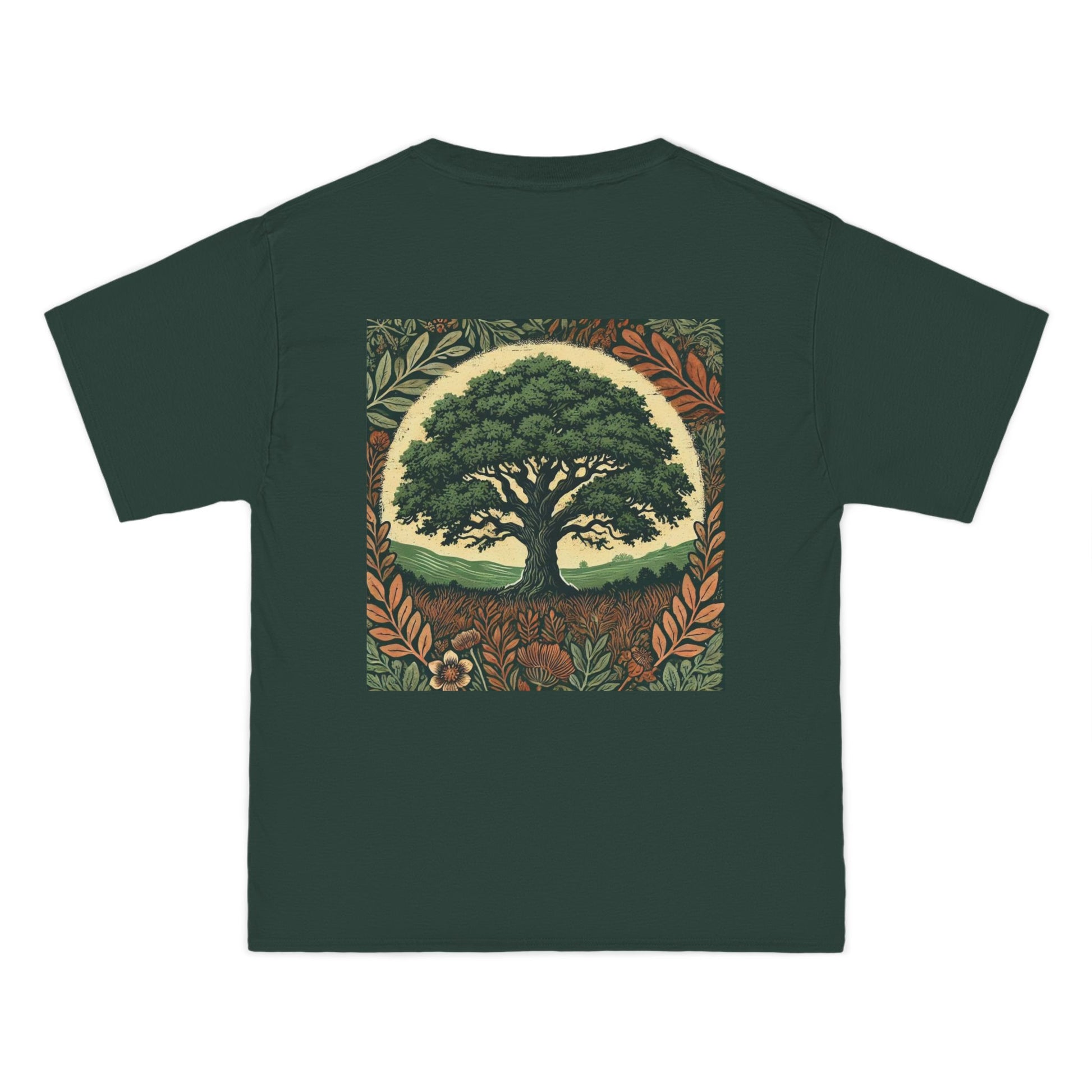 Just like the oak tree, our tee is built to last, thanks to the double-needle stitching on sleeves and bottom hem. The shoulder taping prevents stretching, ensuring that your tee retains its shape wash after wash. Made with specially spun fibers, this tee offers a smooth, durable surface that beautifully showcases the exquisite AI-generated design.
