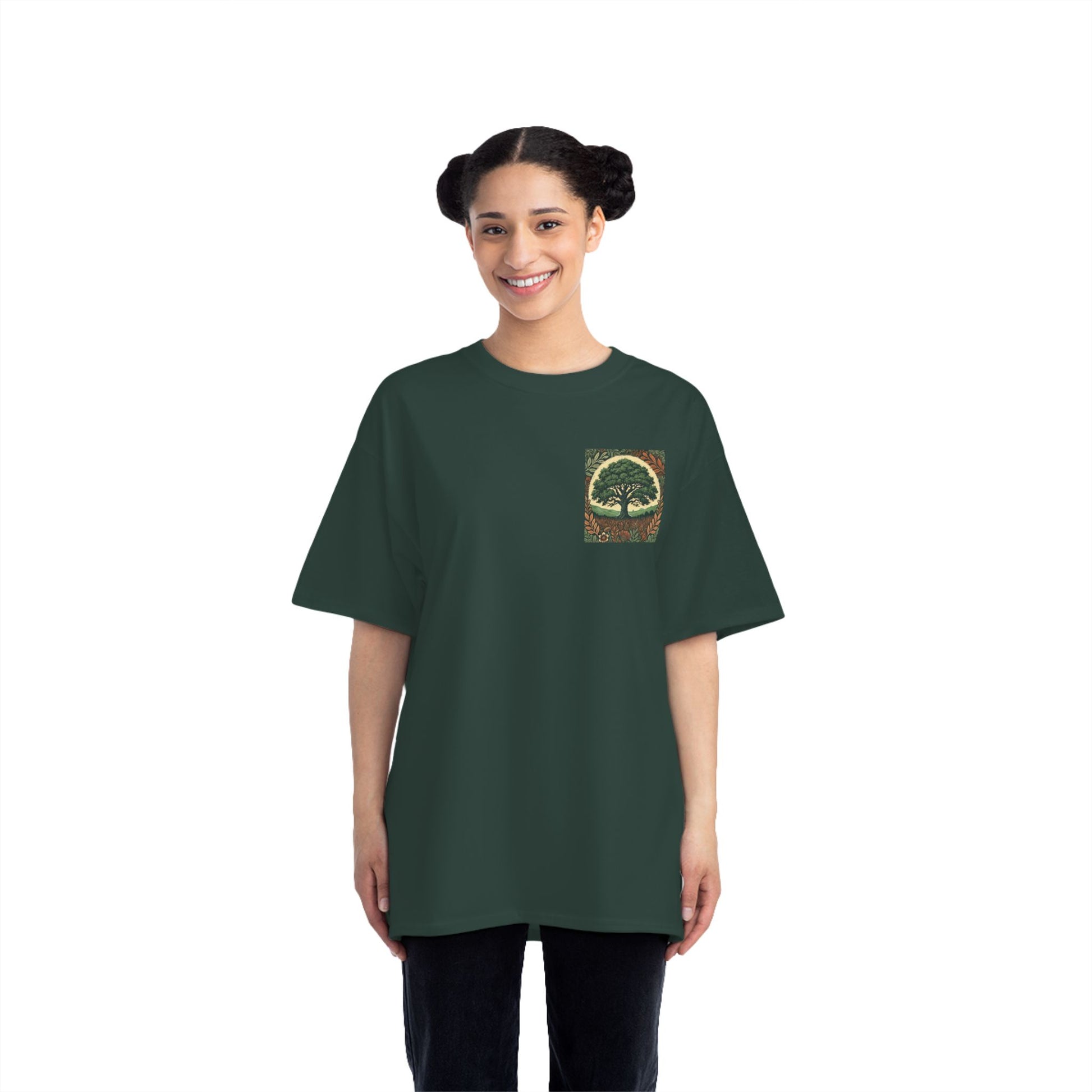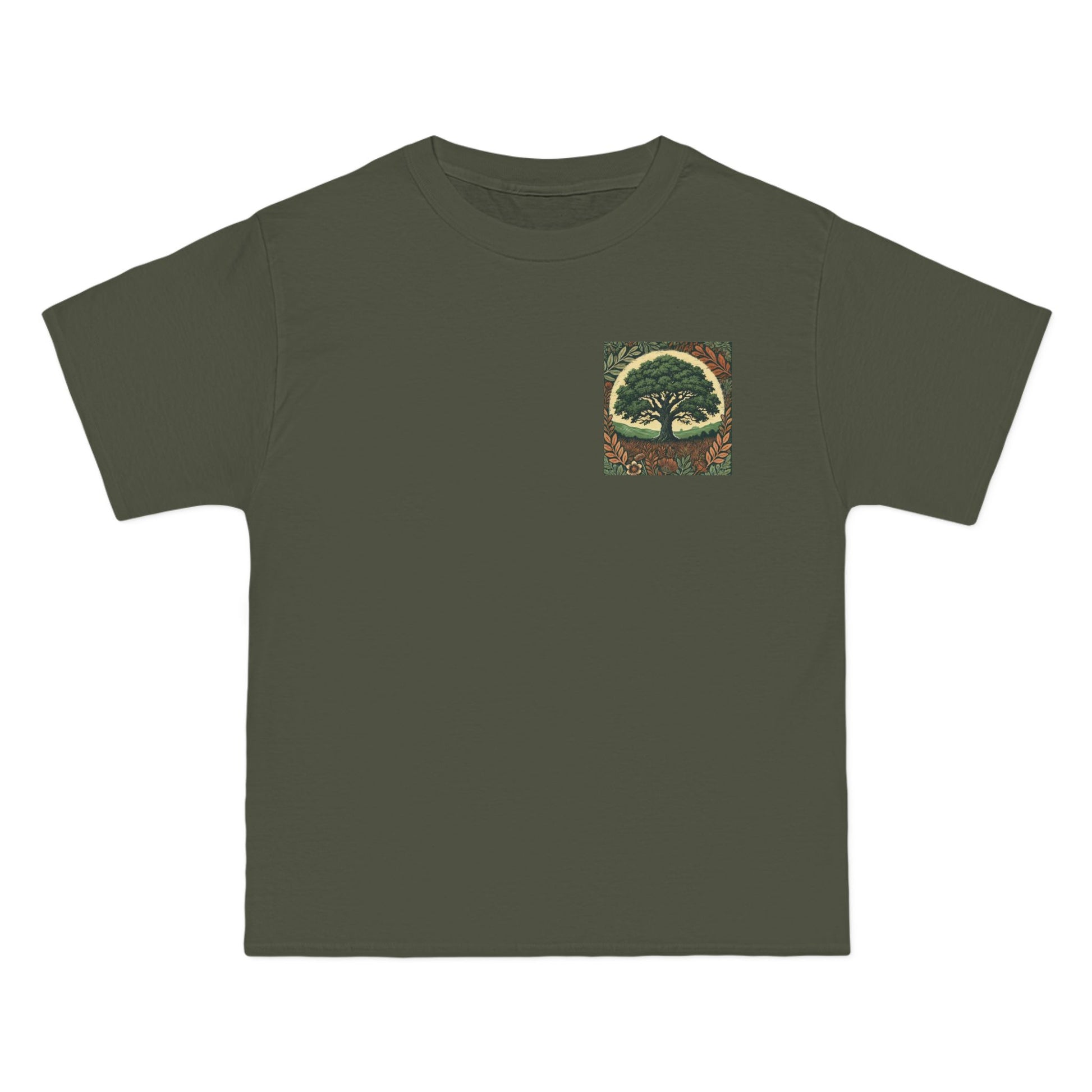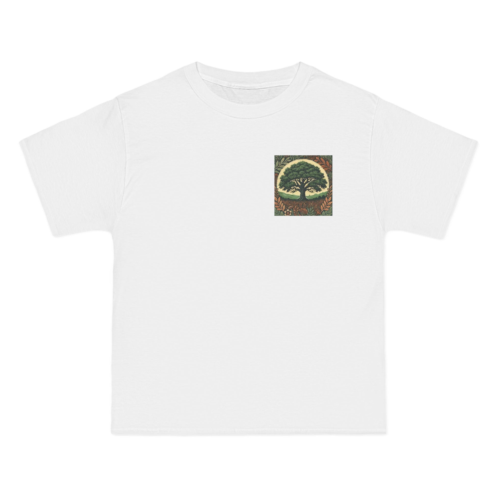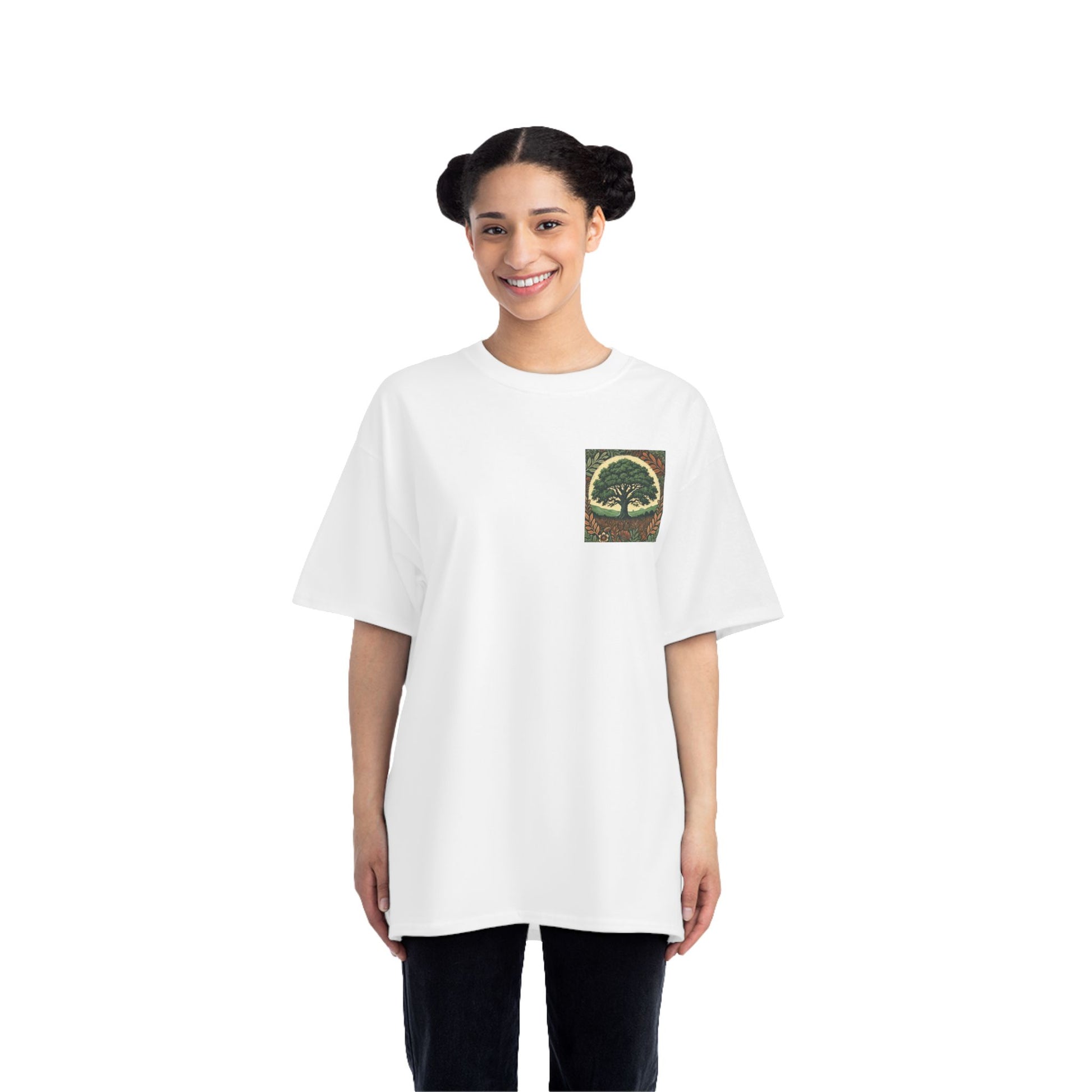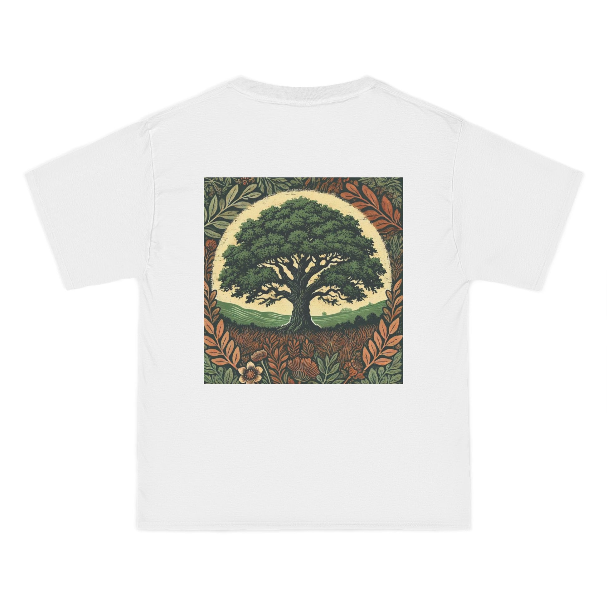 Just like the oak tree, our tee is built to last, thanks to the double-needle stitching on sleeves and bottom hem. The shoulder taping prevents stretching, ensuring that your tee retains its shape wash after wash. Made with specially spun fibers, this tee offers a smooth, durable surface that beautifully showcases the exquisite AI-generated design.