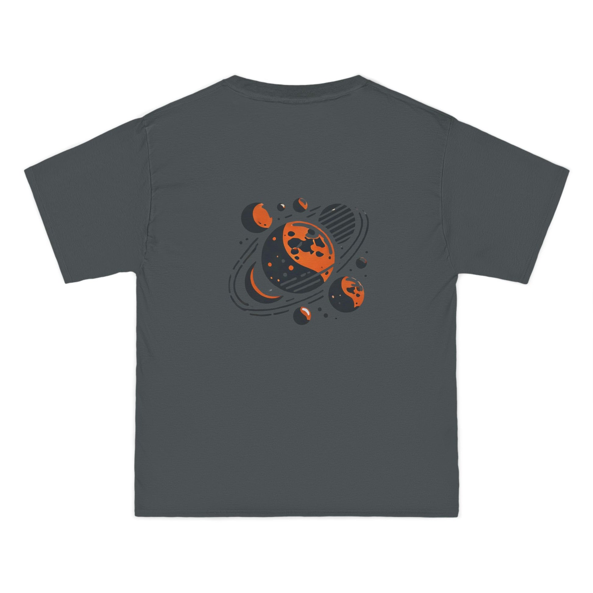 Step into the cosmos and wear your world with the Orbiting Moons: Minimalist Geometric tee from Whatever Clothing. This unique, AI-generated design captures the mesmerizing beauty of the lunar phases, orbiting an eye-catching central object with bold orange highlights. It's more than just a tee, it's wearable art that allows you to unleash your creativity and express your individuality.