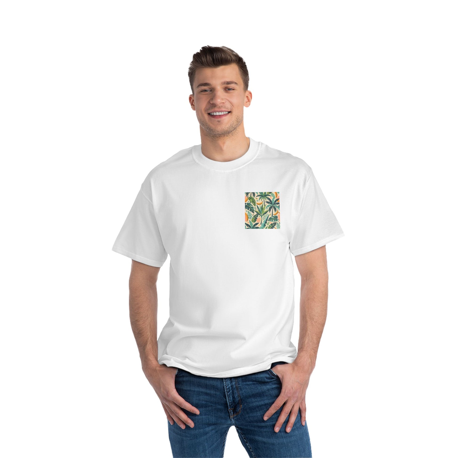 Dive into an endless summer with our "Palm Trees and Leaves: Playful Summer" collection. It's a vibrant canvas of stylized green palm trees and banana leaves, sprinkled across a soft pastel backdrop, designed to make you feel a tropical breeze with every glance. It's more than just clothing, it's wearable art.
