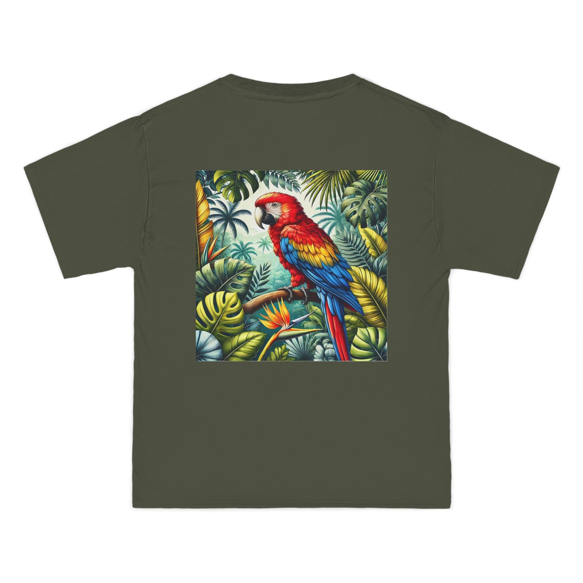 Unleash your creativity and step into a world vibrant with colors and life, all from the comfort of your own wardrobe with our Parrot: Tropical Vibe tee. Inspired by the beauty of nature, this shirt features a brightly colored parrot, majestically perched on a branch against a lush, jungle backdrop. This is not just a t-shirt; it's wearable art.