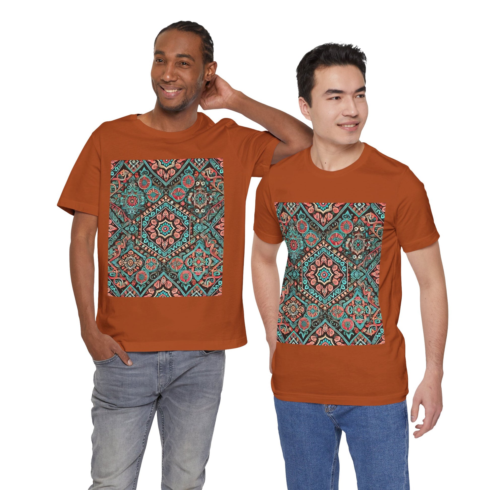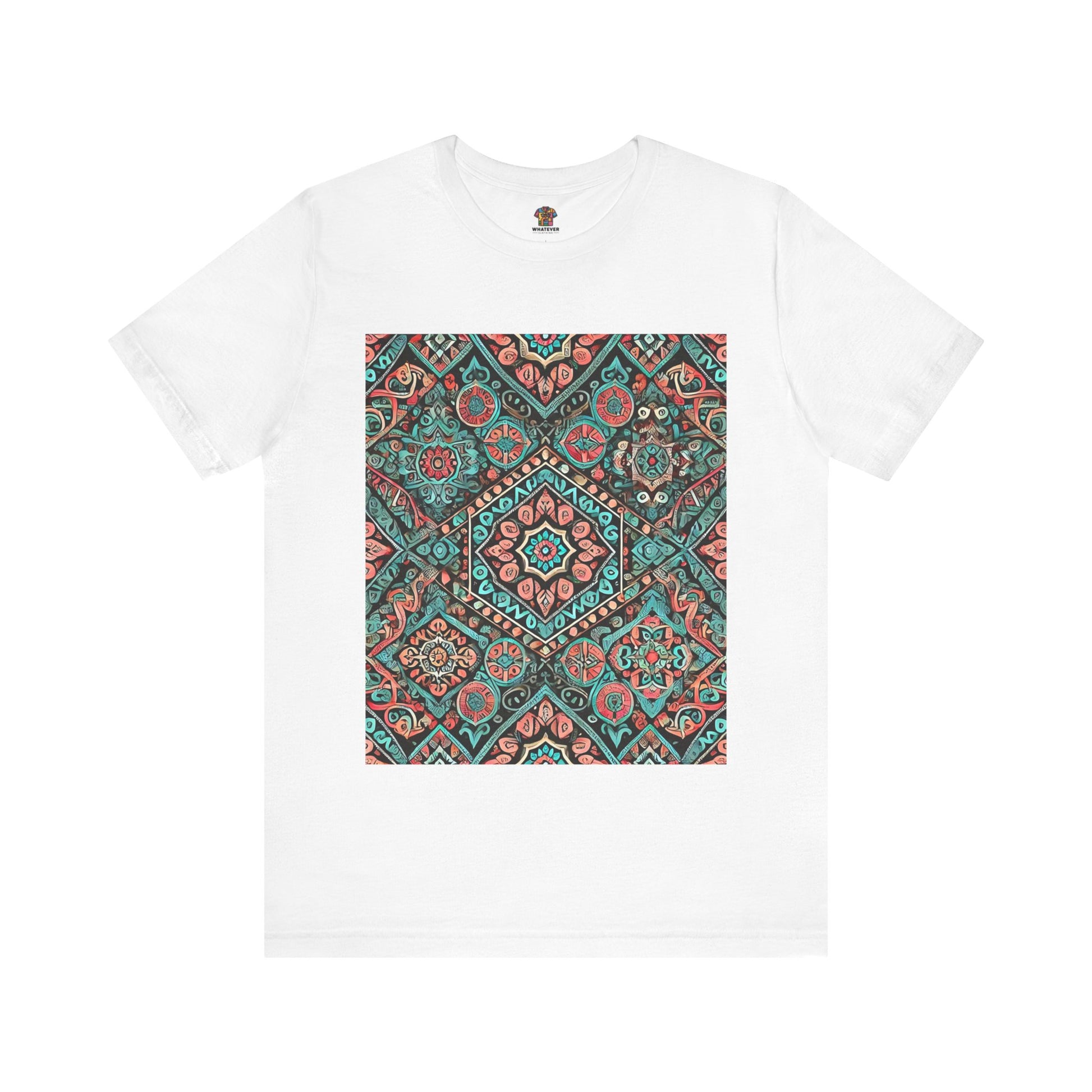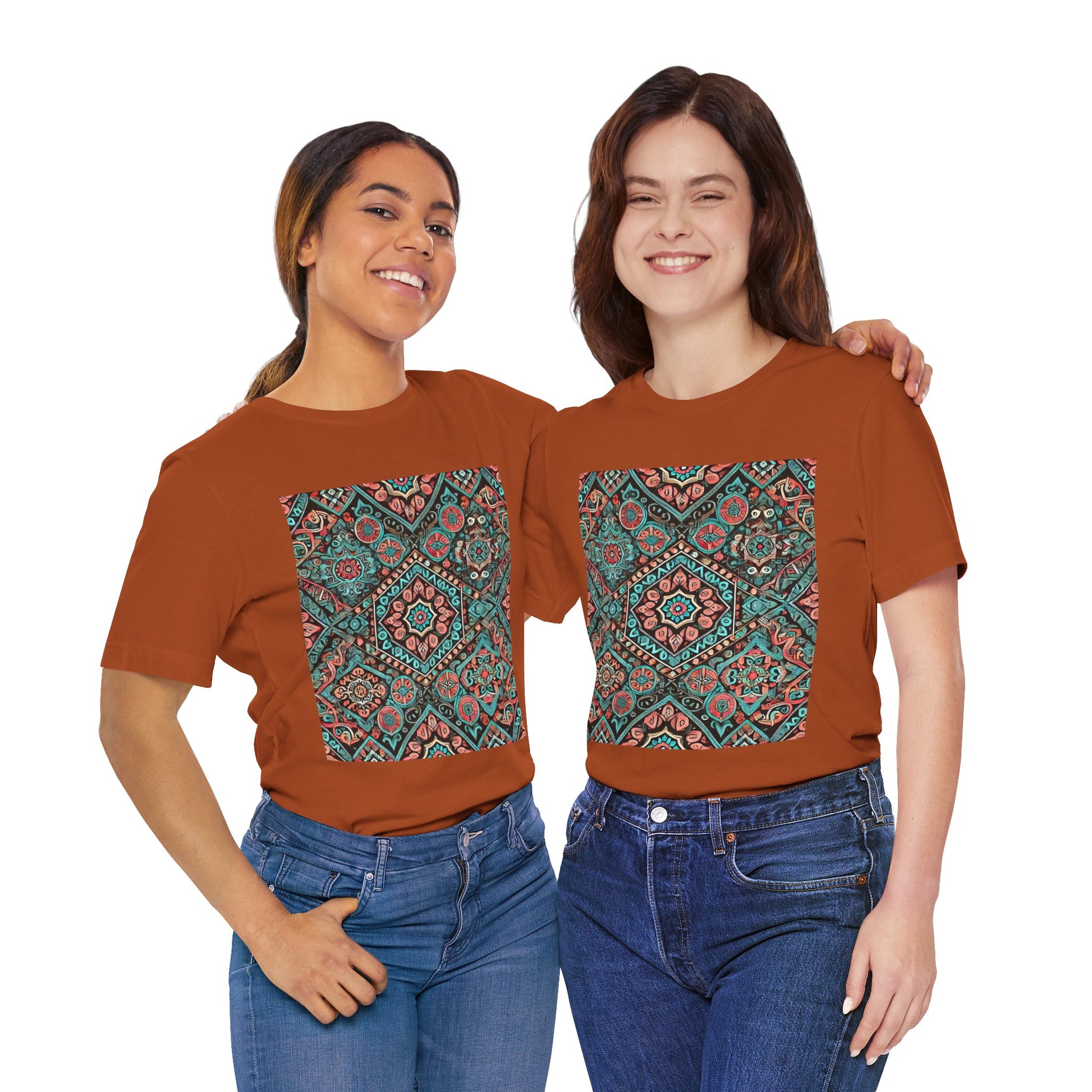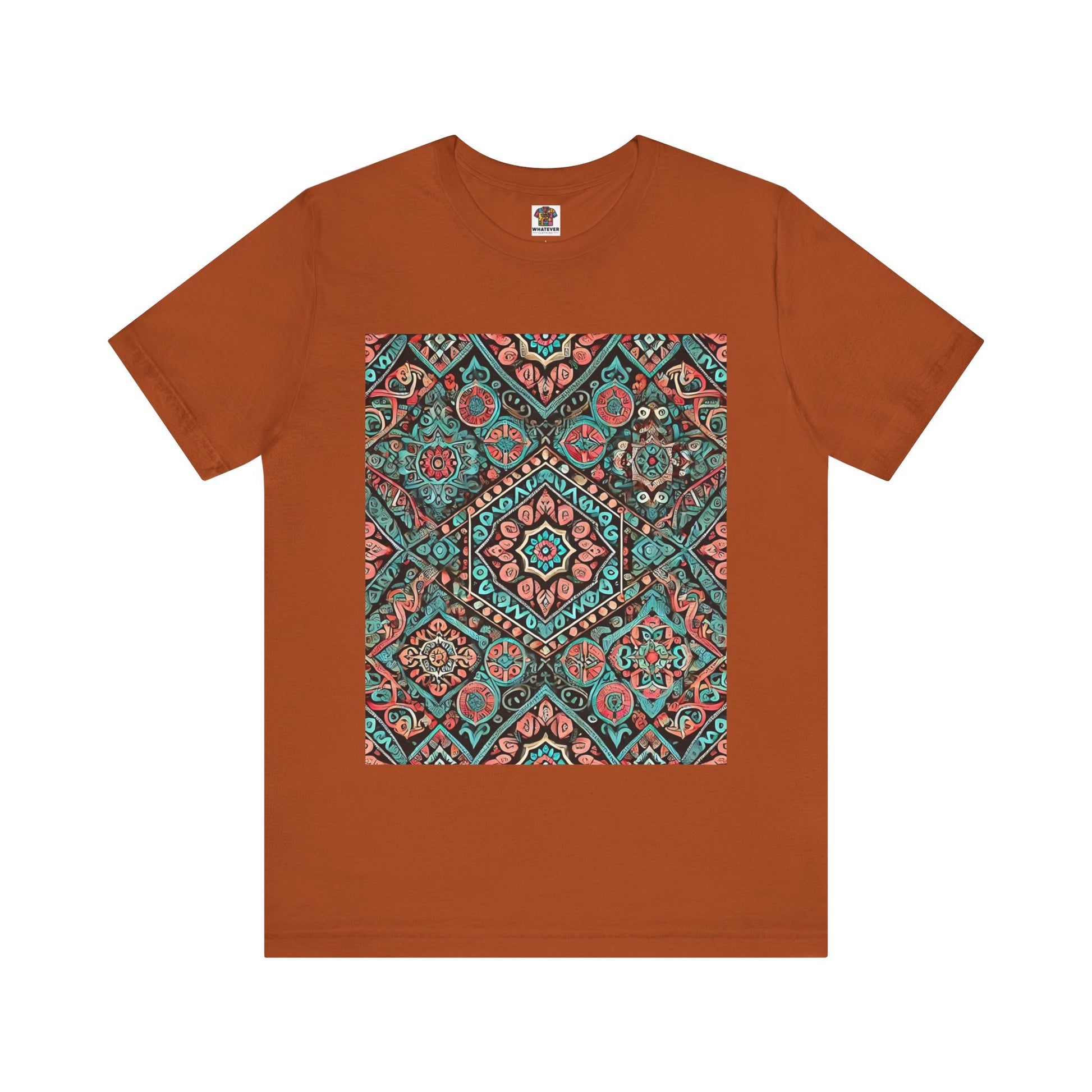 A bold and vibrant patterned background that captures the essence of bohemian style, ideal for adding depth and texture to your outfit.