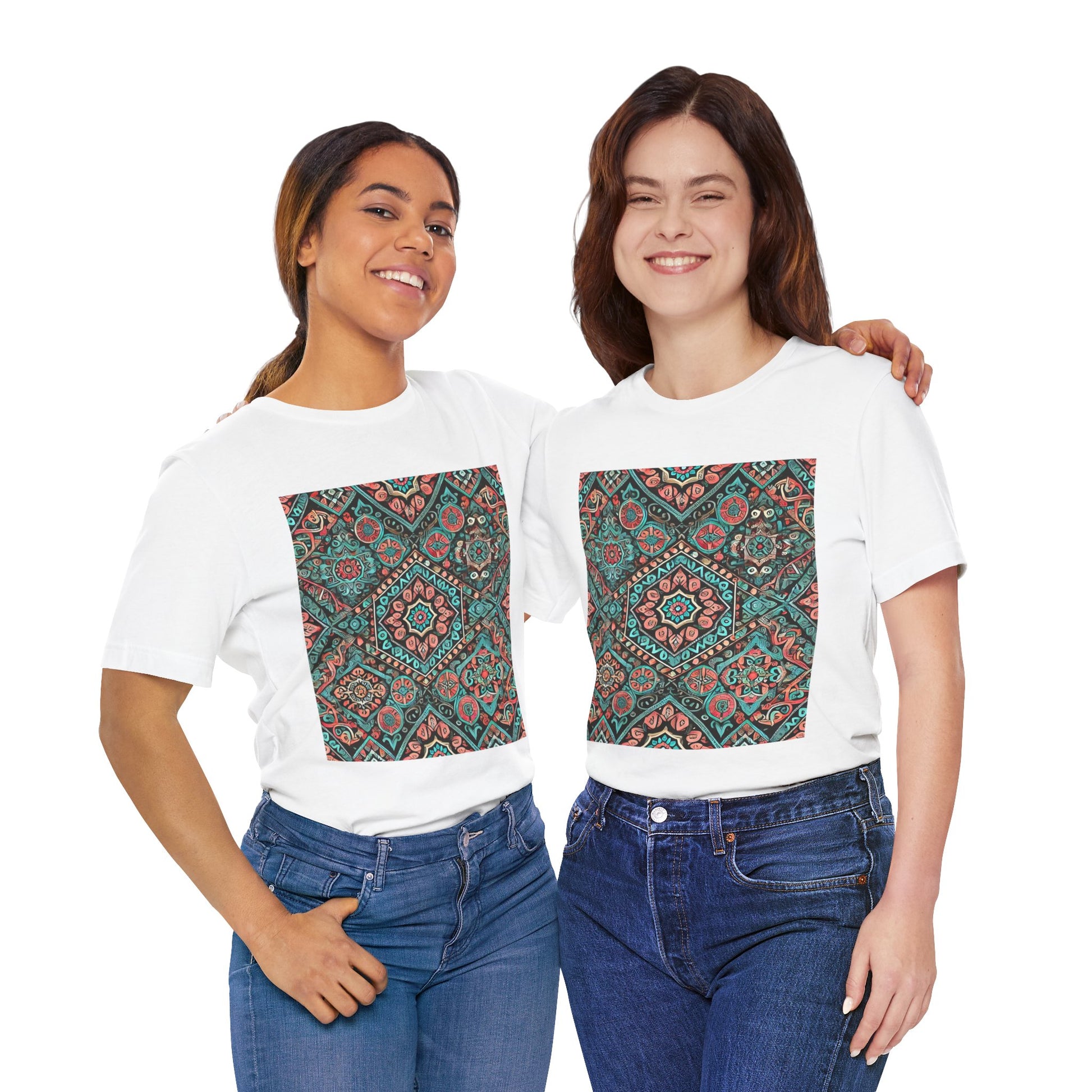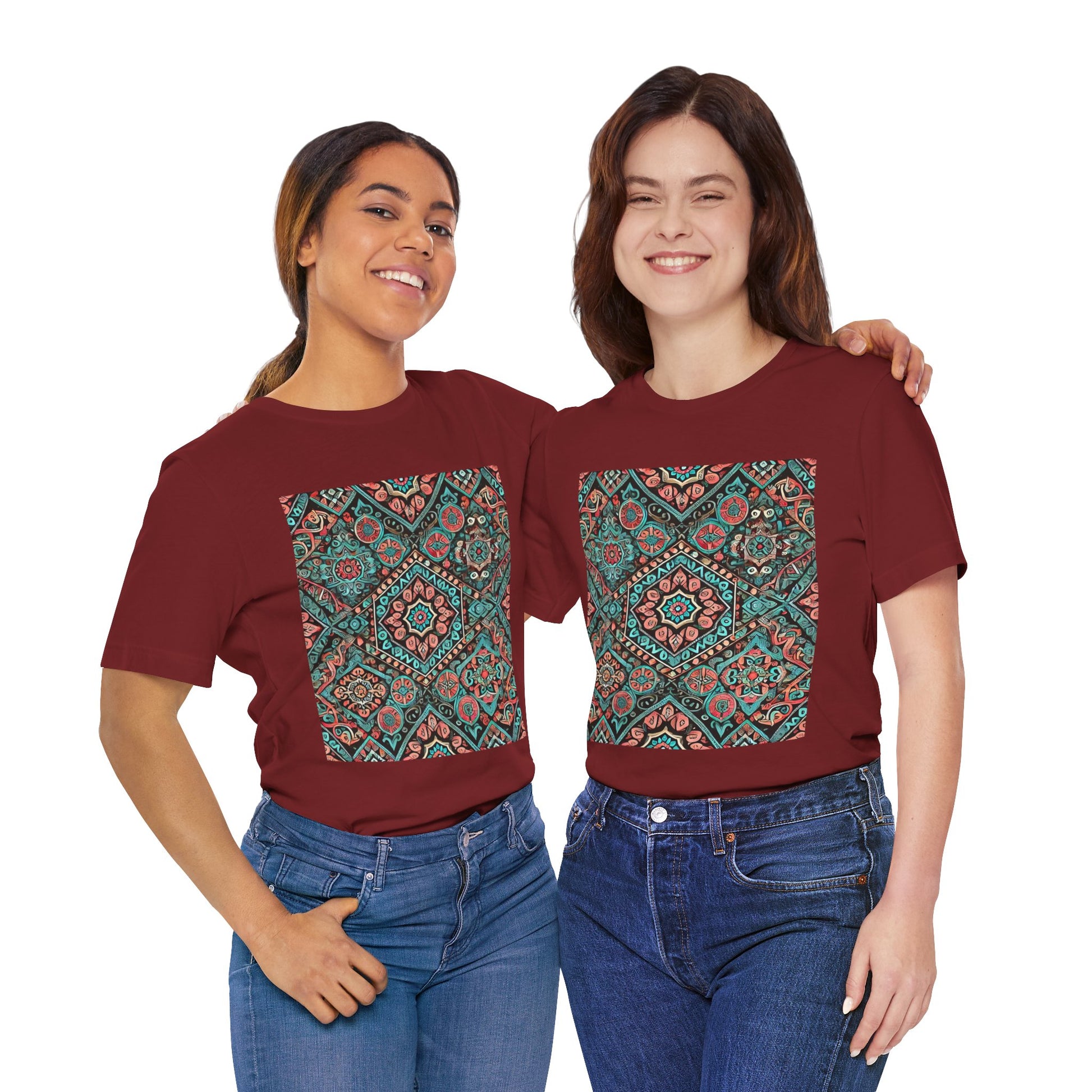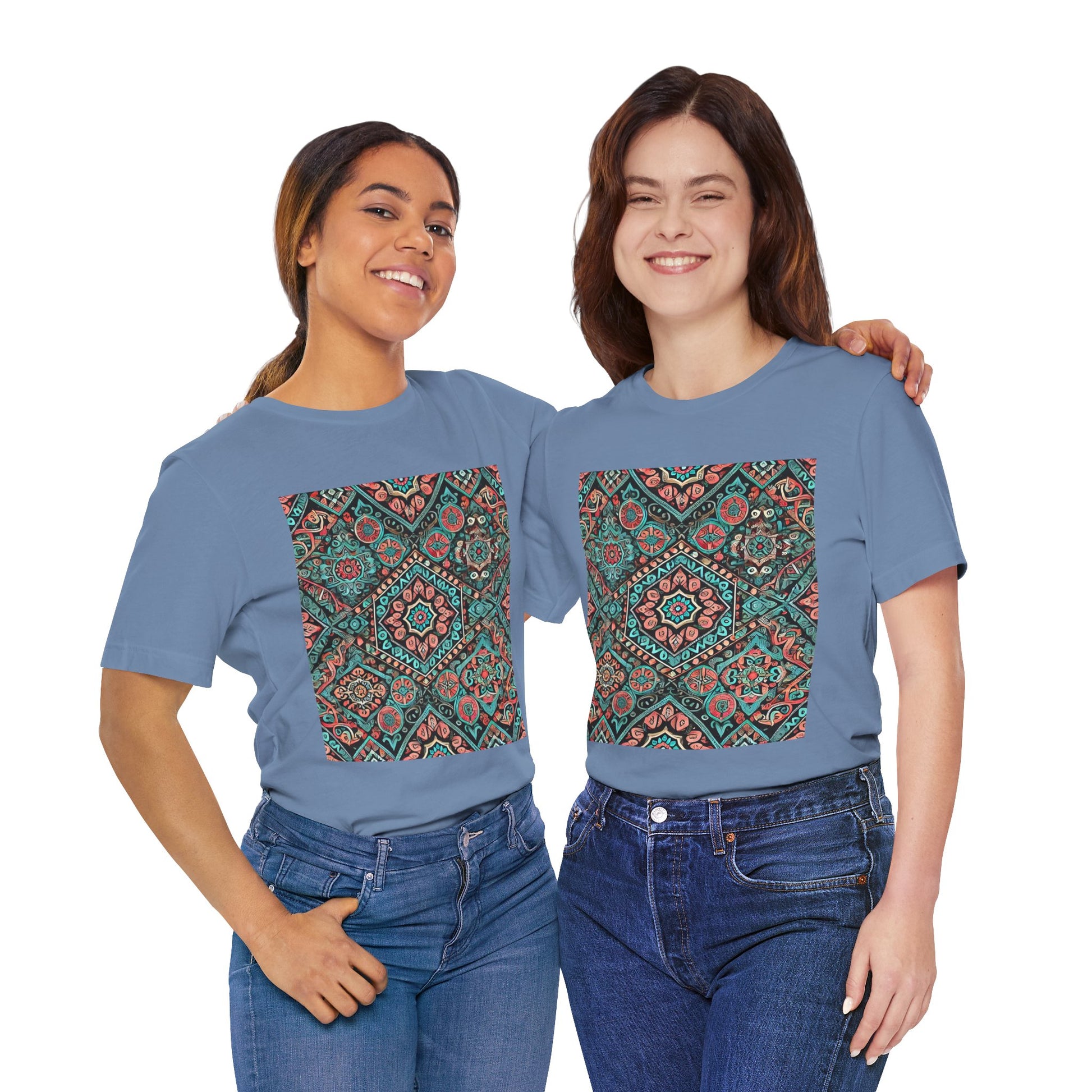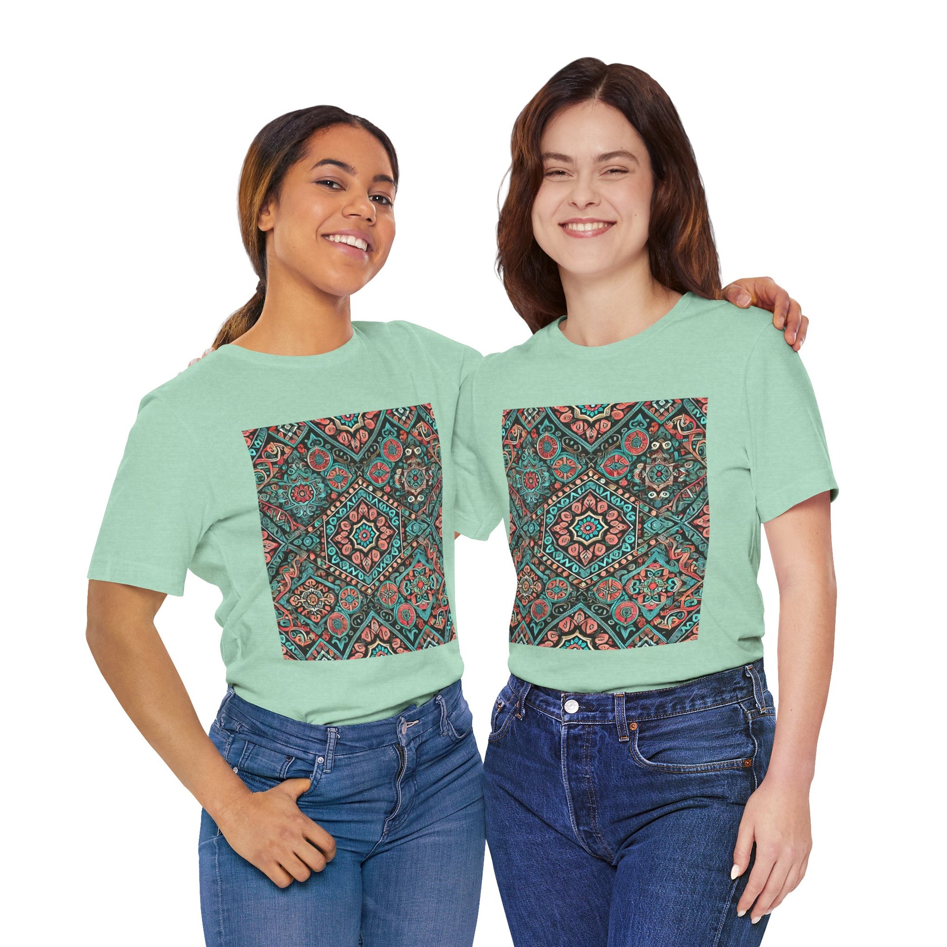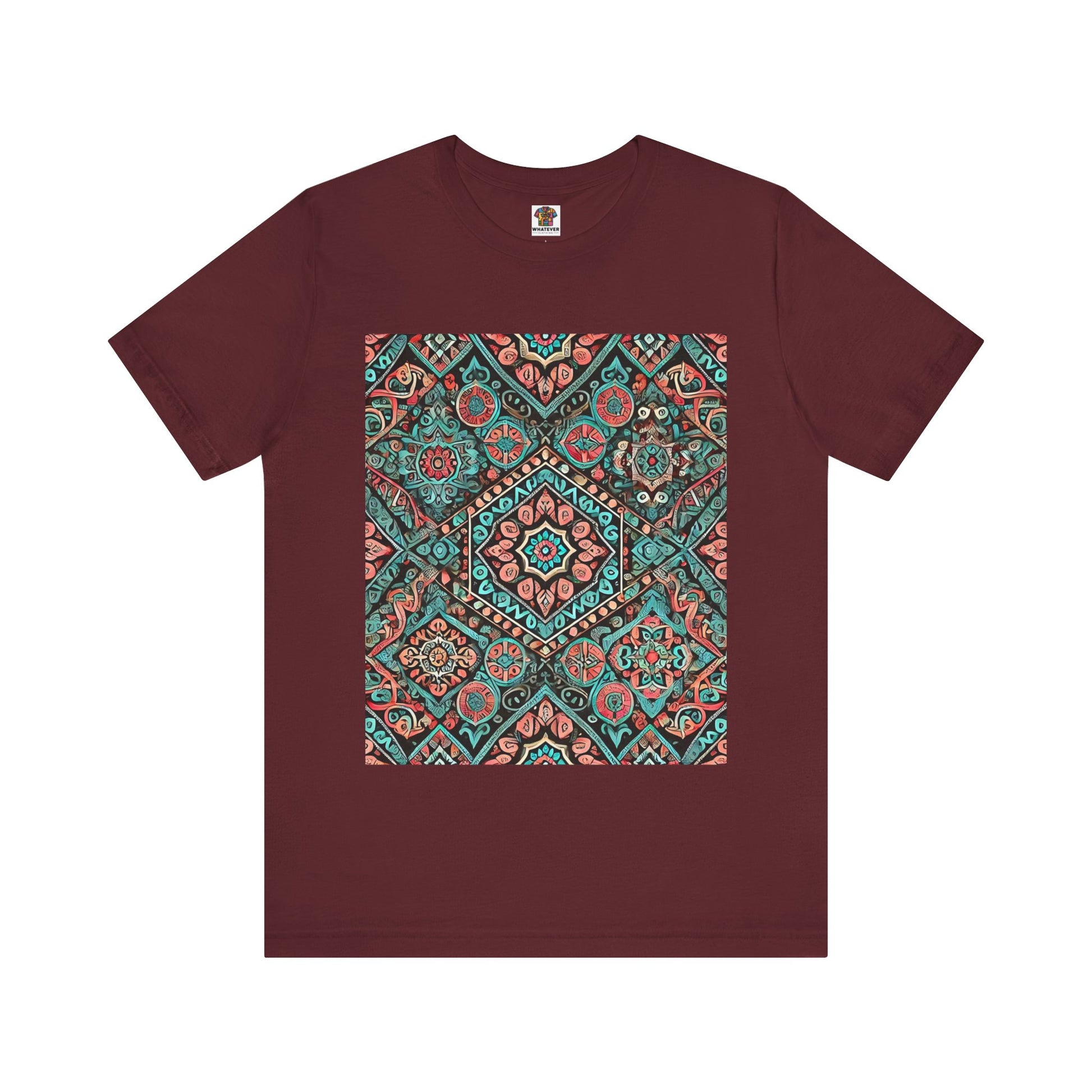 A bold and vibrant patterned background that captures the essence of bohemian style, ideal for adding depth and texture to your outfit.