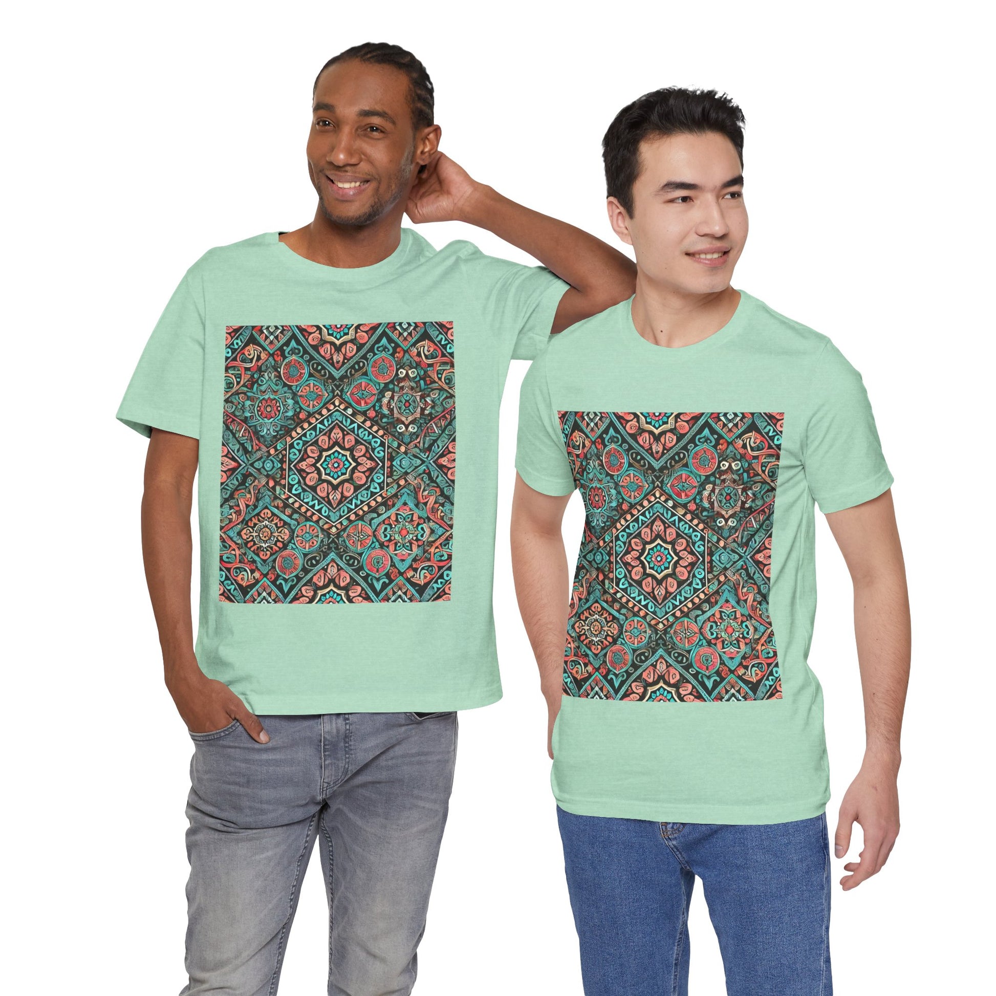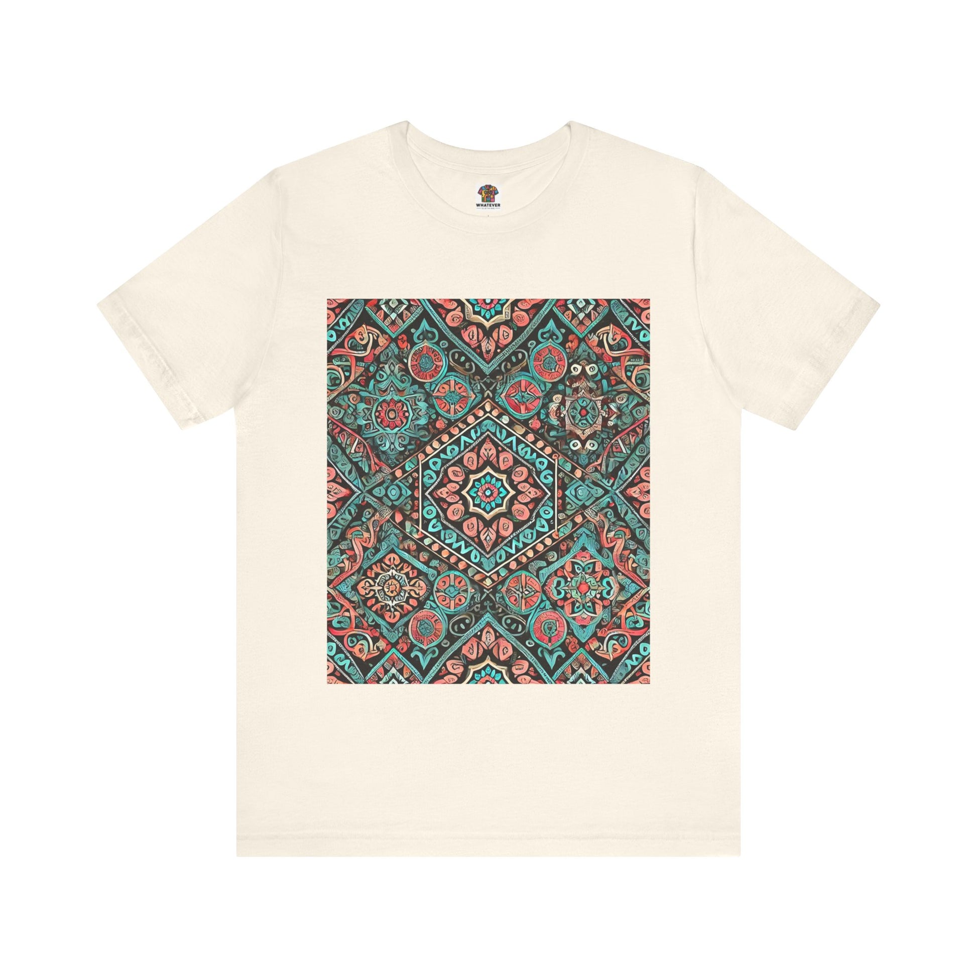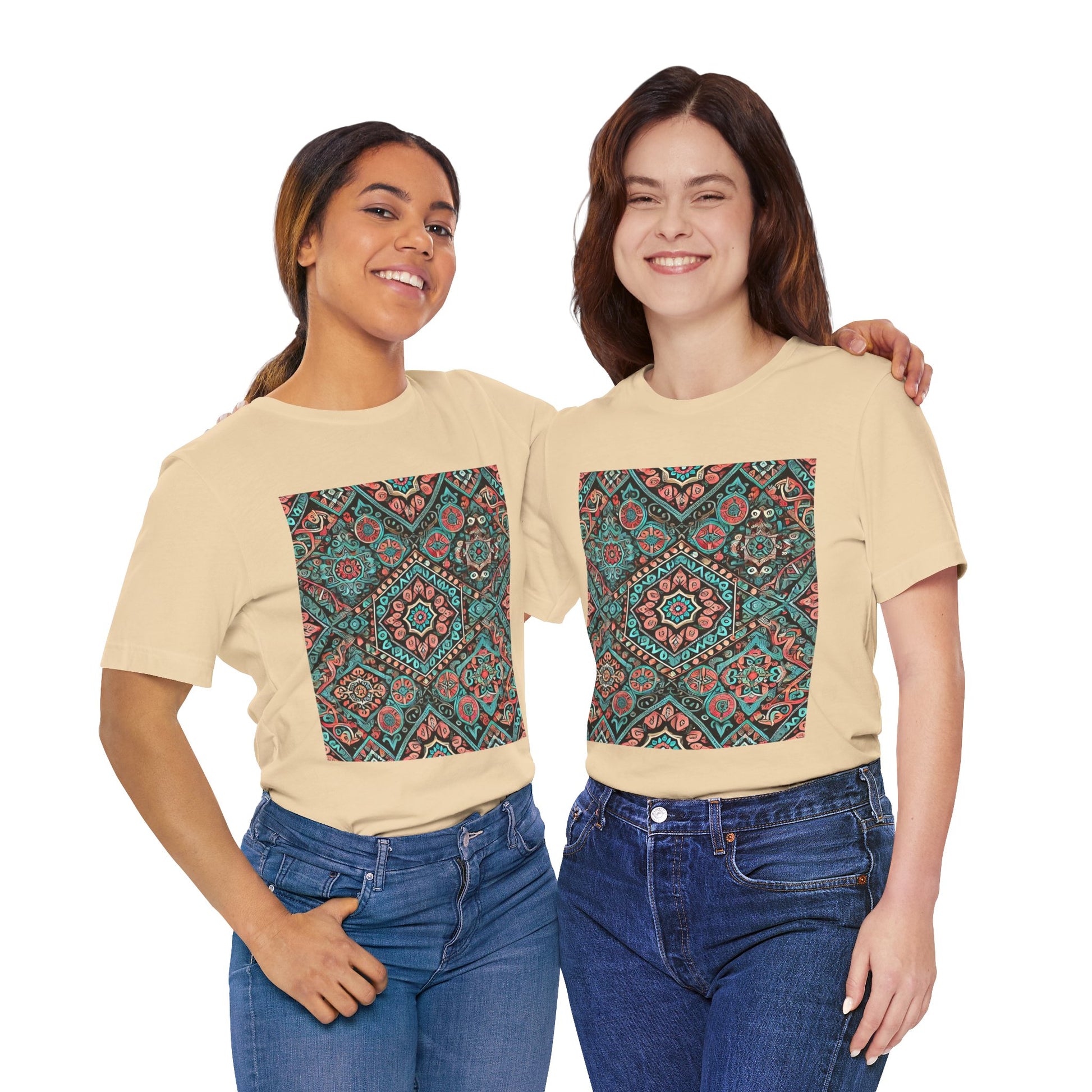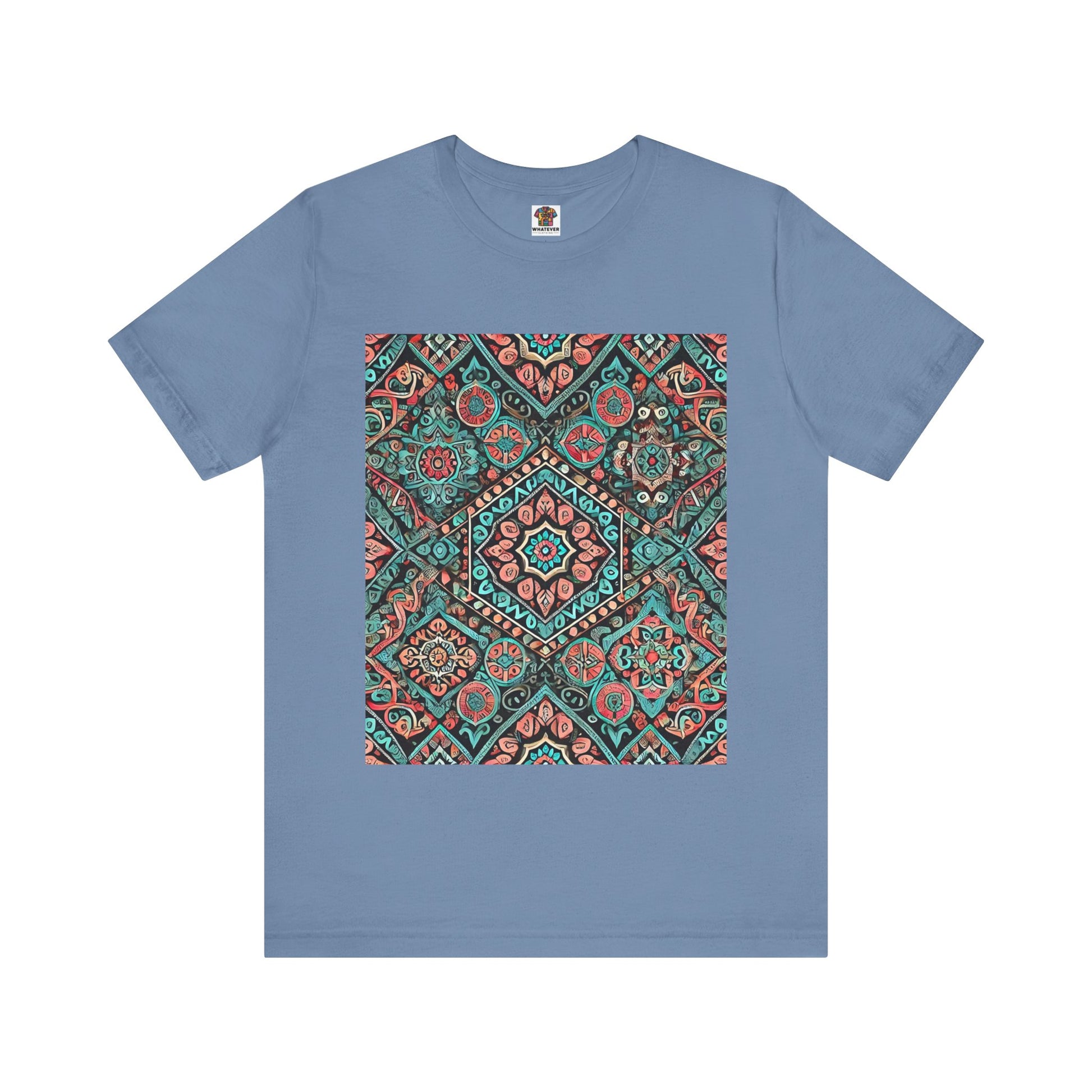 A bold and vibrant patterned background that captures the essence of bohemian style, ideal for adding depth and texture to your outfit.