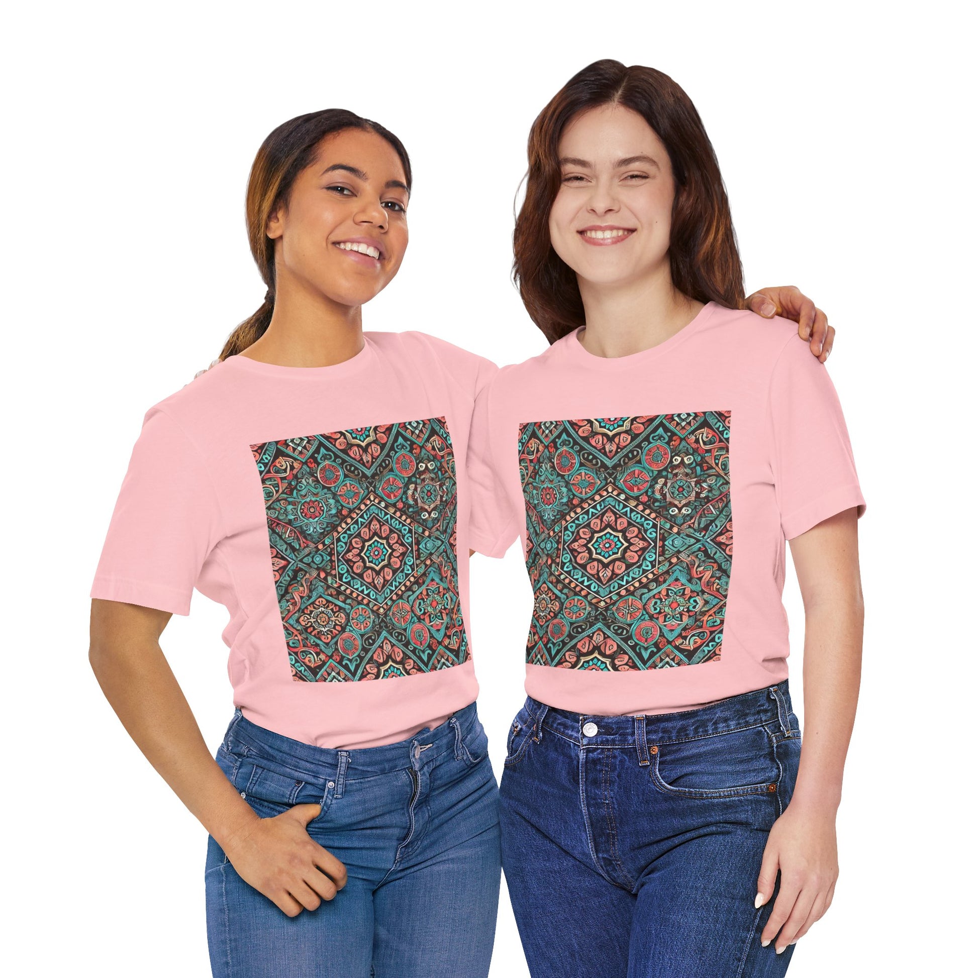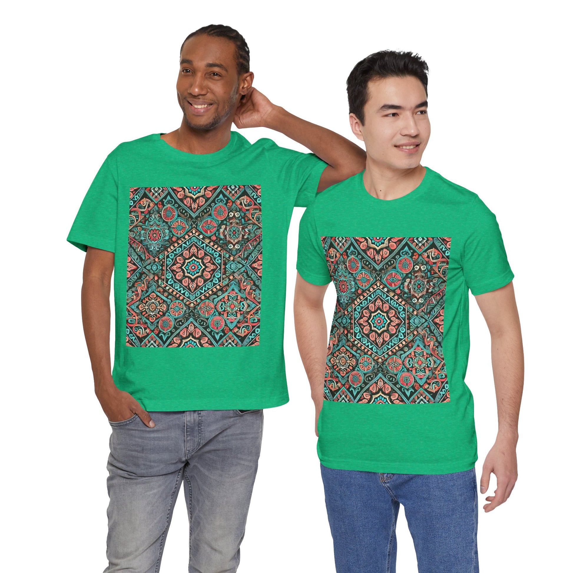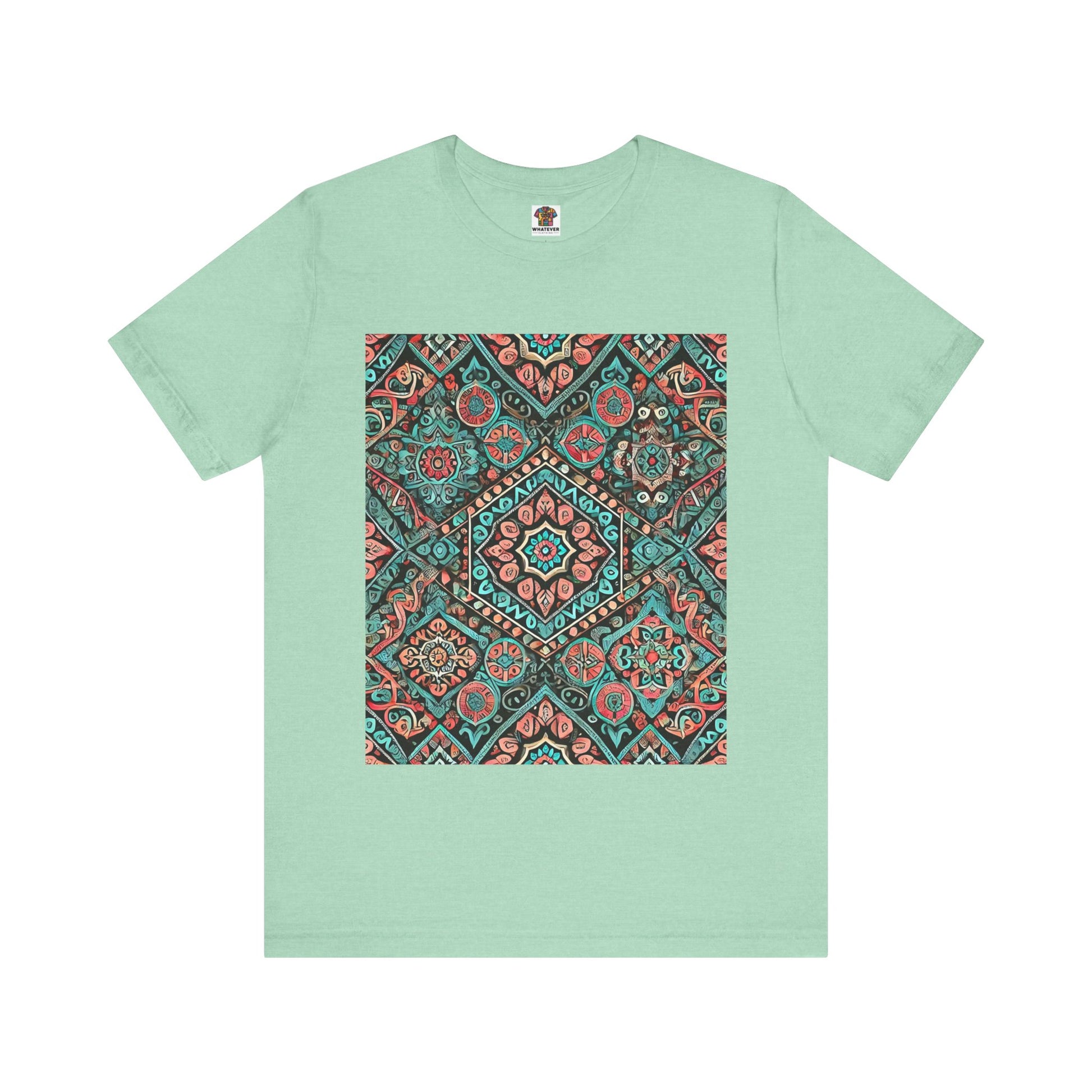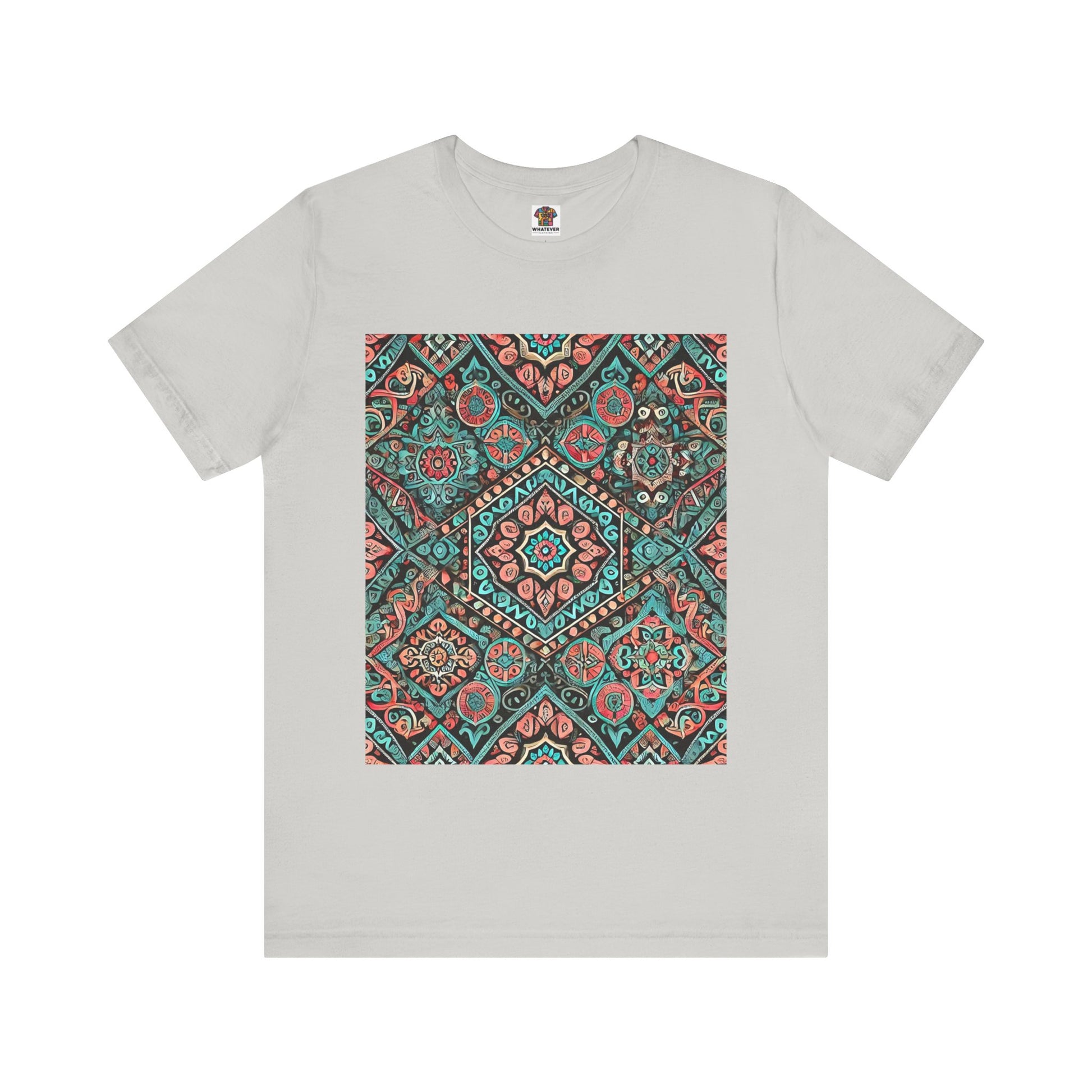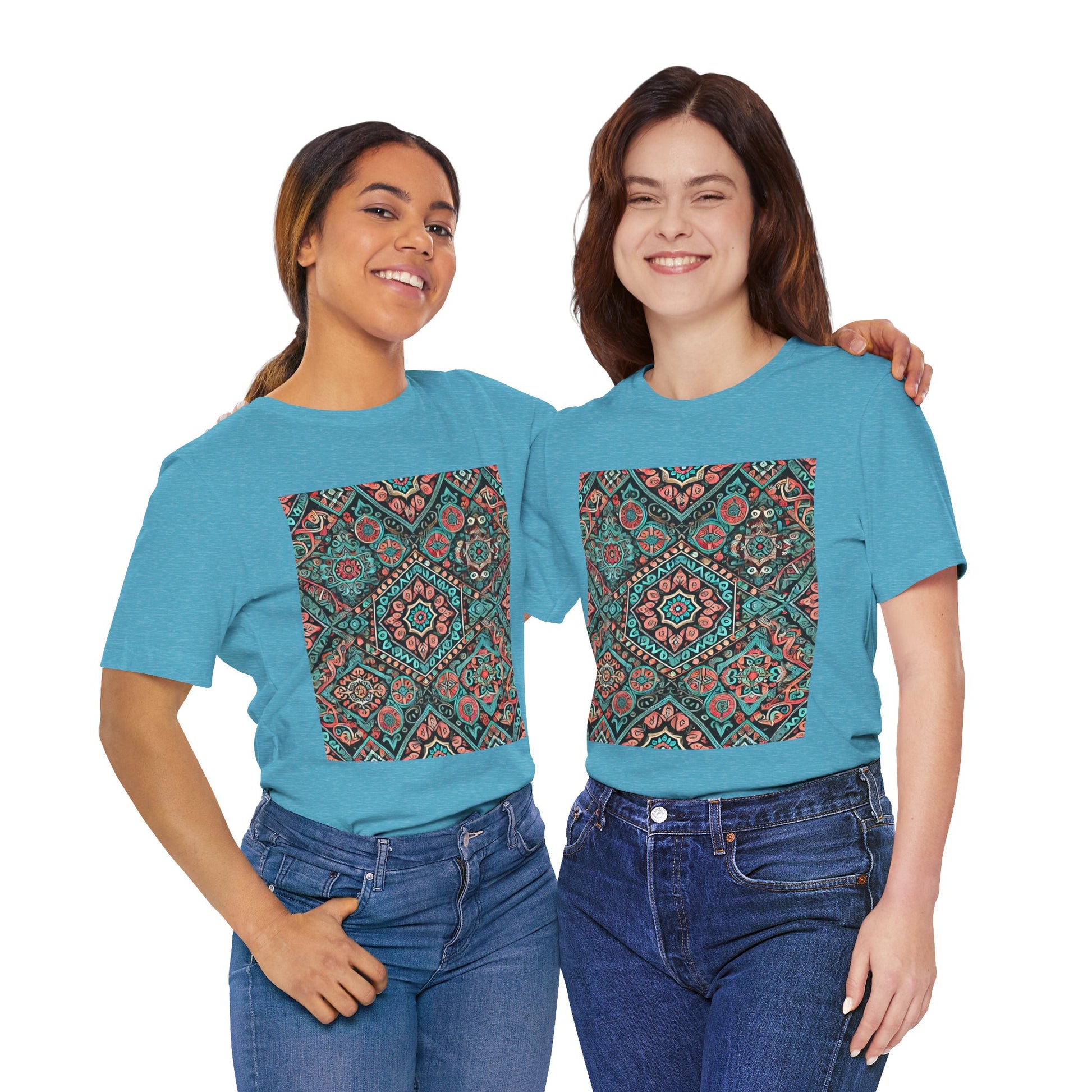 A bold and vibrant patterned background that captures the essence of bohemian style, ideal for adding depth and texture to your outfit.