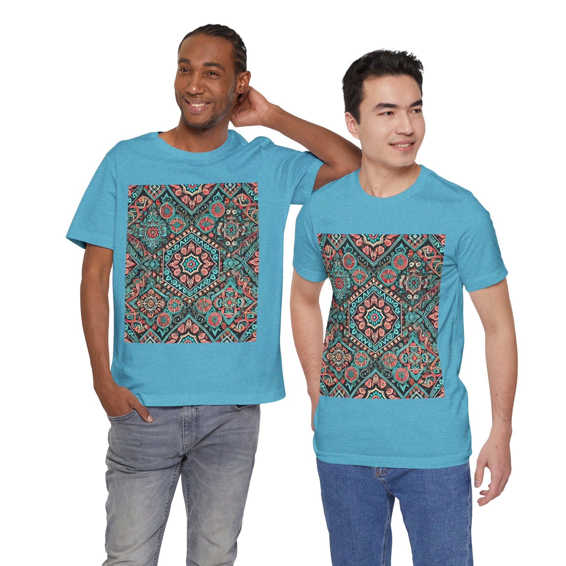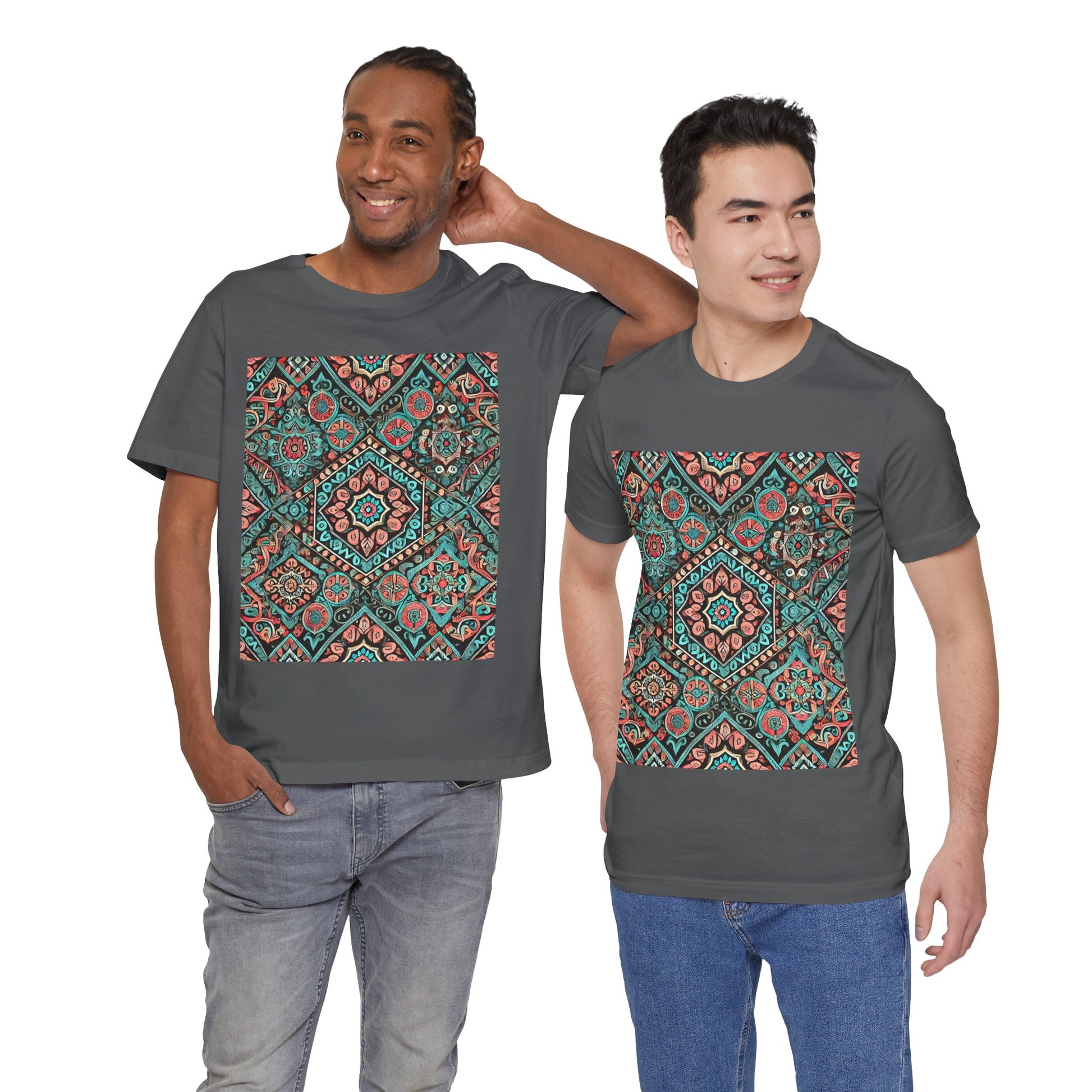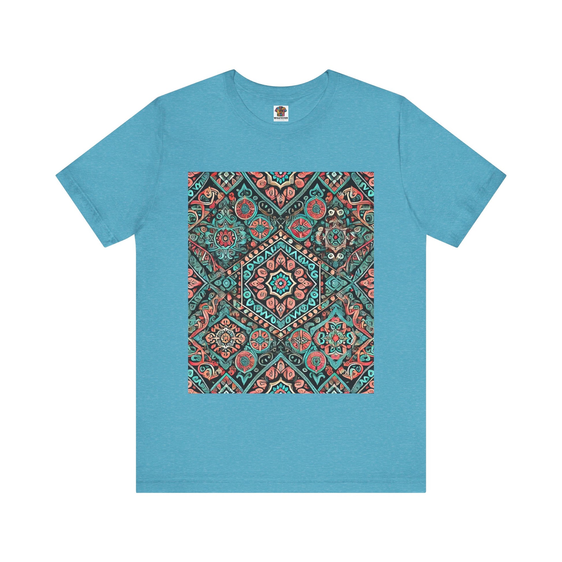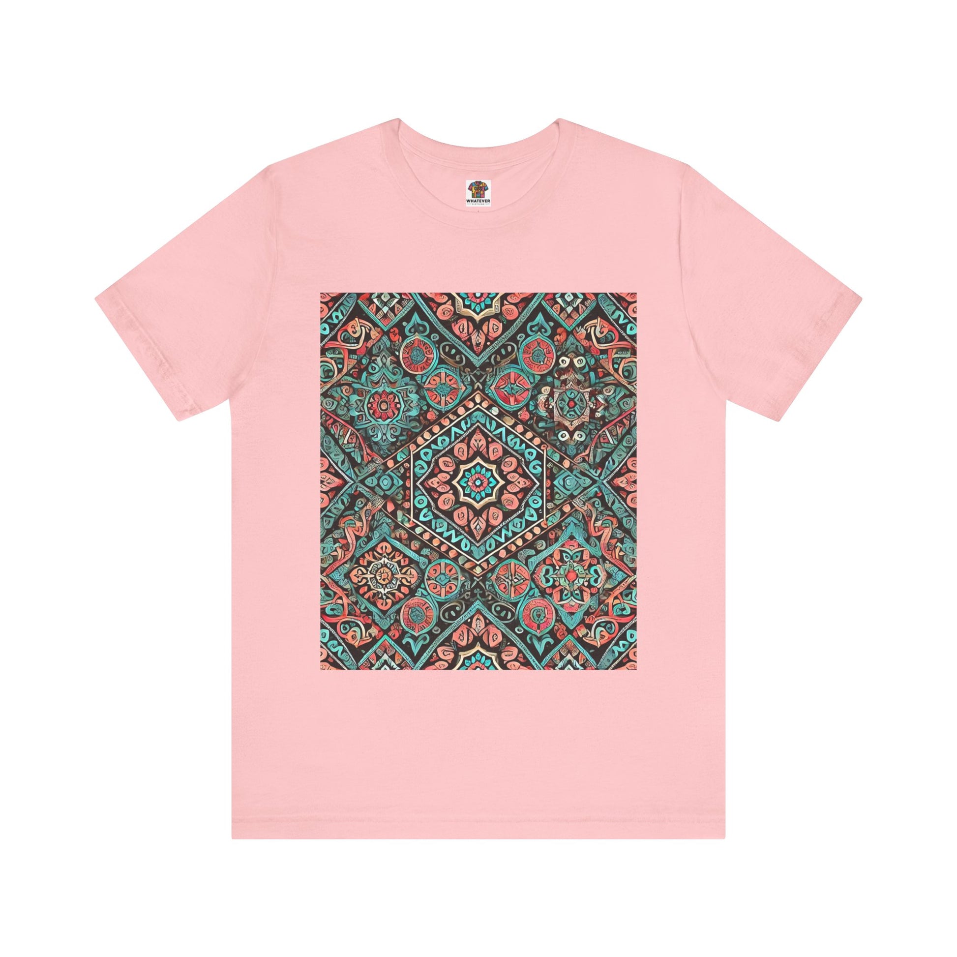 A bold and vibrant patterned background that captures the essence of bohemian style, ideal for adding depth and texture to your outfit.