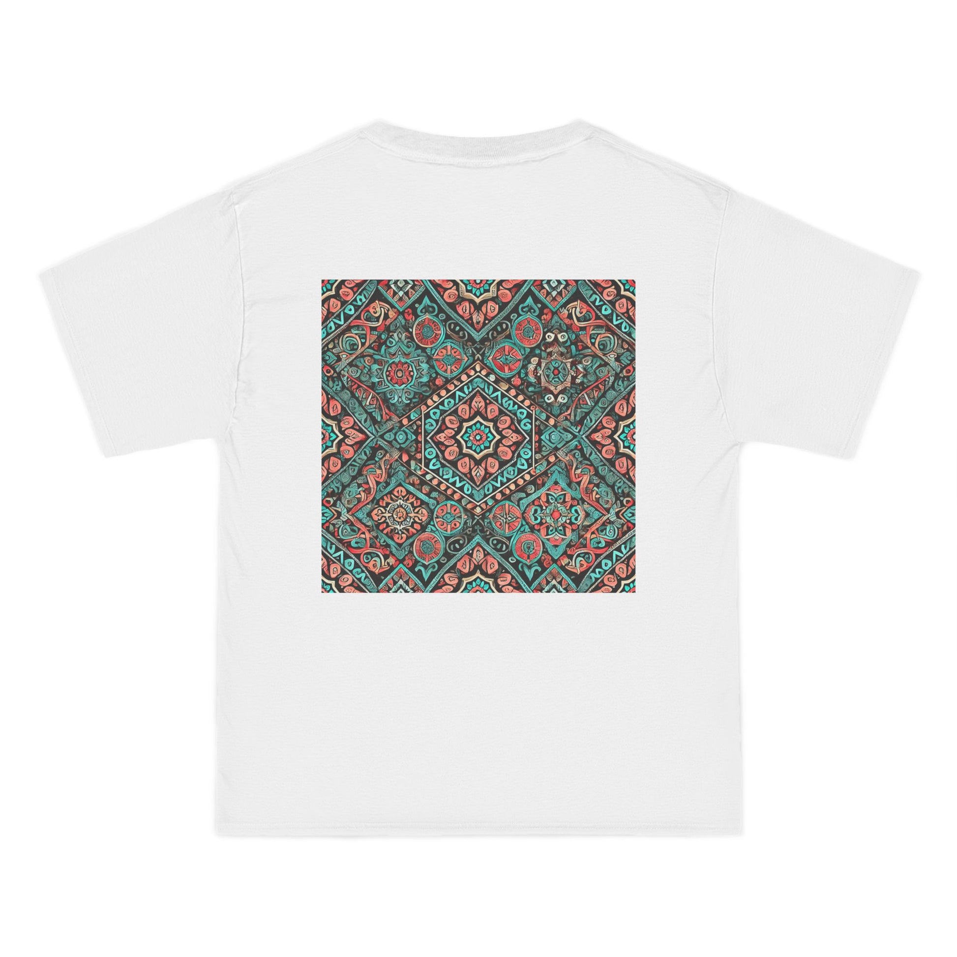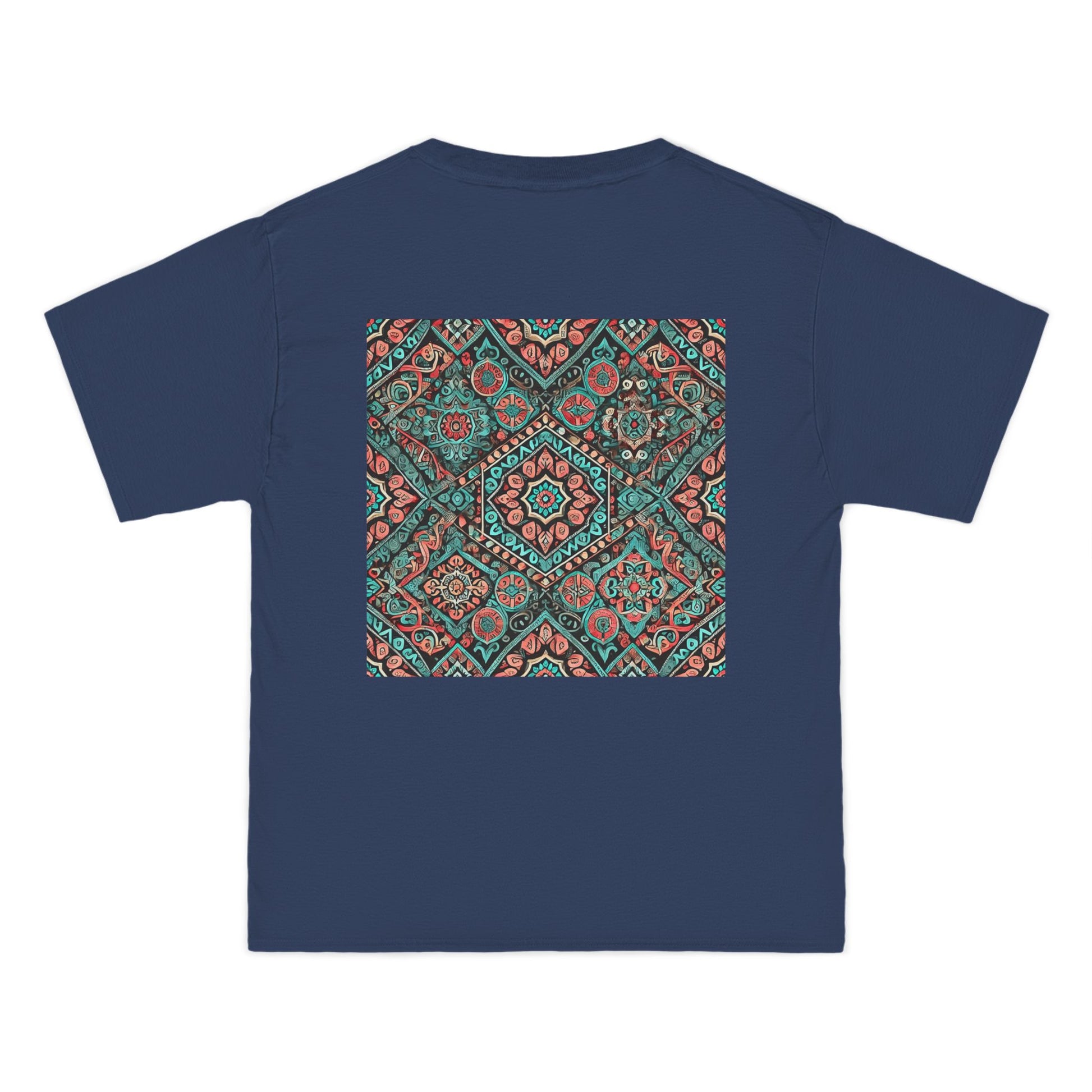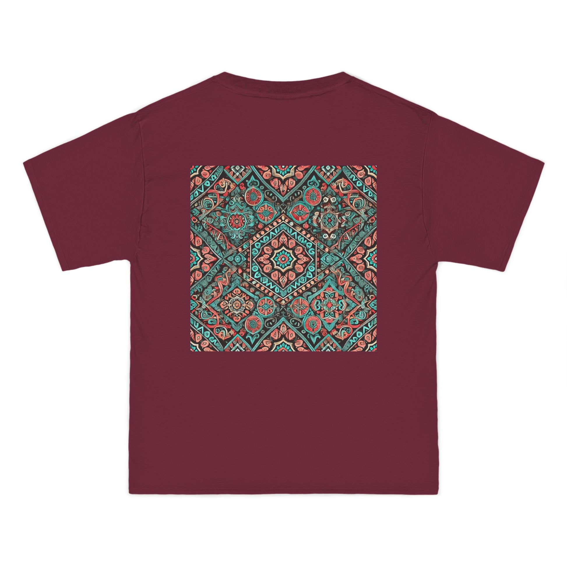 Unleash your creativity with our Patterned Background: Ethnic Boho Vibes. This visually stunning piece is more than just a garment; it's wearable art that lets you 'Wear Your World.' Filled with bold, vibrant patterns, this design embodies the free-spirited essence of bohemian style, offering a unique depth and texture that can only elevate your outfit.