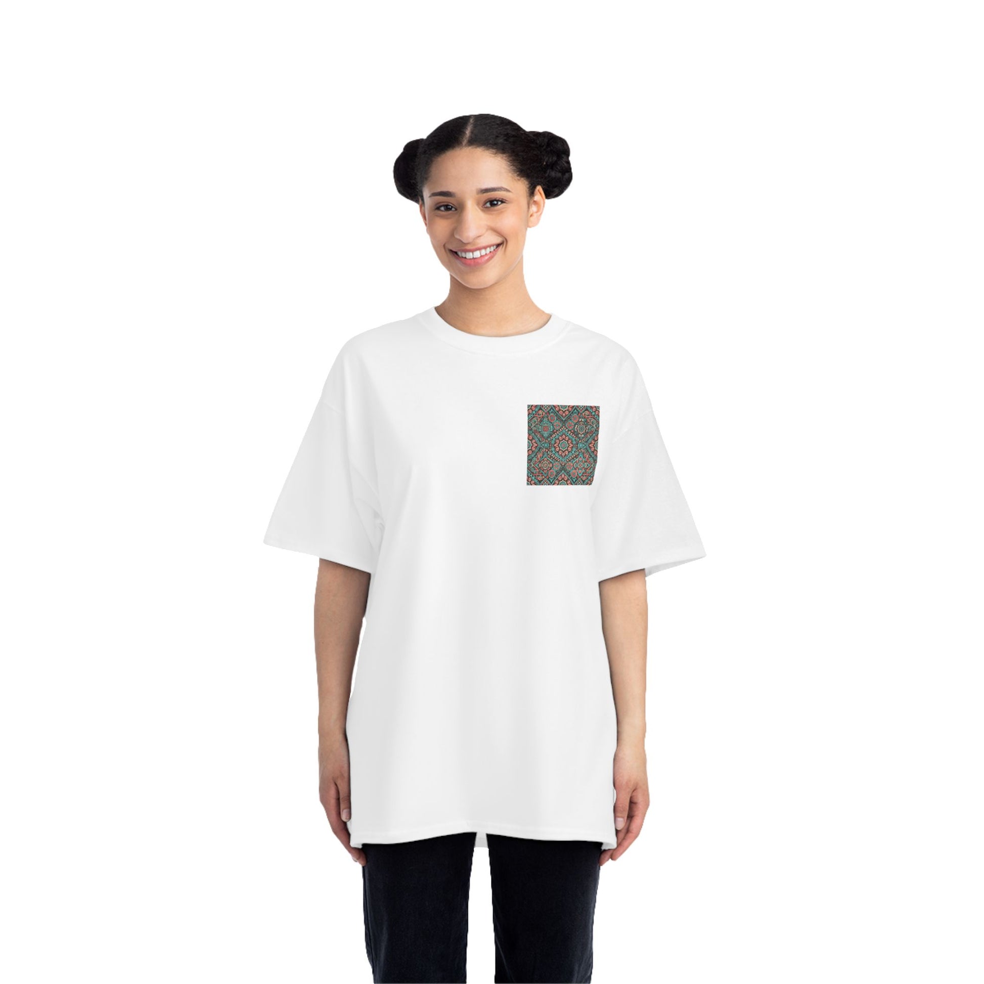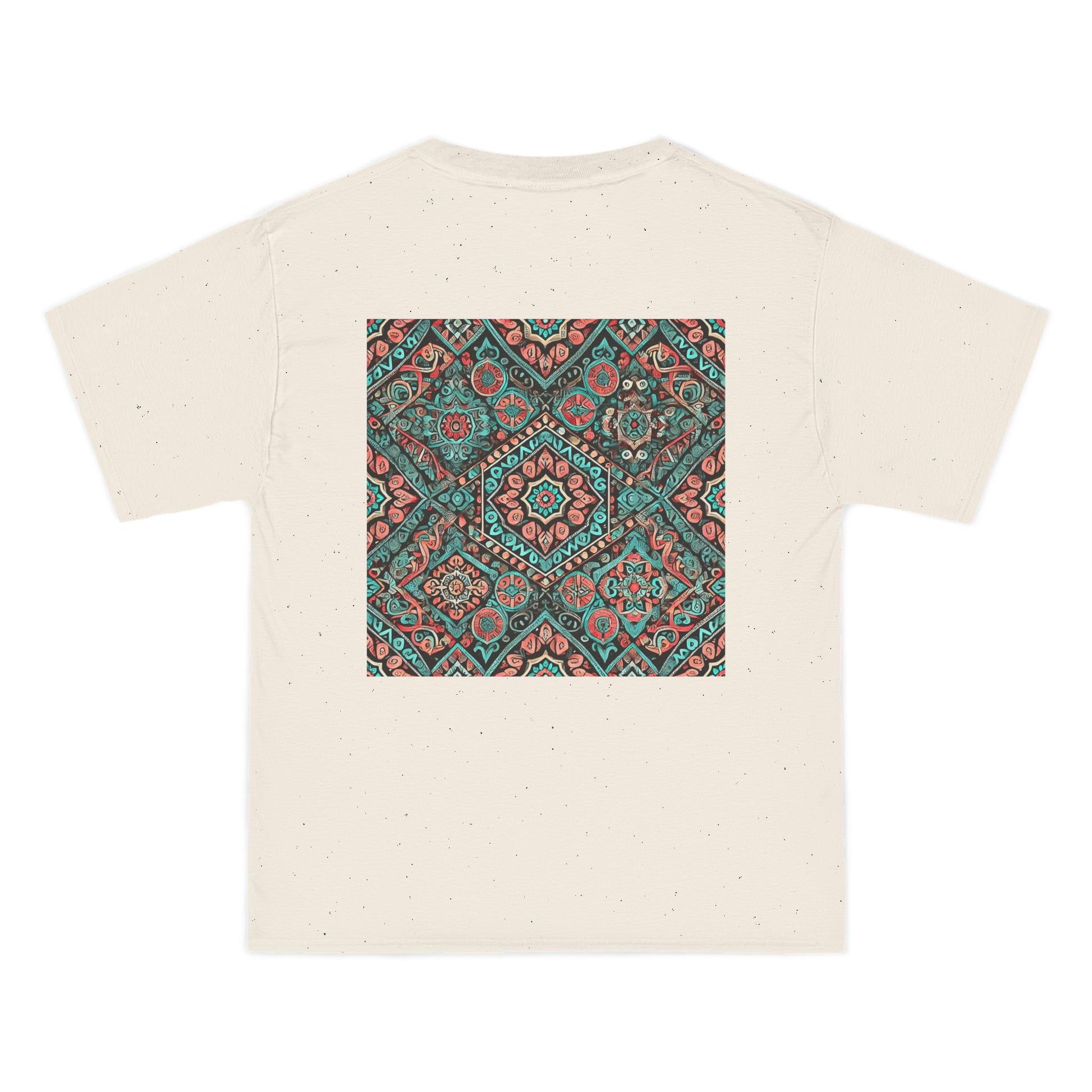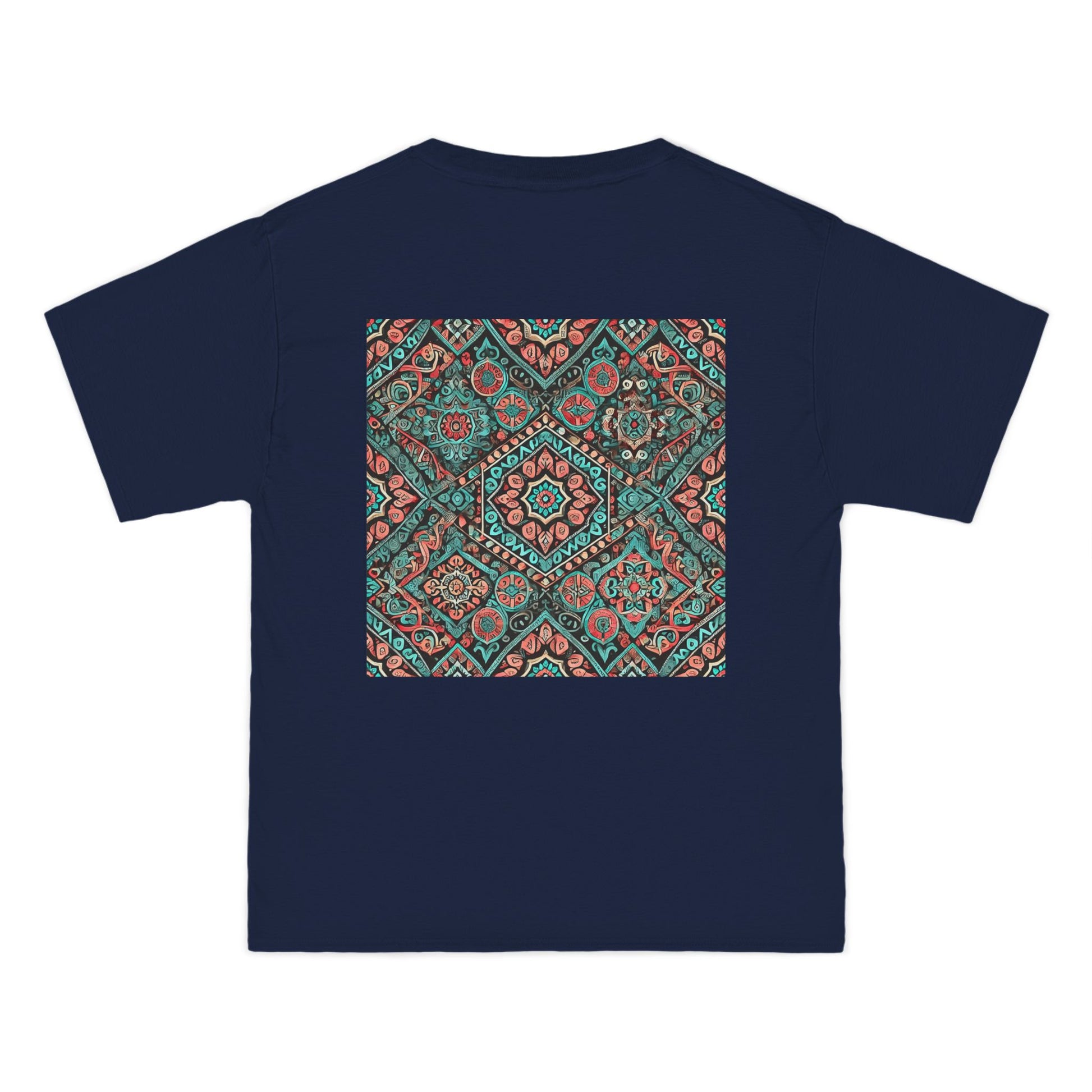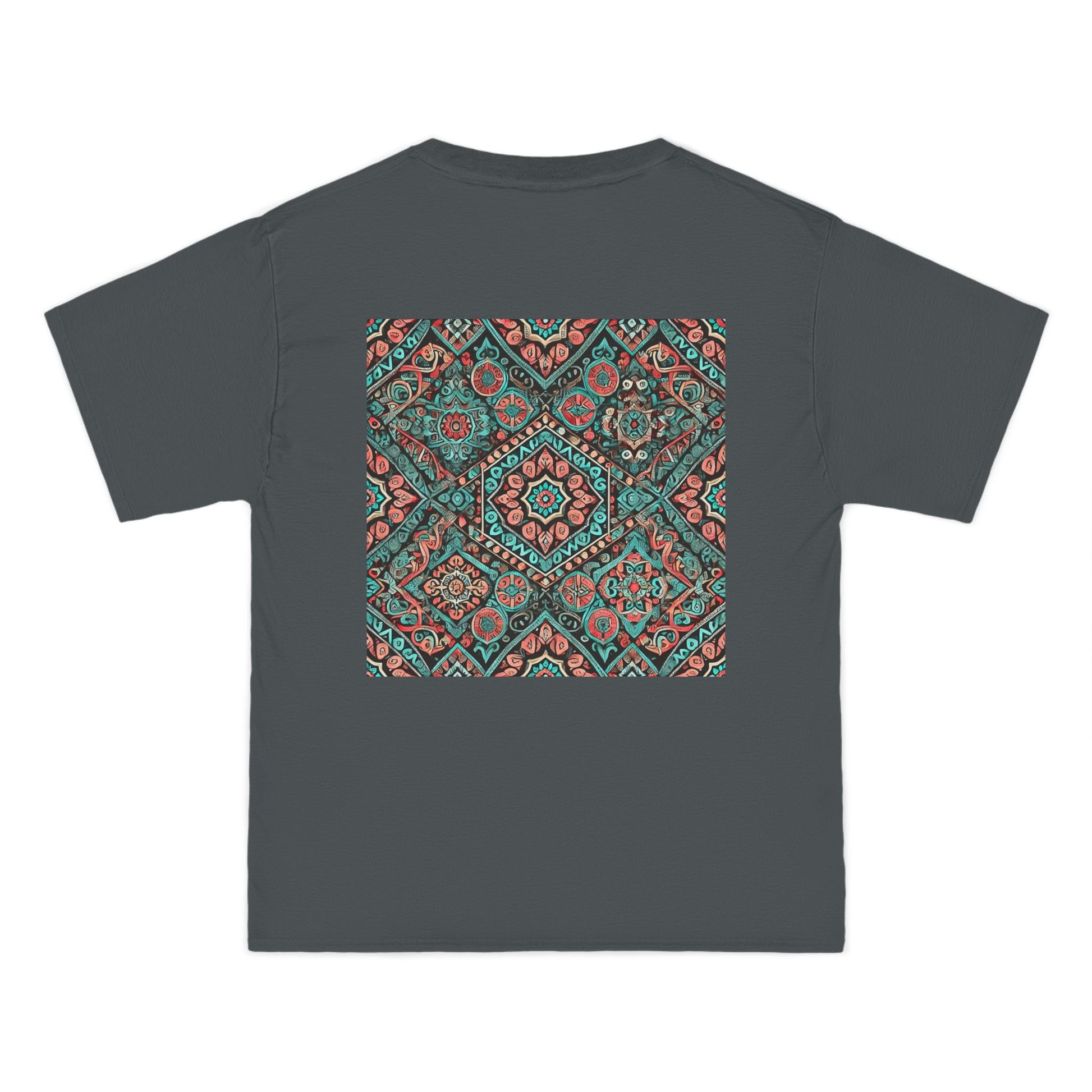 Unleash your creativity with our Patterned Background: Ethnic Boho Vibes. This visually stunning piece is more than just a garment; it's wearable art that lets you 'Wear Your World.' Filled with bold, vibrant patterns, this design embodies the free-spirited essence of bohemian style, offering a unique depth and texture that can only elevate your outfit.
