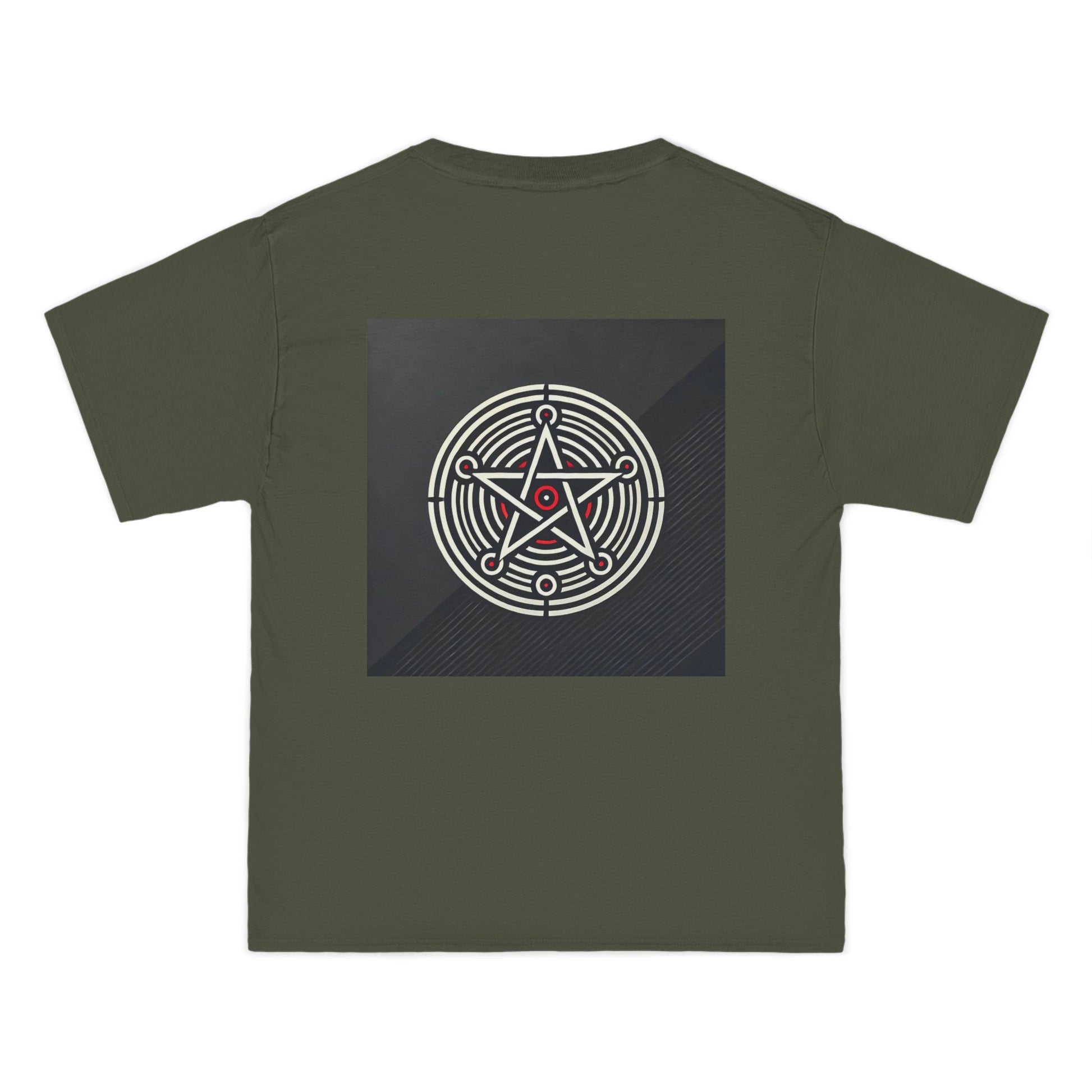 Embrace the night with our Pentagram: Gothic Streetwear, a perfect testament to the blend of creativity and fashion. This bold black and white Pentagram design with striking red accents, encased in intricate circular elements, is more than just a style statement. It's a wearable art piece, a canvas for you to express yourself and wear your world.