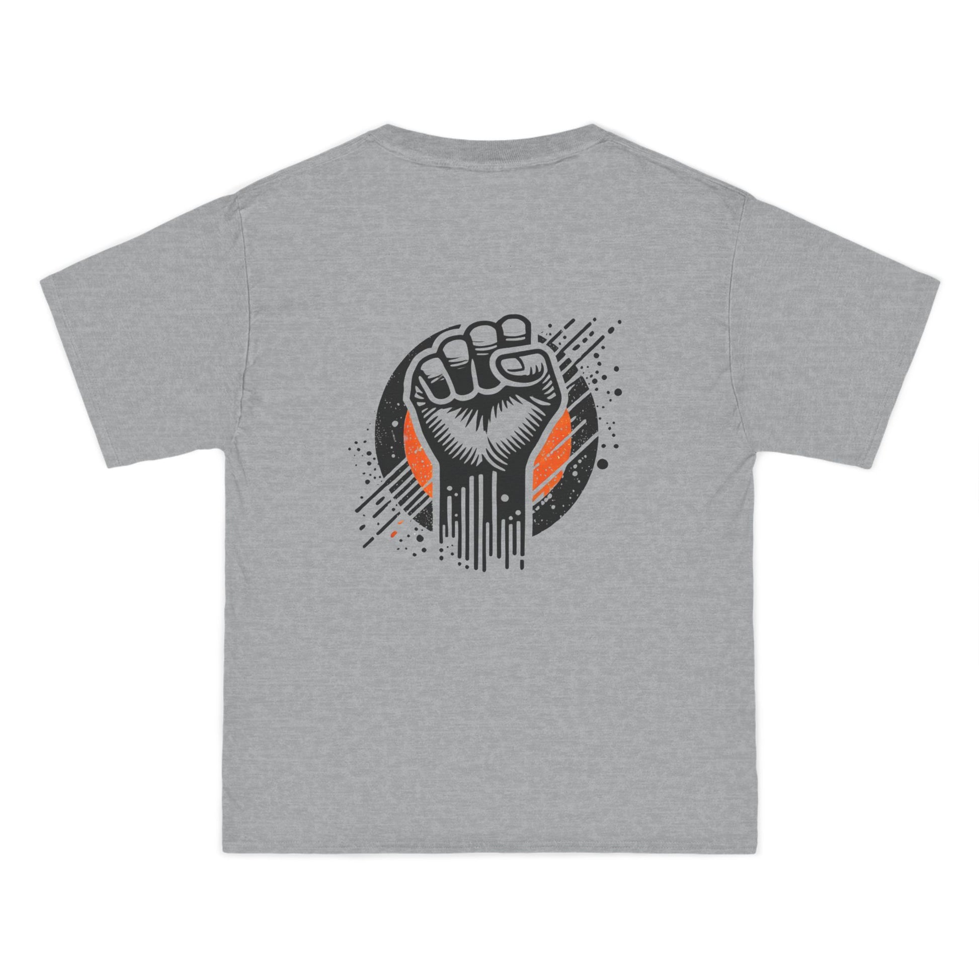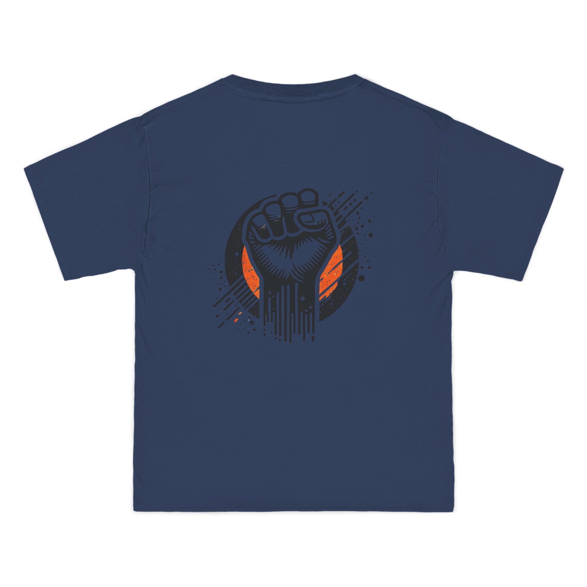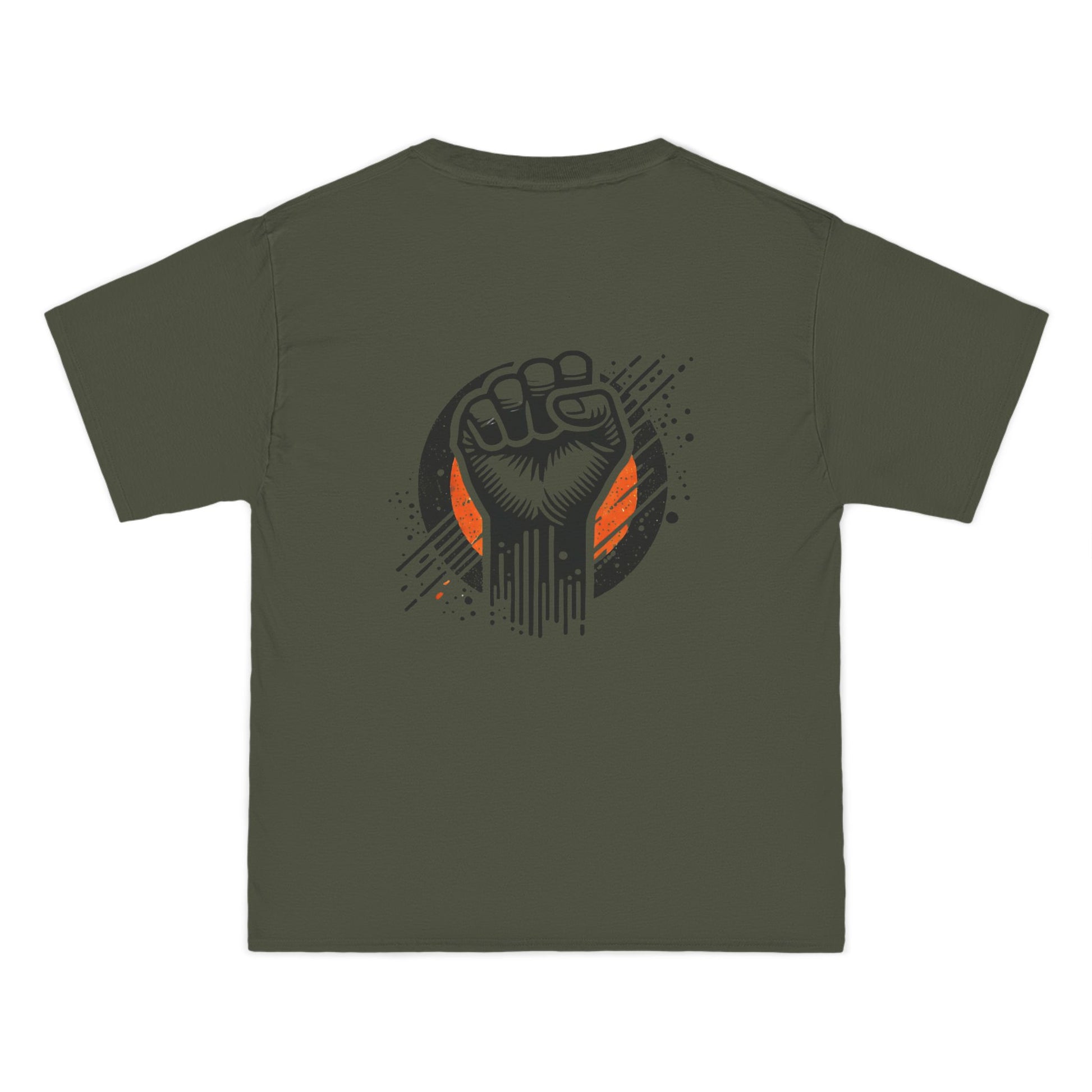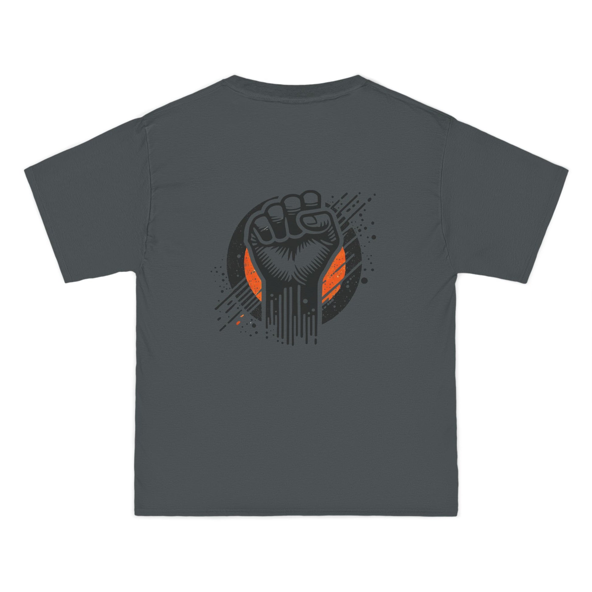 Crafted from the most comfortable cotton blends, this tee boasts of a raised fist outlined in bold black lines. The orange splatter finish adds a touch of rebellion, making it a perfect emblem of individuality. Thanks to our innovative AI technology, we've transformed this powerful idea into a wearable masterpiece.