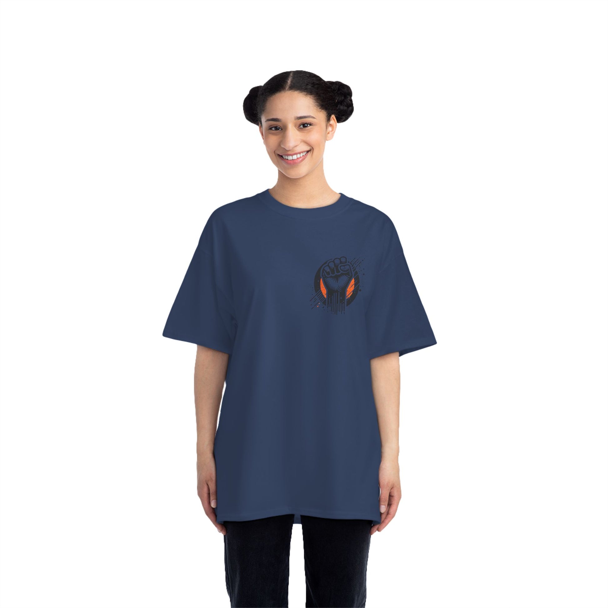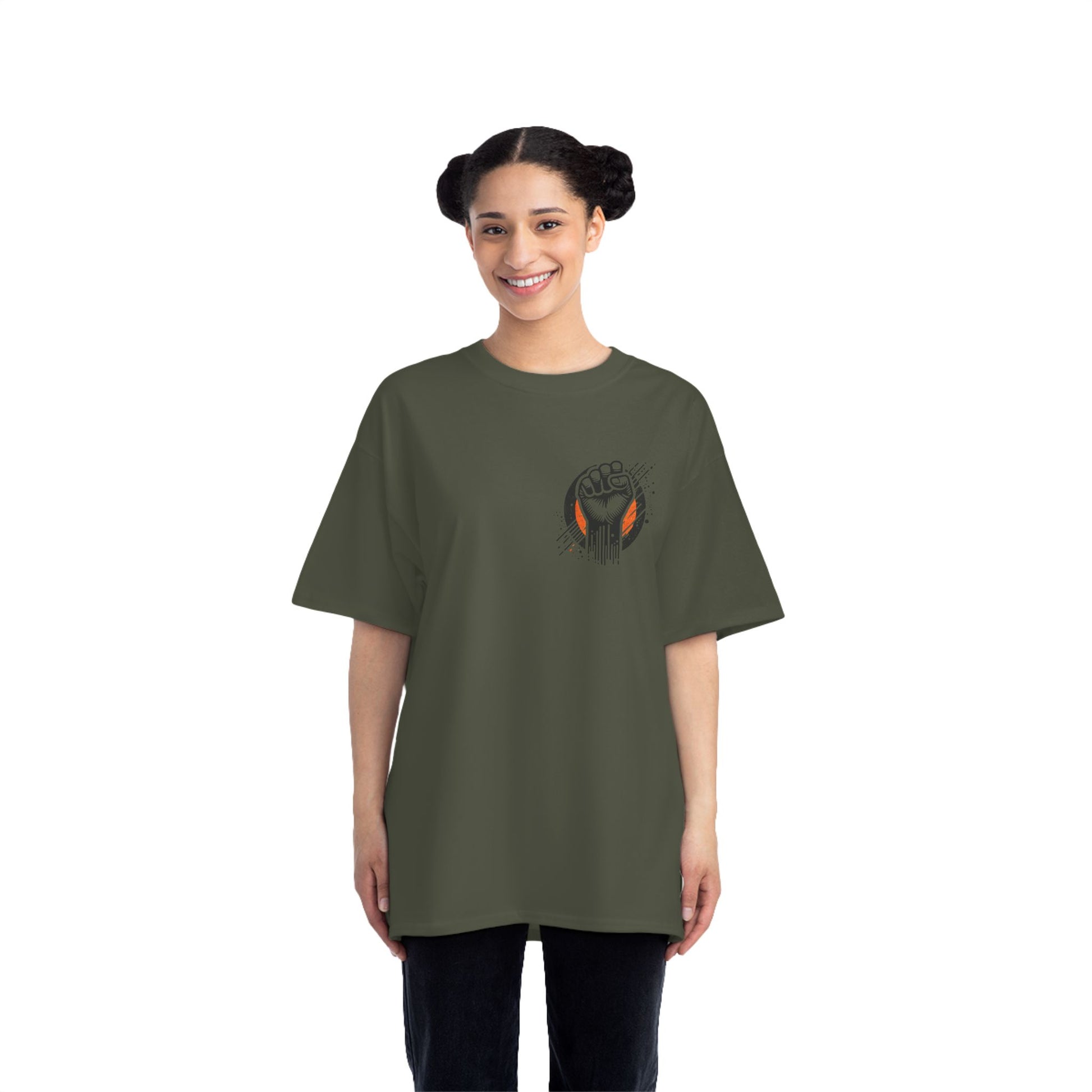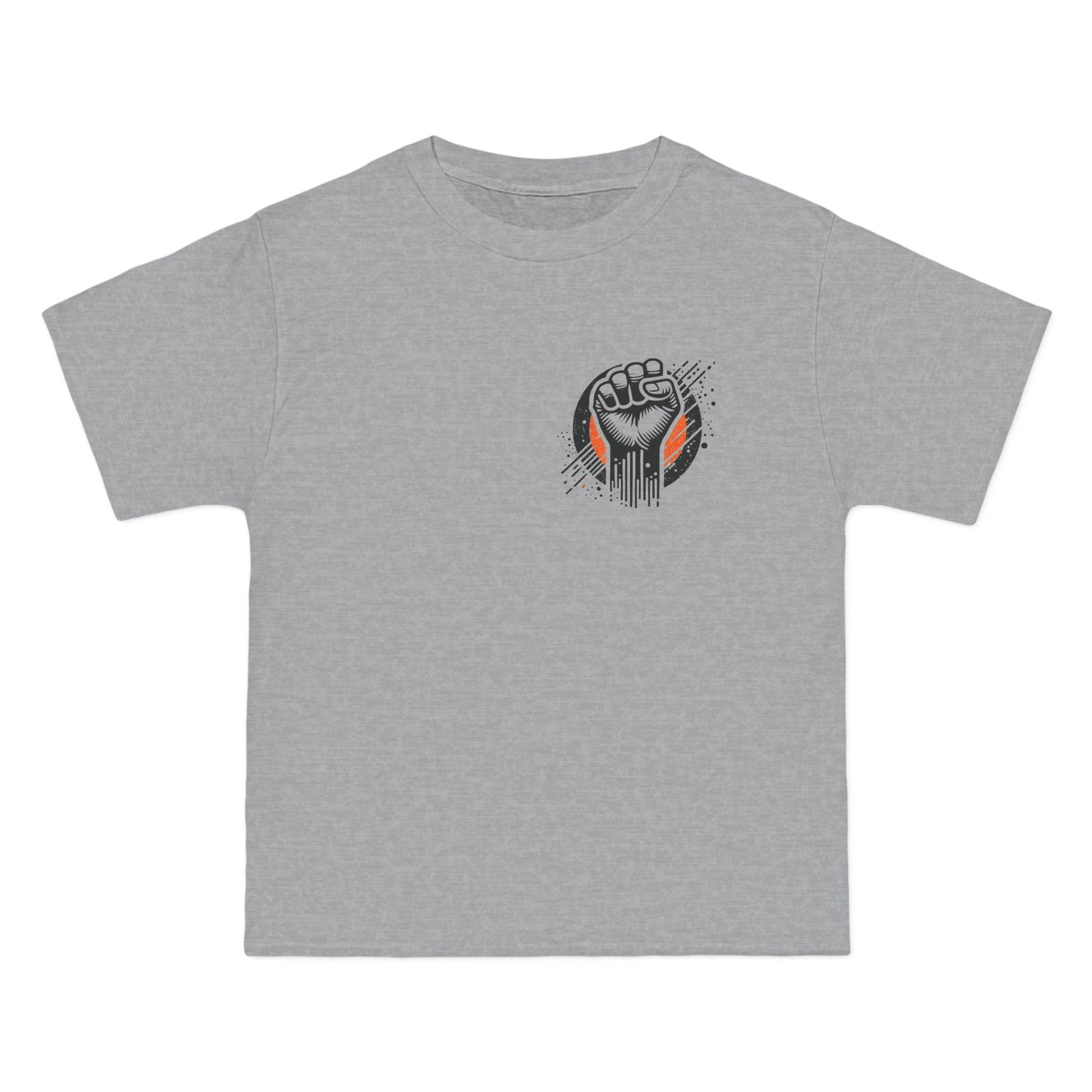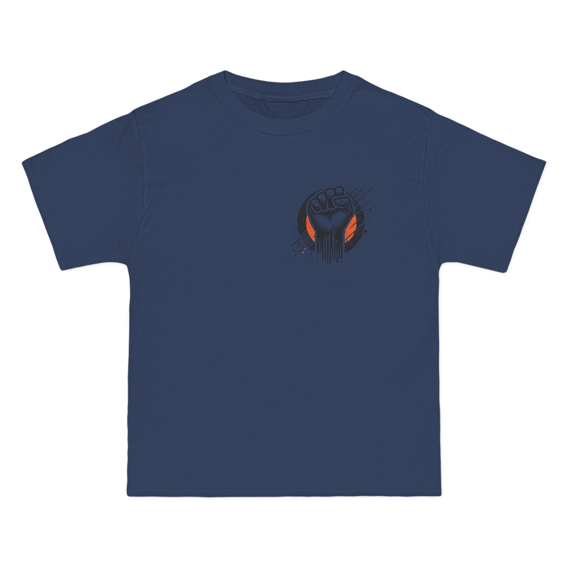 Crafted from the most comfortable cotton blends, this tee boasts of a raised fist outlined in bold black lines. The orange splatter finish adds a touch of rebellion, making it a perfect emblem of individuality. Thanks to our innovative AI technology, we've transformed this powerful idea into a wearable masterpiece.