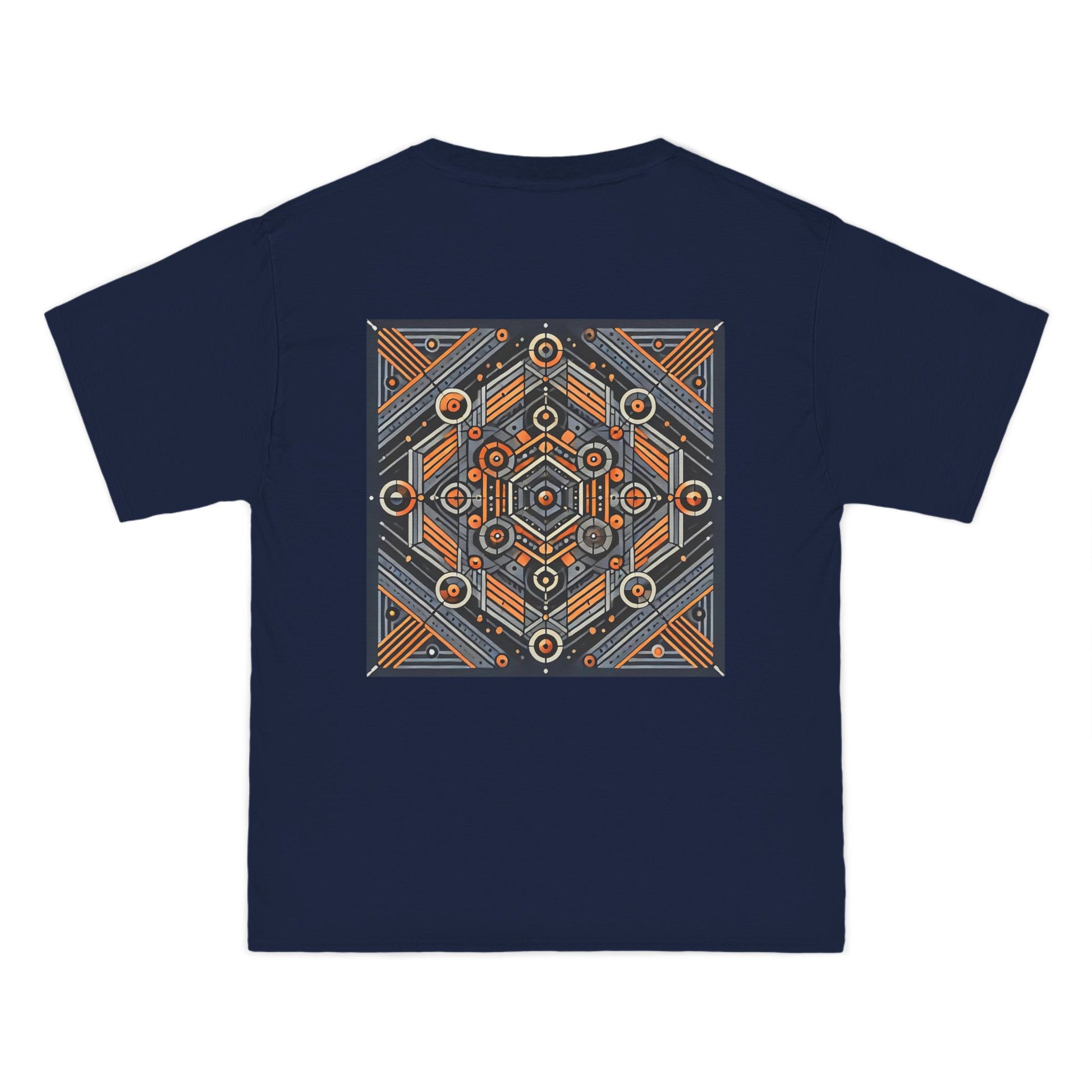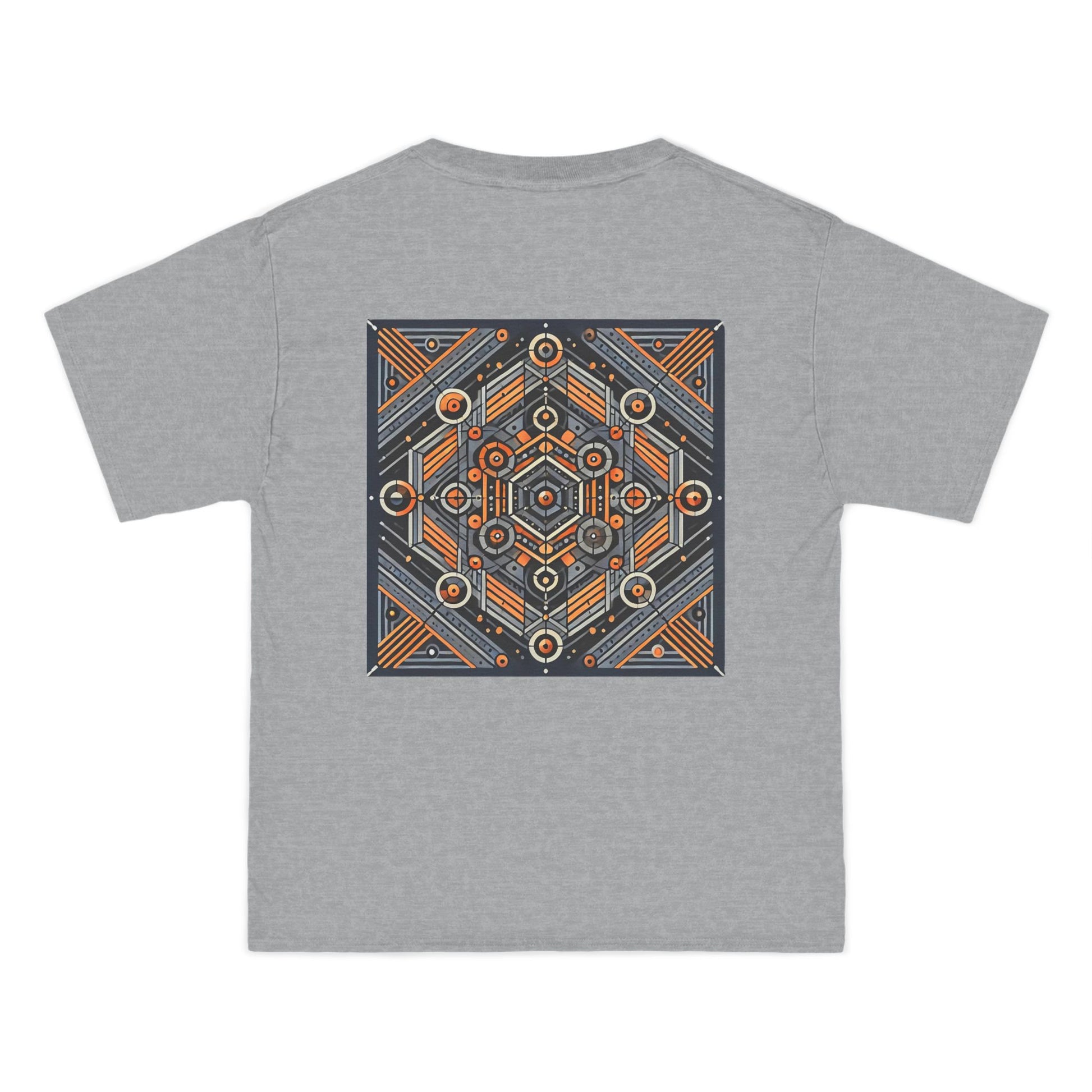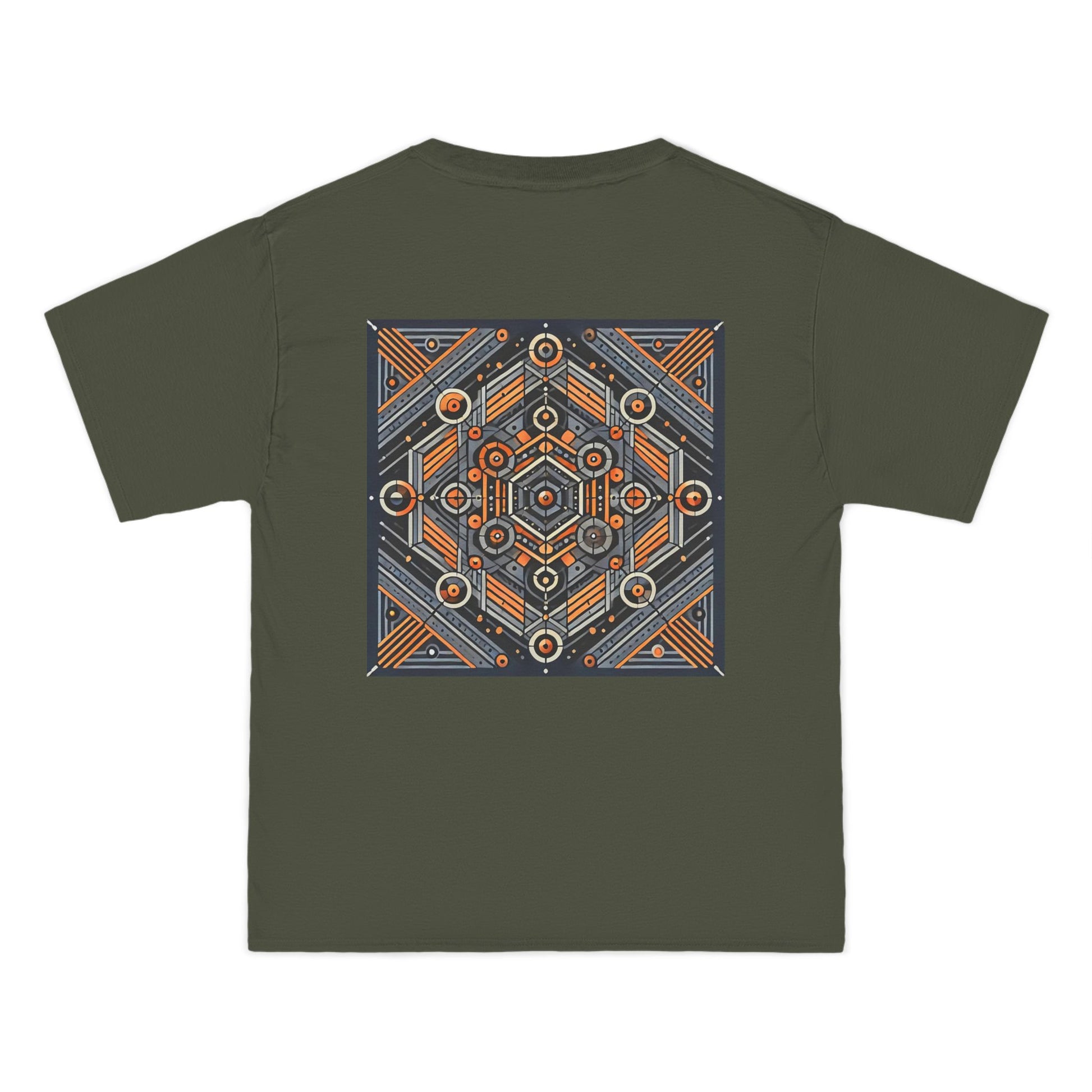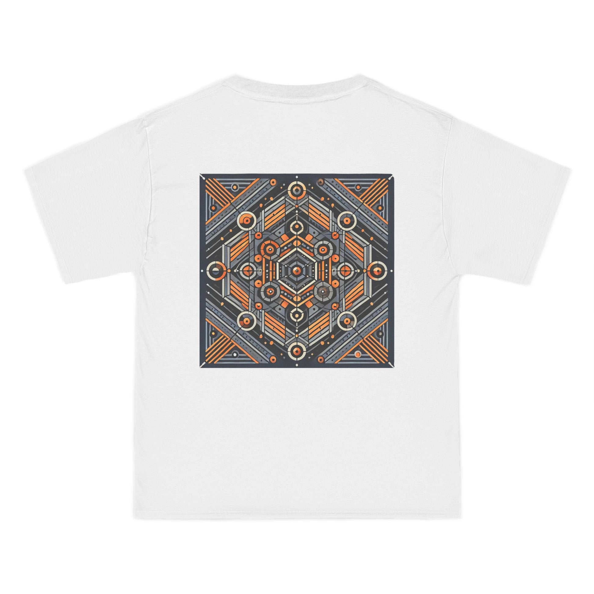 The complex geometric patterns, drawn from sacred geometry and arranged symmetrically, are a testament to the power of AI in transforming ideas into wearable art. This tee is more than just clothing – it's a canvas for your individuality.