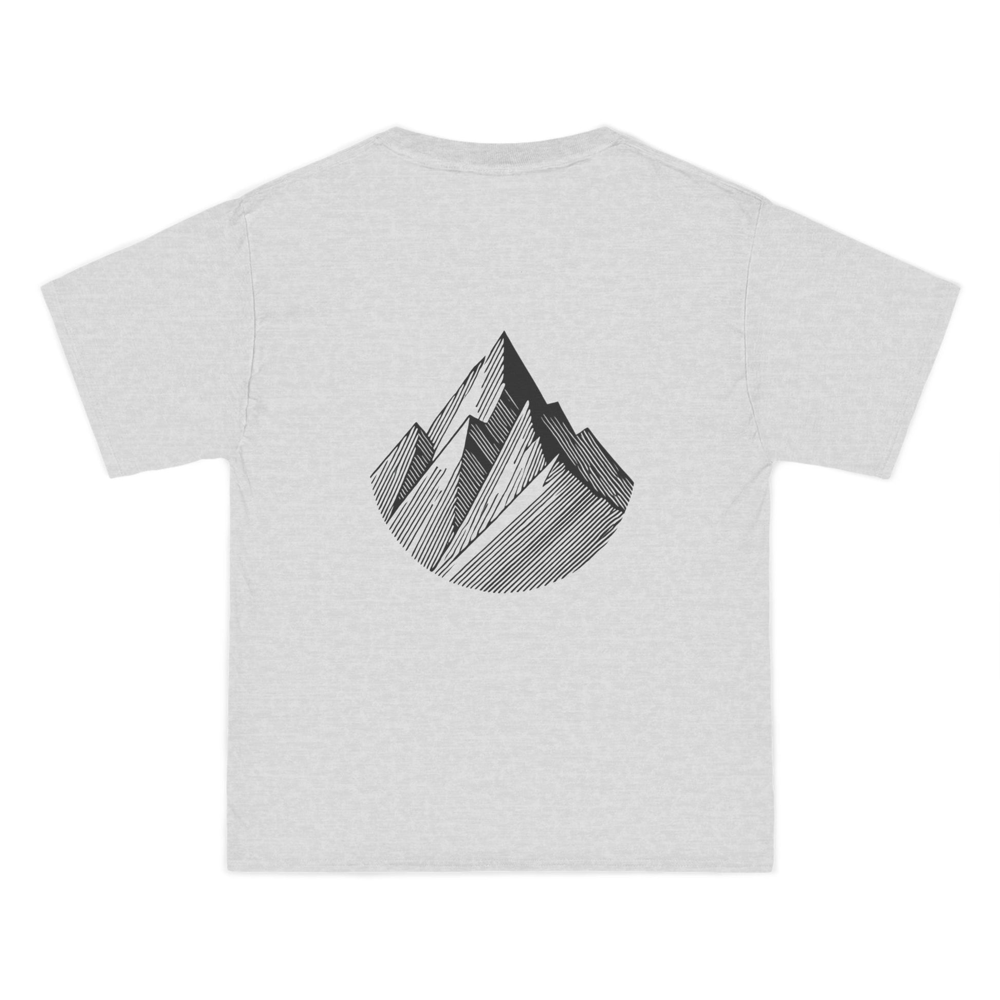 Crafted from the finest quality cotton blends, this tee features a single peak drawn with sharp, angular lines, a minimalist masterpiece surrounded by the vast blank space. The solid colors are 100% cotton, ensuring the ultimate comfort, while the Light Steel and Charcoal Heather blends incorporate polyester for extra durability.