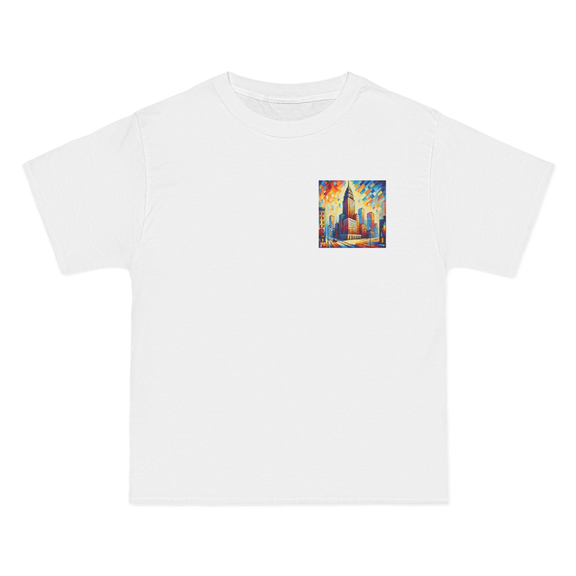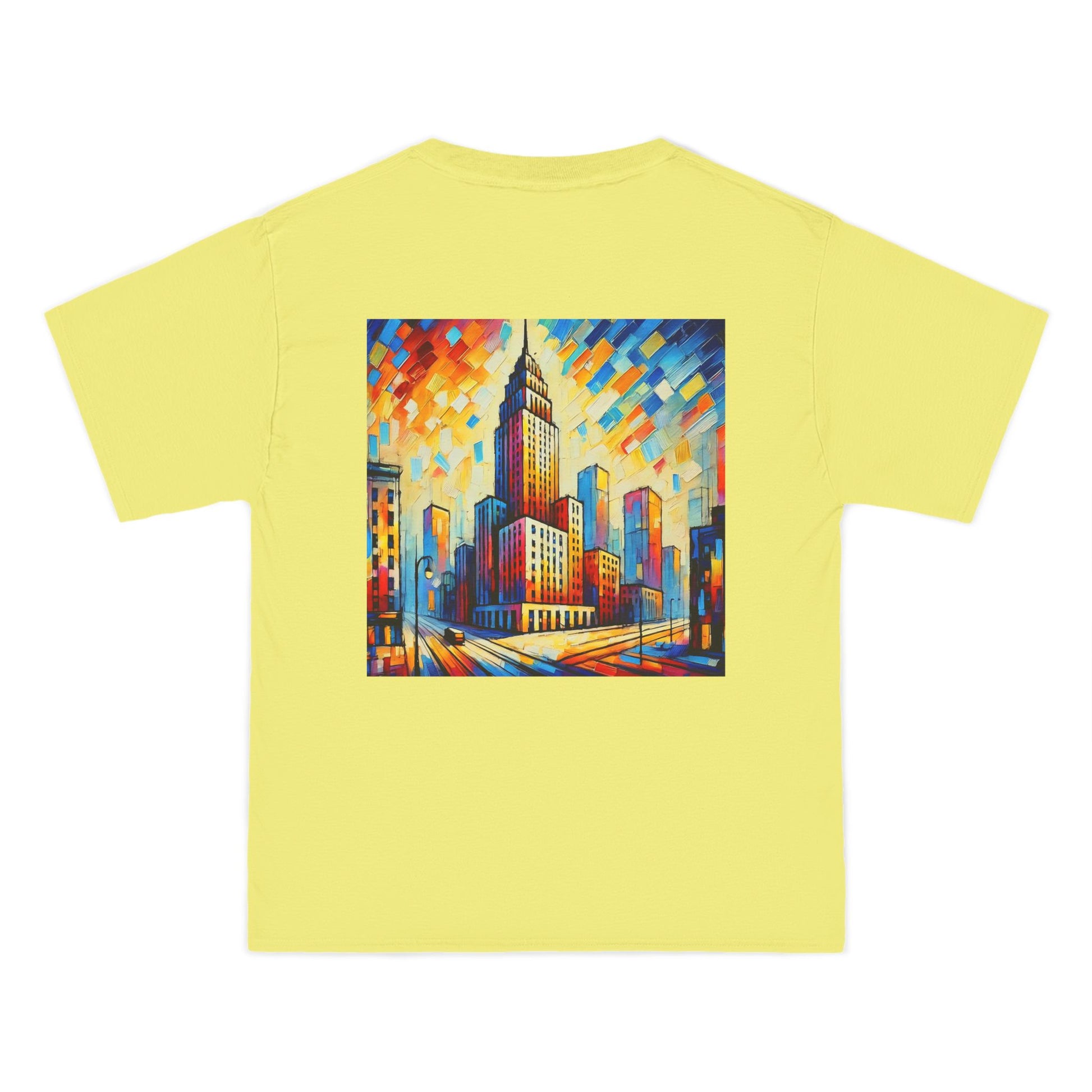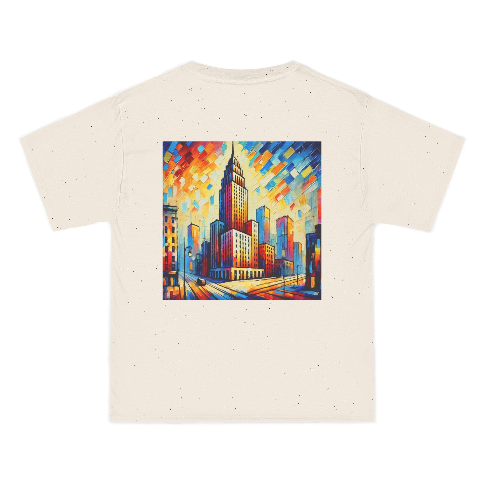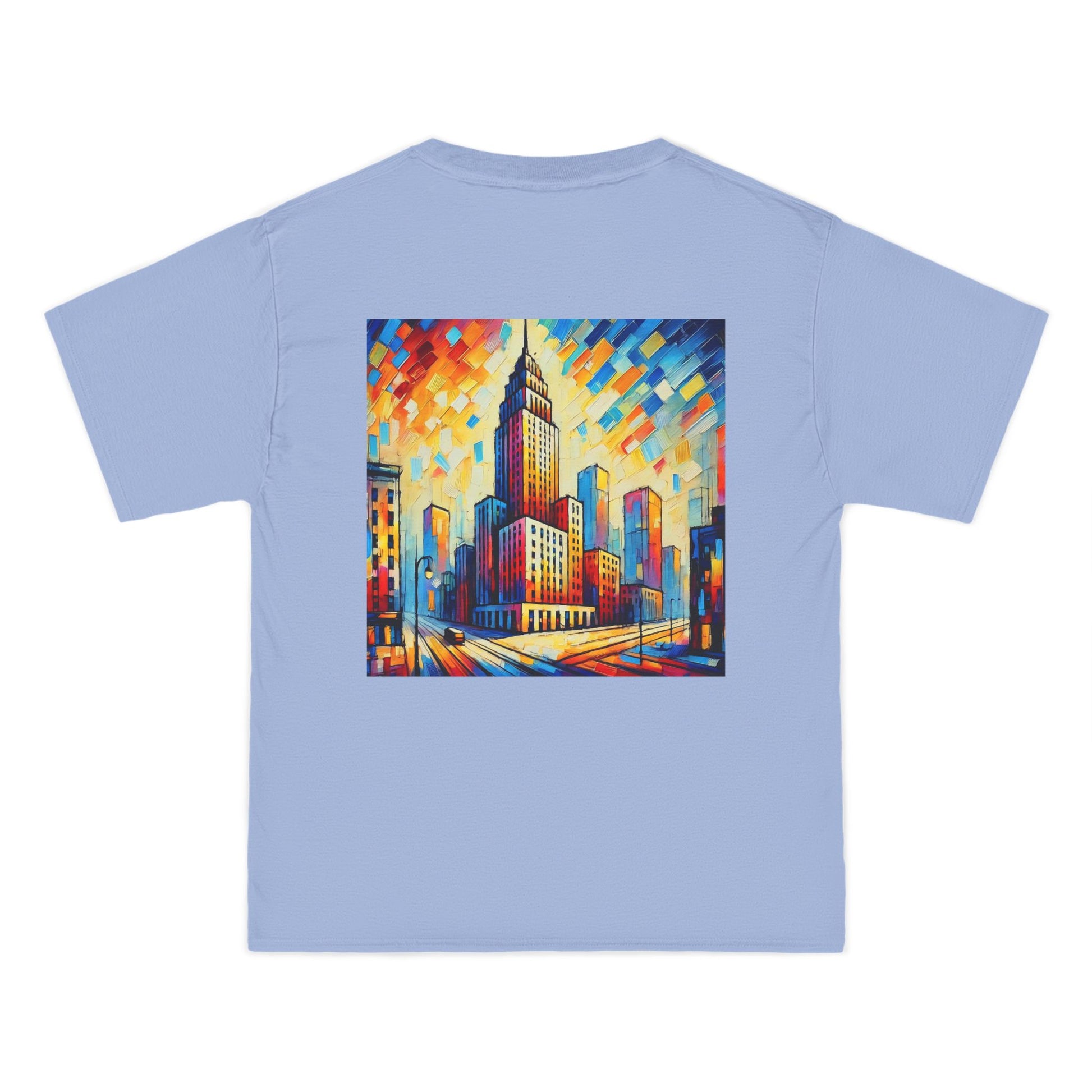 The design? A vibrant, AI-generated painting of a cityscape skyscraper, alive with abstract details and bursting with color. Reminiscent of a world seen through the lens of Fauvism, this shirt is all about expressing your unique perspective. It's more than just a skyline - it's a canvas where the concrete jungle meets the abstract wilderness.