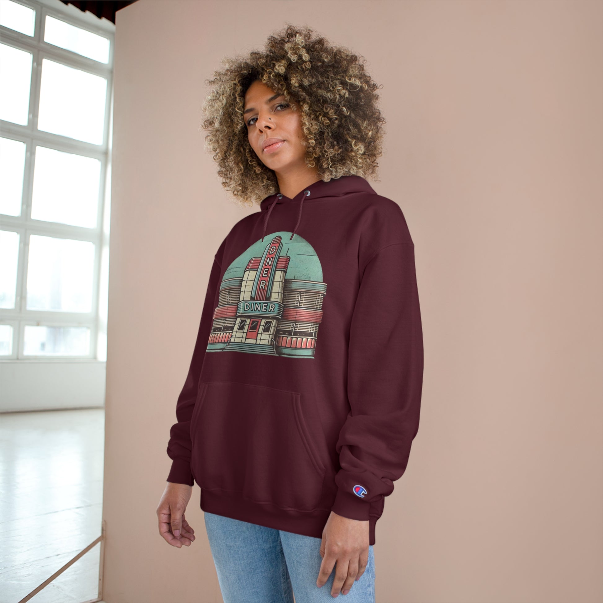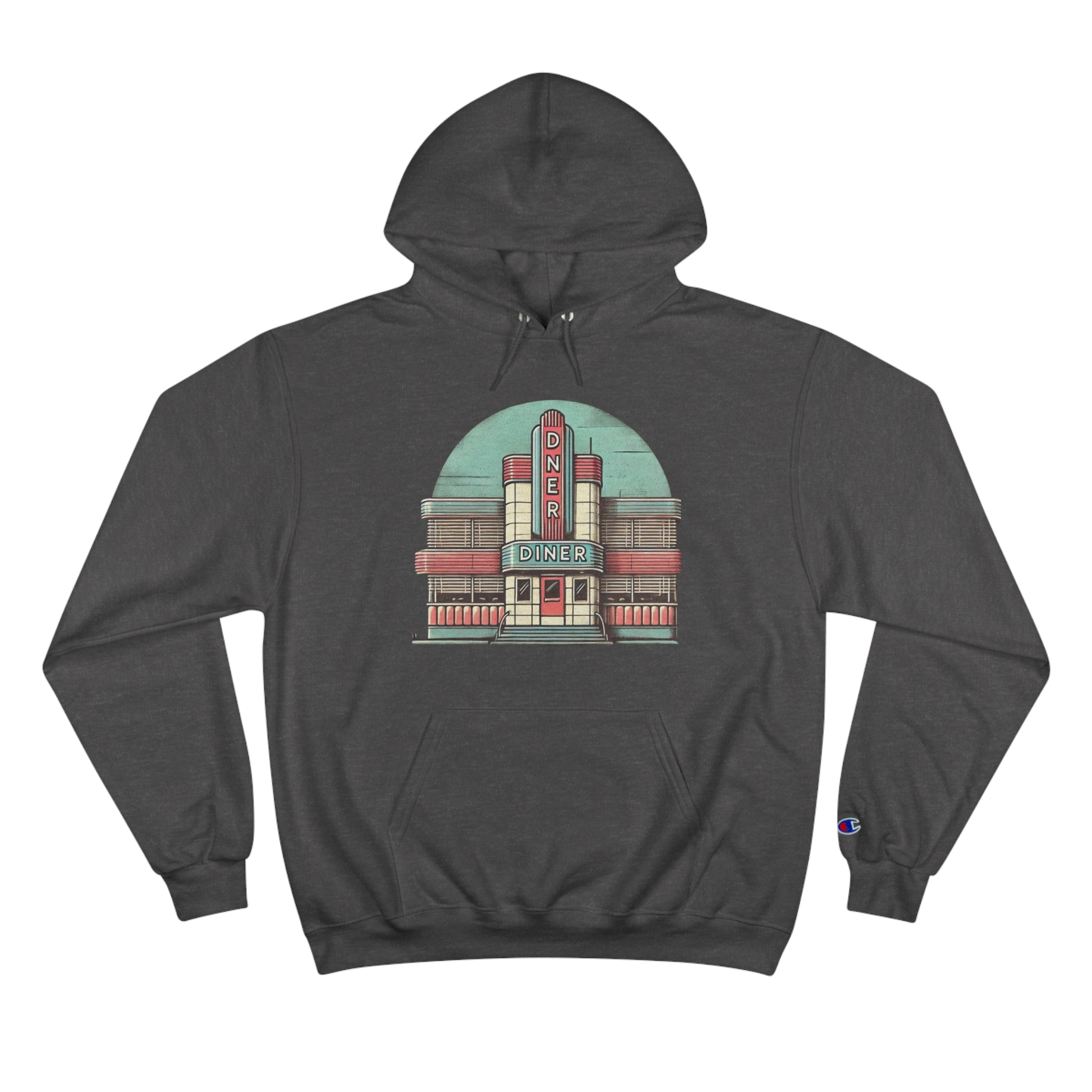 Crafted from a comfortable blend of 50% cotton and 50% polyester, this hoodie is a lesson in eco-conscious fashion, made with up to 5% recycled plastic bottles. It's a cozy throwback with a medium heavy fabric that keeps you warm and fuzzy, just like those diner memories.