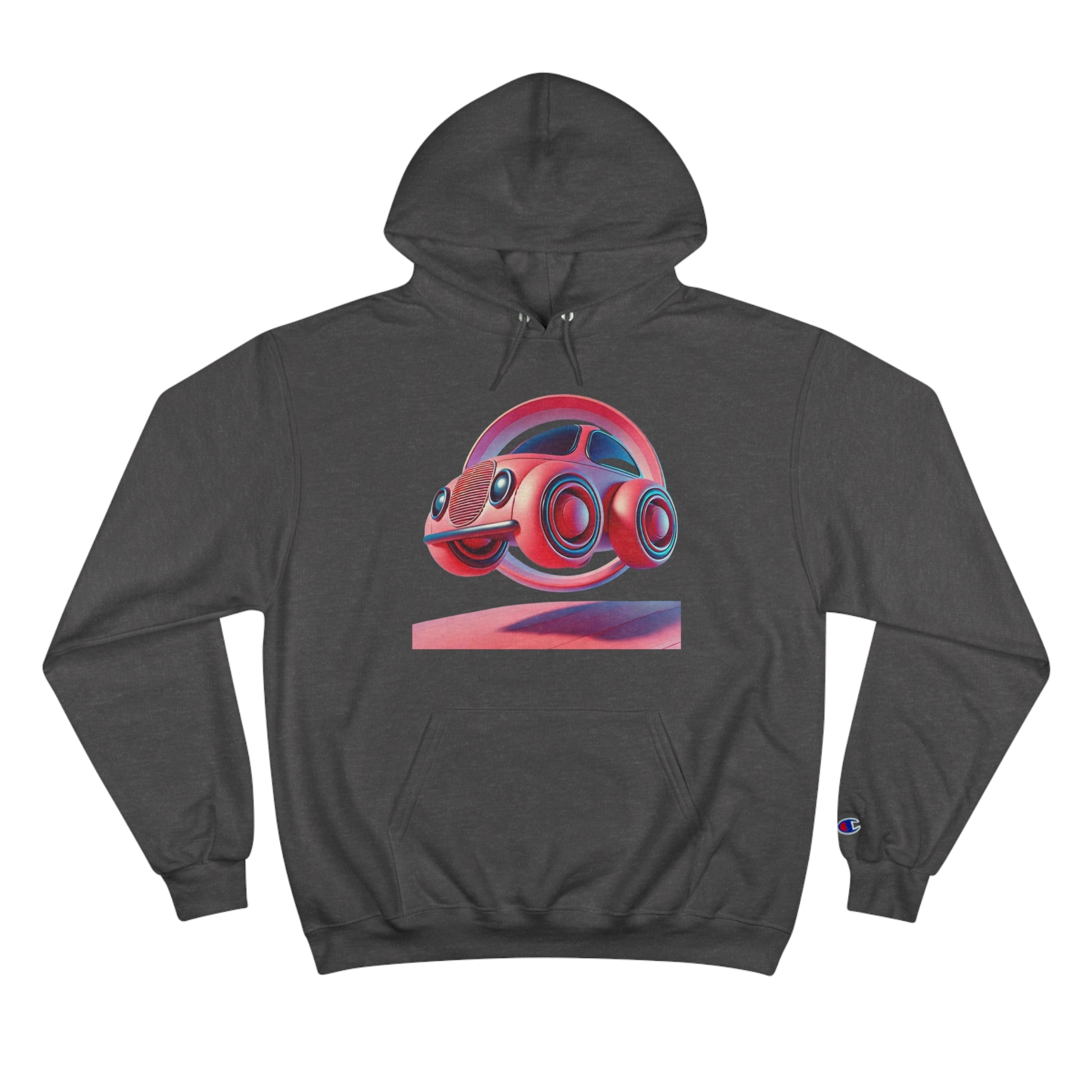 Dive into a world of fantastical fashion with our Stylized Car: Surreal Minimalism hoodie. This eye-catching piece, featuring a wildly whimsical car floating above a vivid blue background, is your ticket to a realm where reality bends and creativity flourishes.