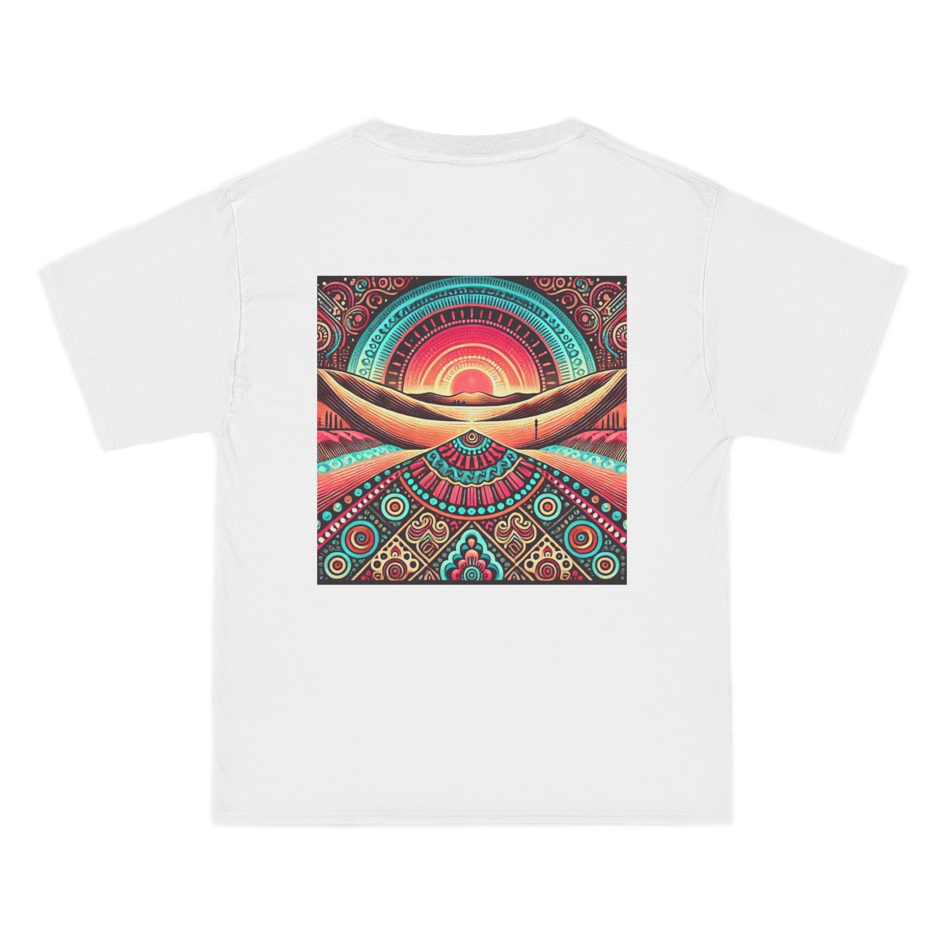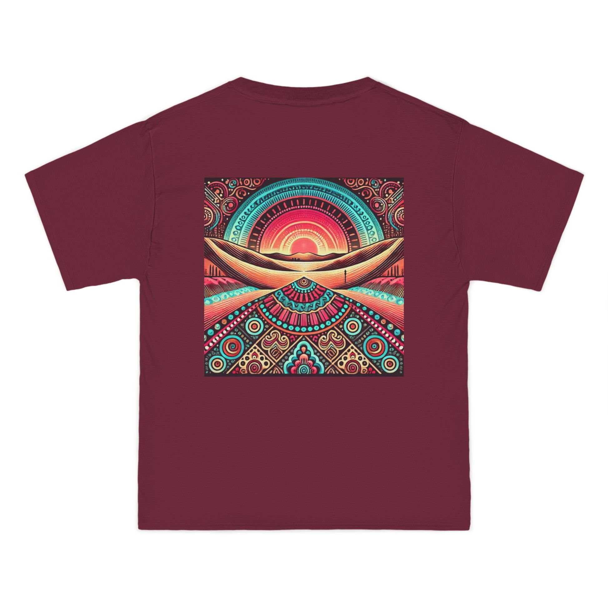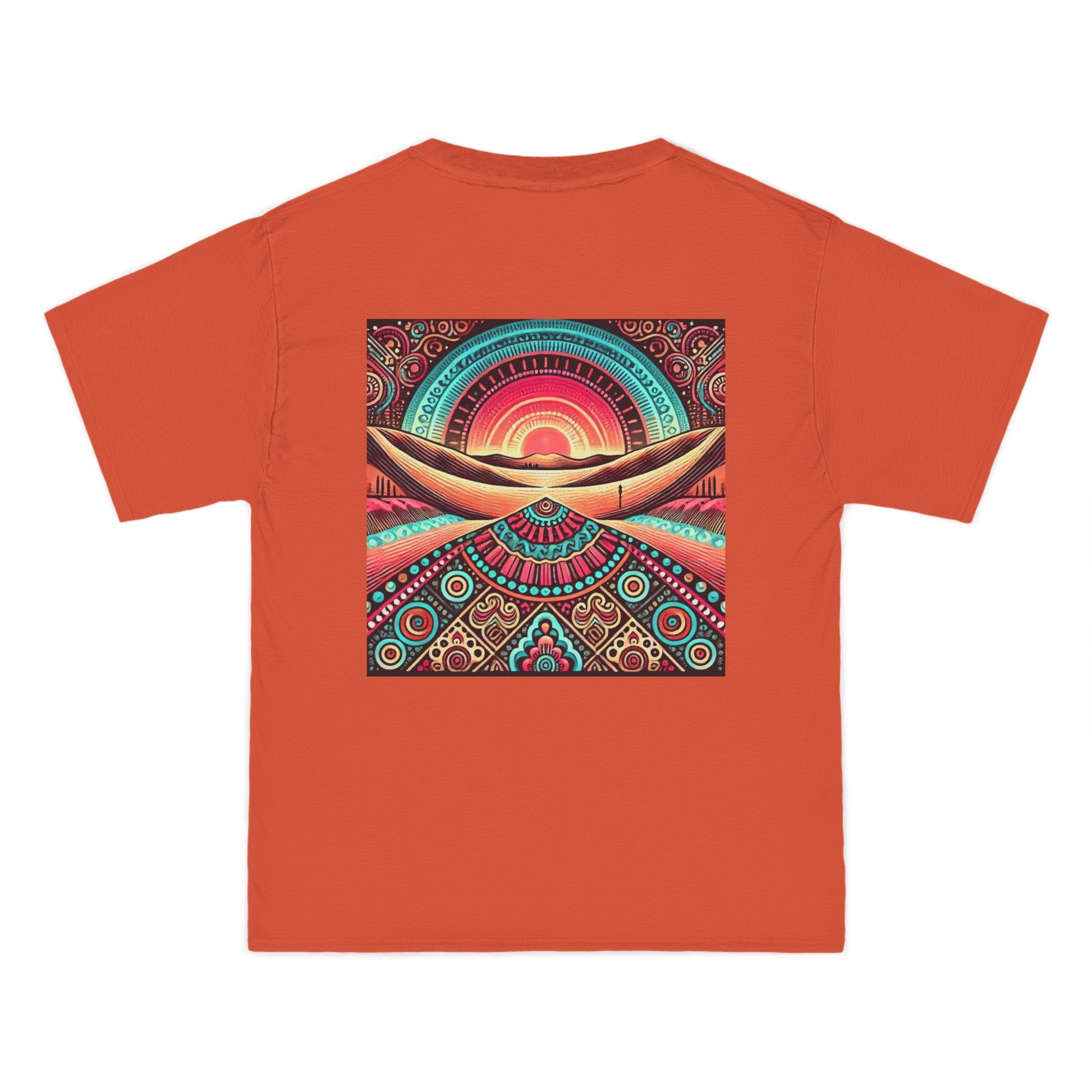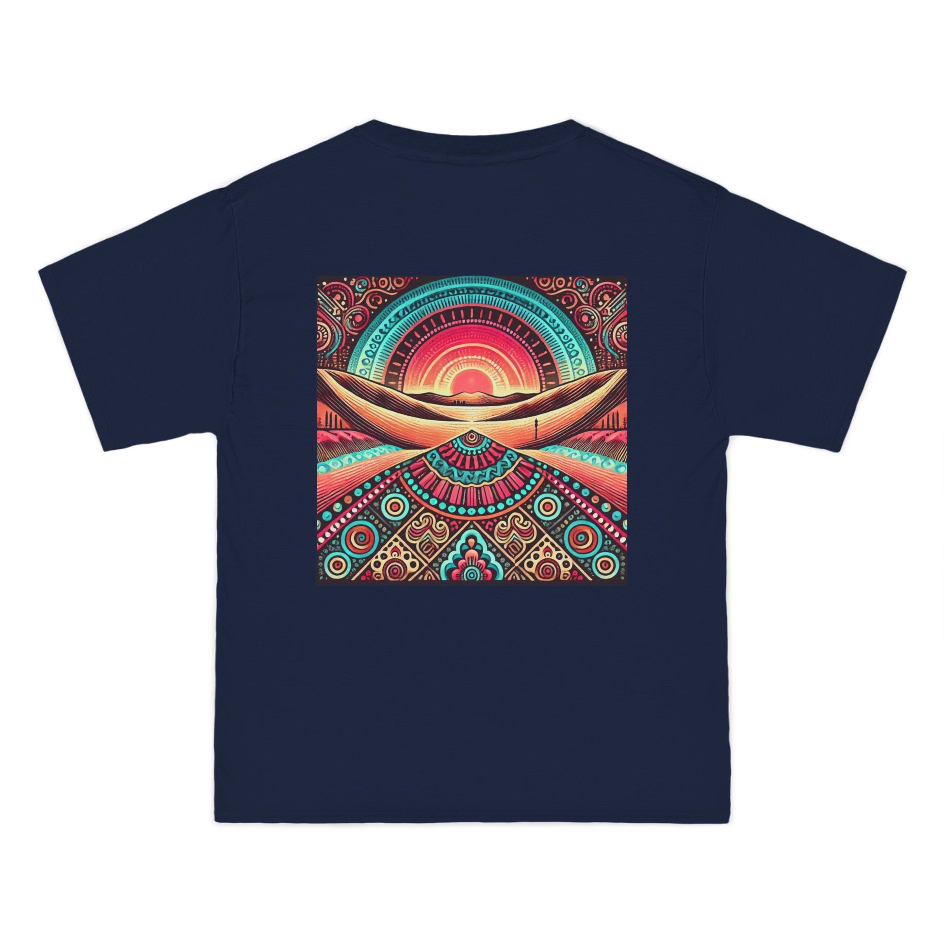 Embrace your inner wanderer with our Stylized Desert Landscape tee, radiating Ethnic Boho Vibes. This unique tee is your wearable canvas, featuring a captivating desert landscape that blends natural beauty with intricate patterns. It's more than just a tee, it's a statement; a bold declaration of your individuality and love for the enchanting bohemian style.