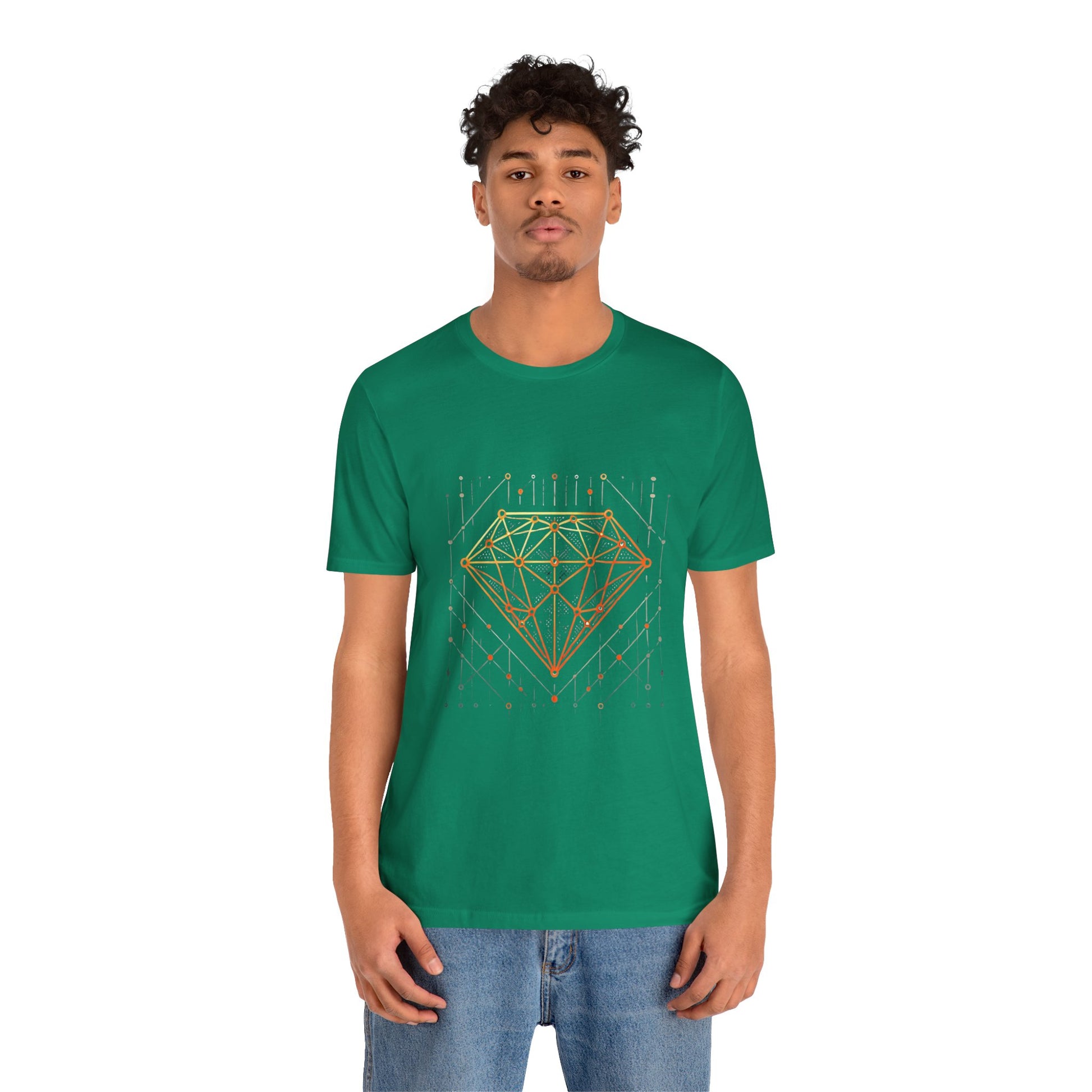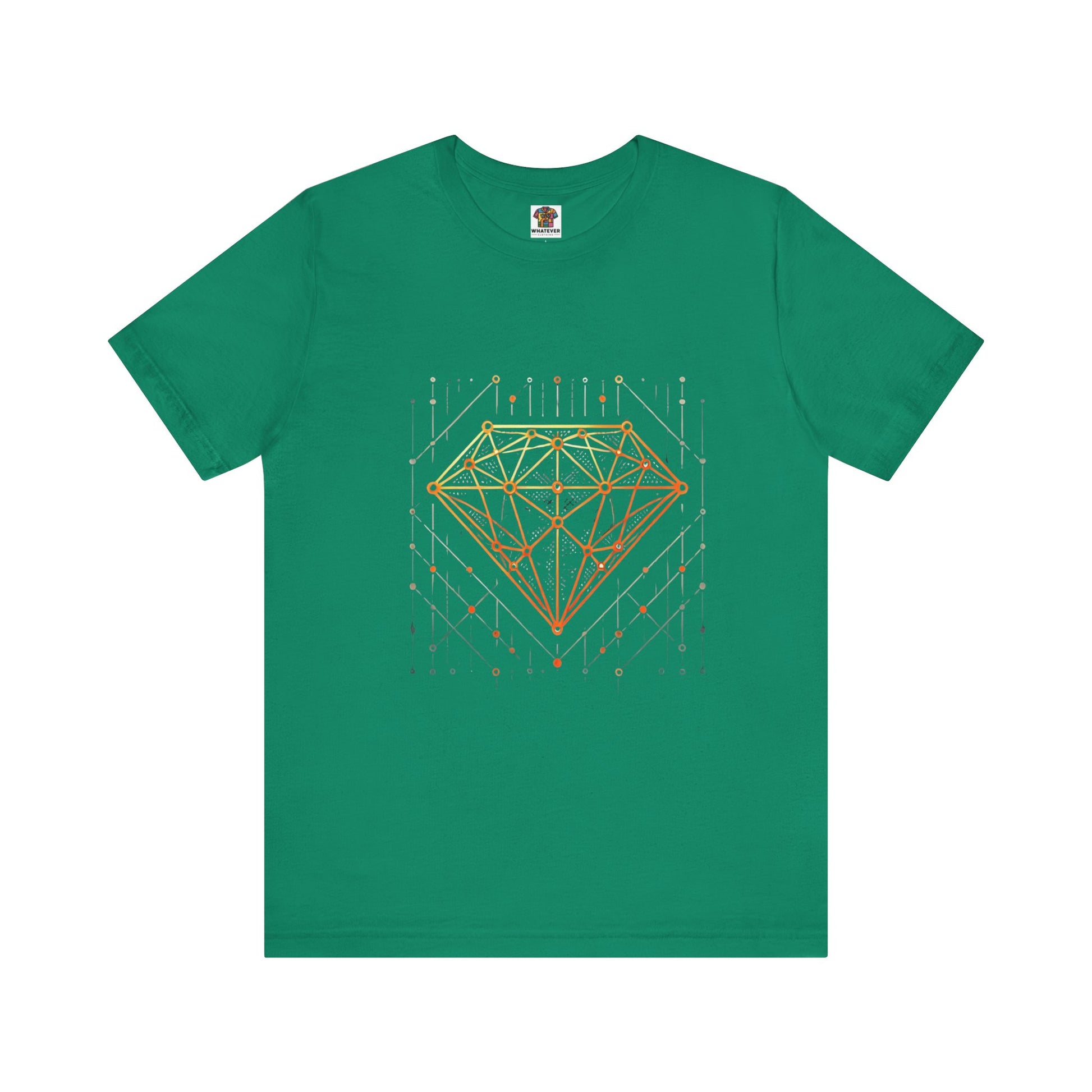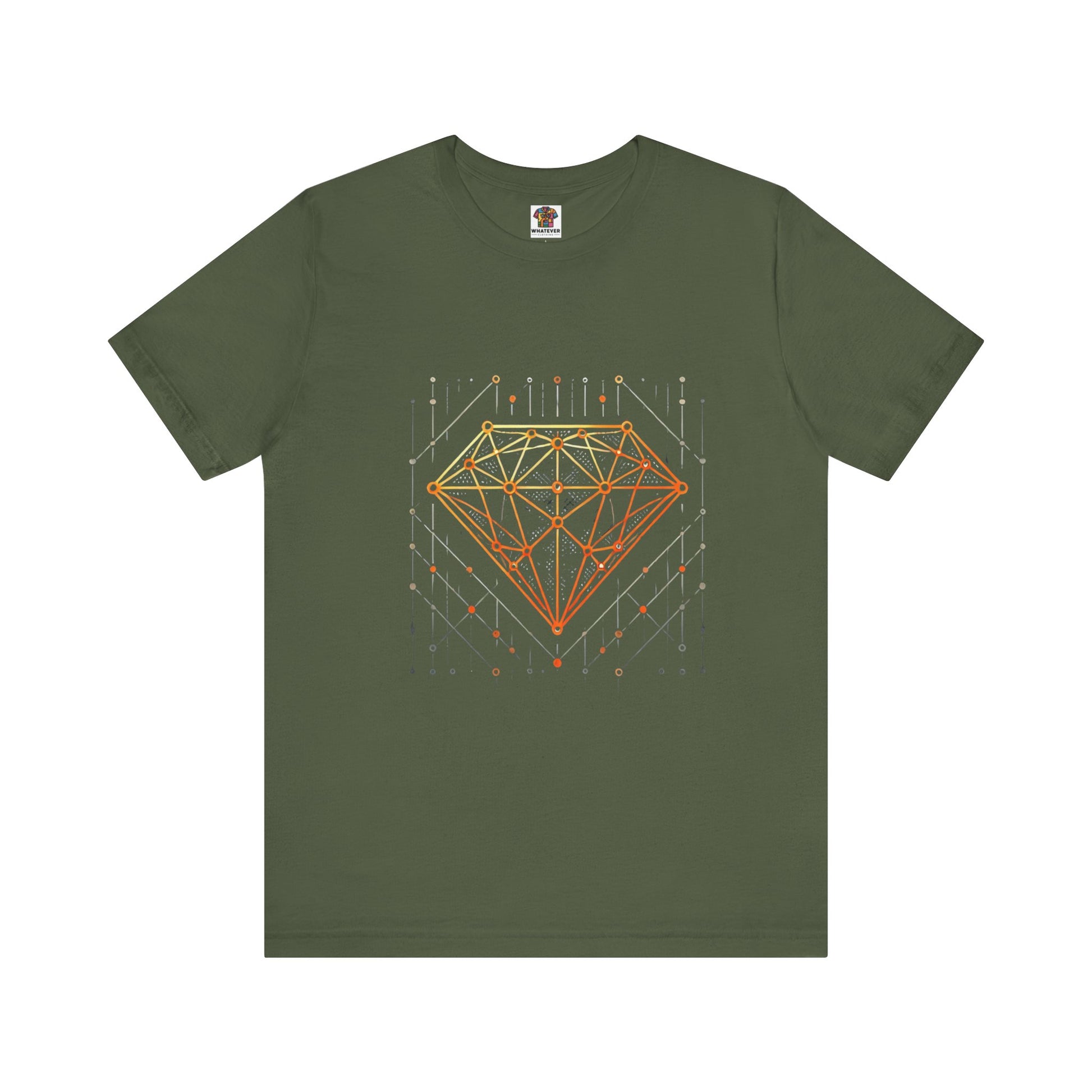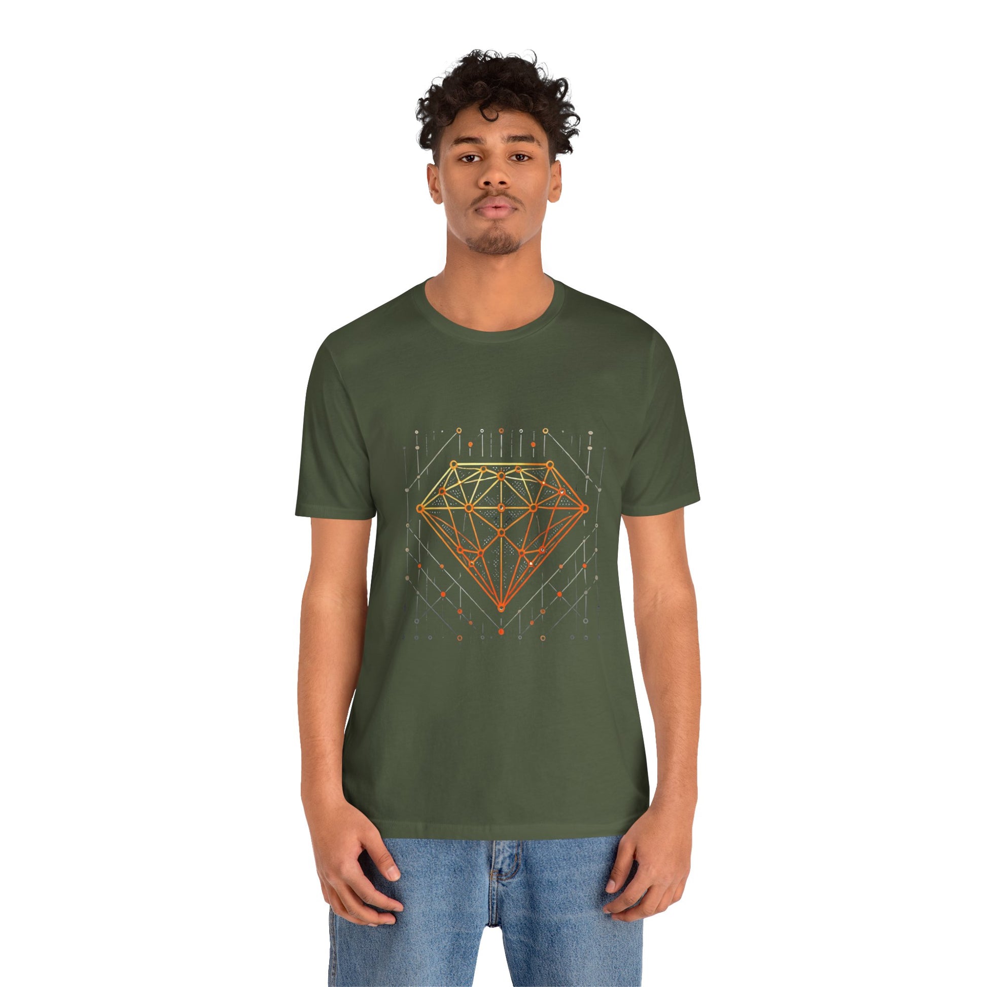 A diamond shape made of interconnected facets and lines, glowing with bold orange accents.