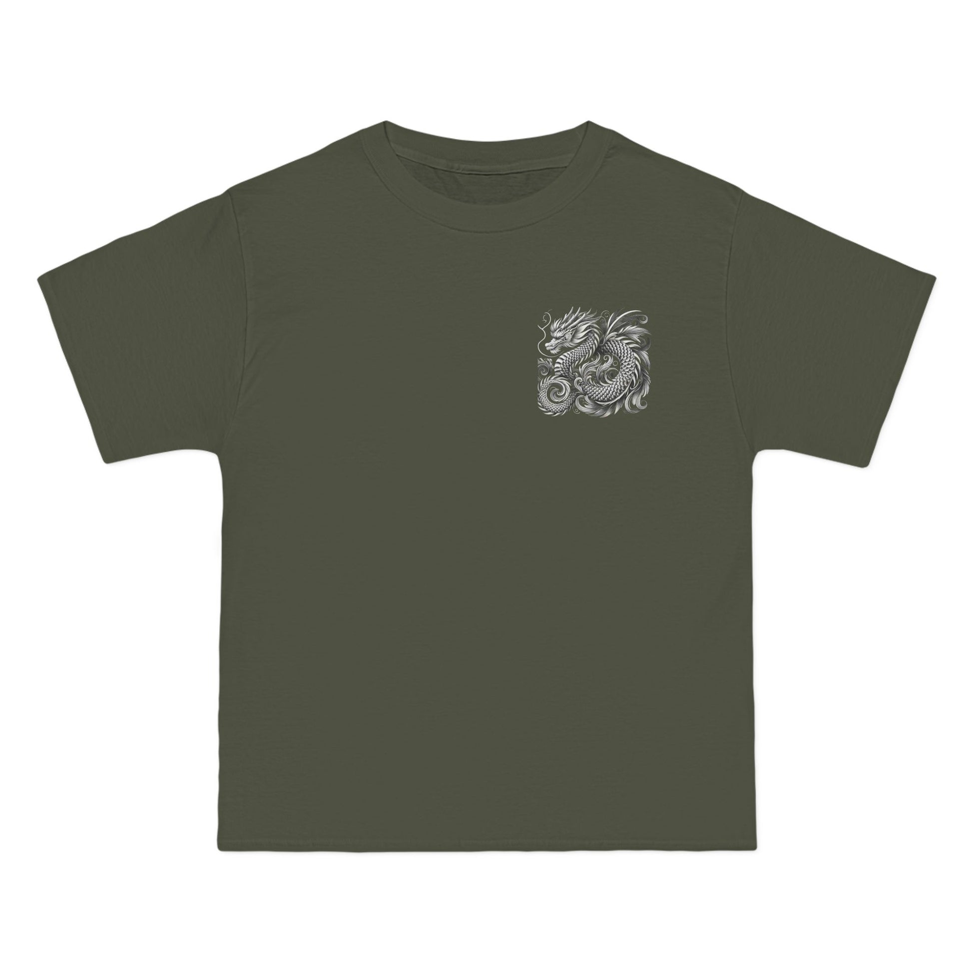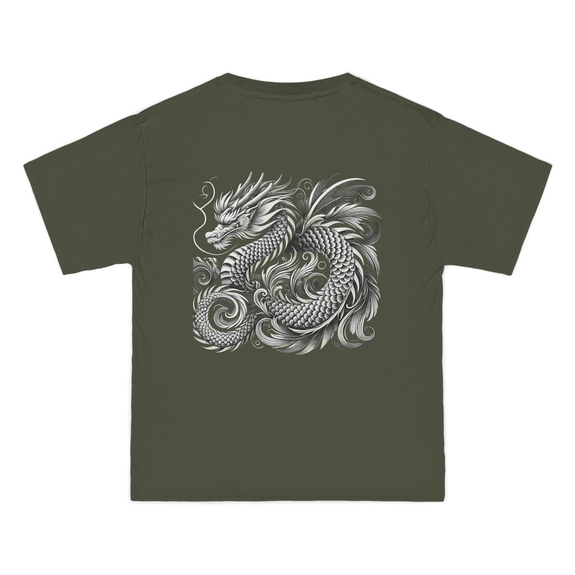 Step into a world where fantasy meets fashion with our Stylized Dragon: Monochromatic Deco tee. This design isn't just a style statement - it's wearable art. With every glance, you'll unravel a new detail, from the intricate scales to the swirling lines, all blending seamlessly in a high-contrast design. Echoing the might and magic of dragons, this tee is your ticket to a realm where the extraordinary comes to life.
