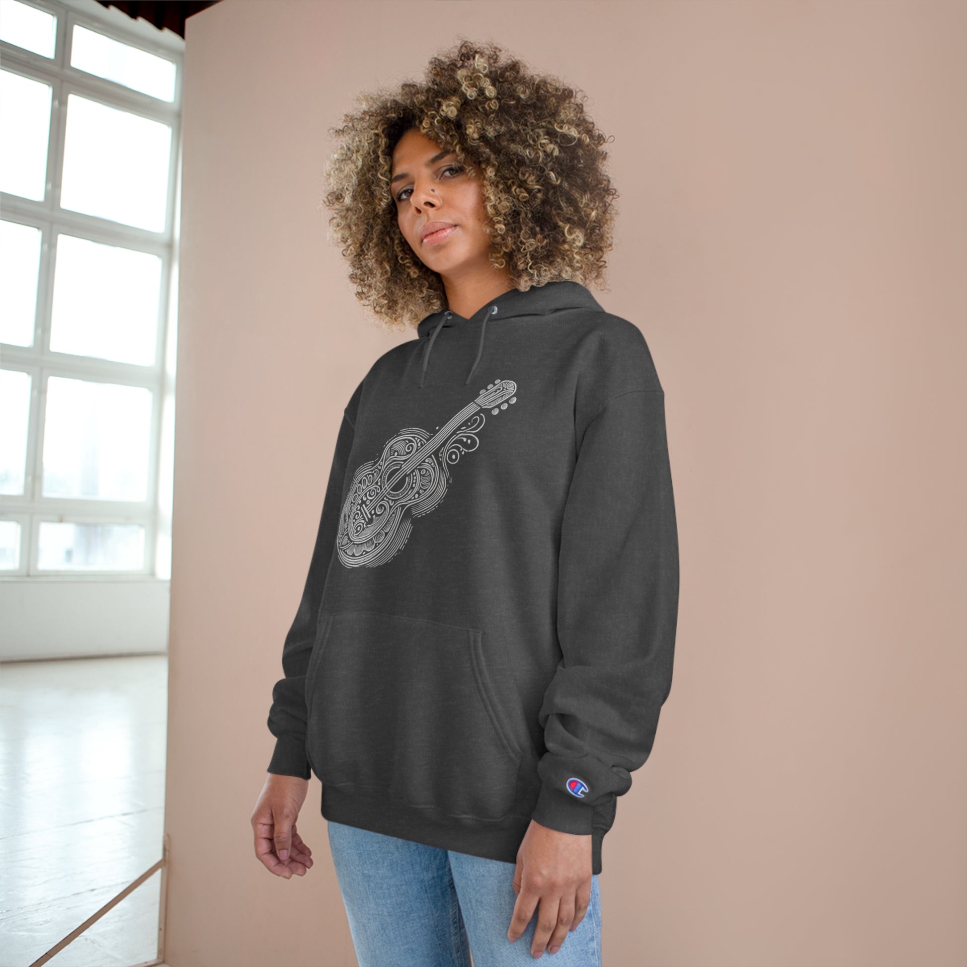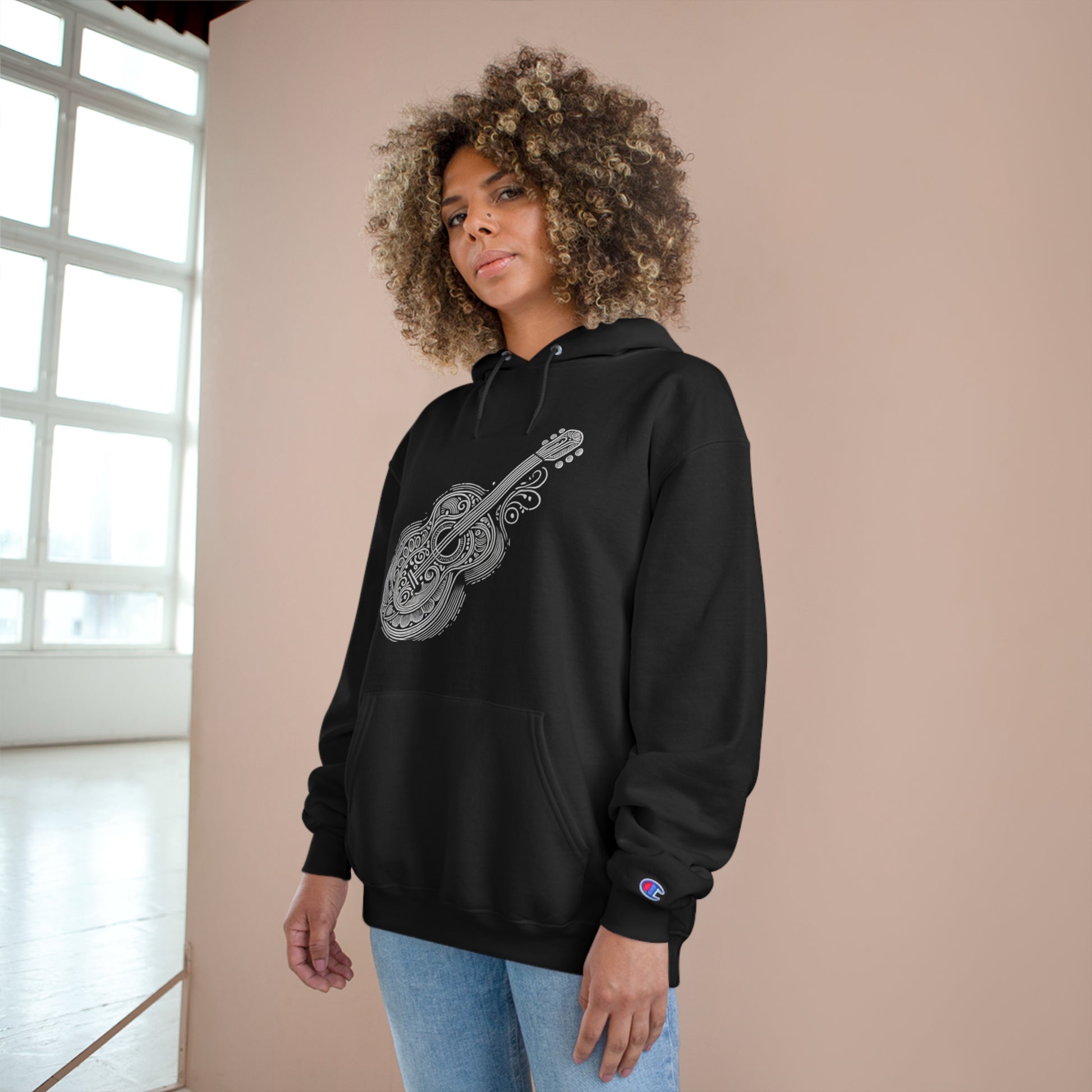Step up your style game with our Stylized Guitar: Monochromatic Deco hoodie! Crafted with a blend of comfort and sustainability, this hoodie is 50% cotton and 50% polyester, proudly made with up to 5% recycled plastic bottles. It's a harmonious symphony of music and floral art, meticulously designed for those who wear their world with pride.