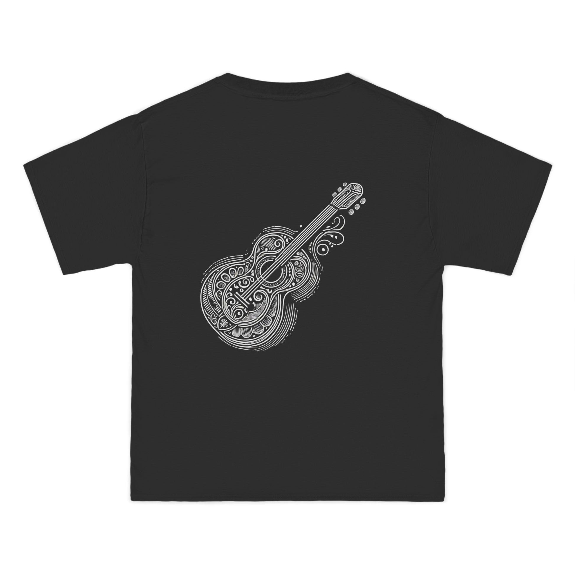 Unleash your creativity and march to the beat of your own guitar with our Stylized Guitar: Monochromatic Deco piece from Whatever Clothing. Designed with music lovers in mind, this wearable art piece harmoniously blends intricate guitar designs and delicate floral patterns, creating a symphony of style that's uniquely you.