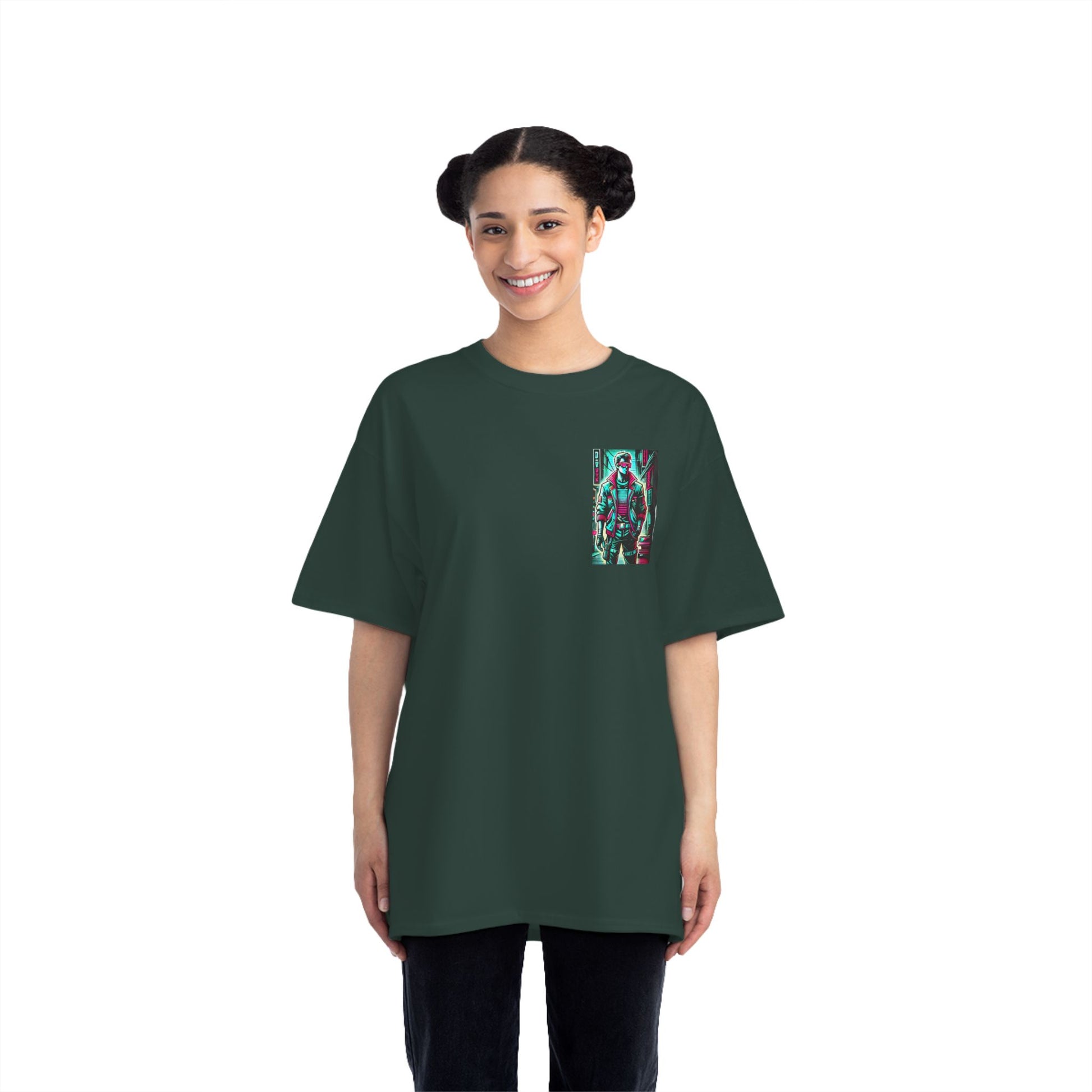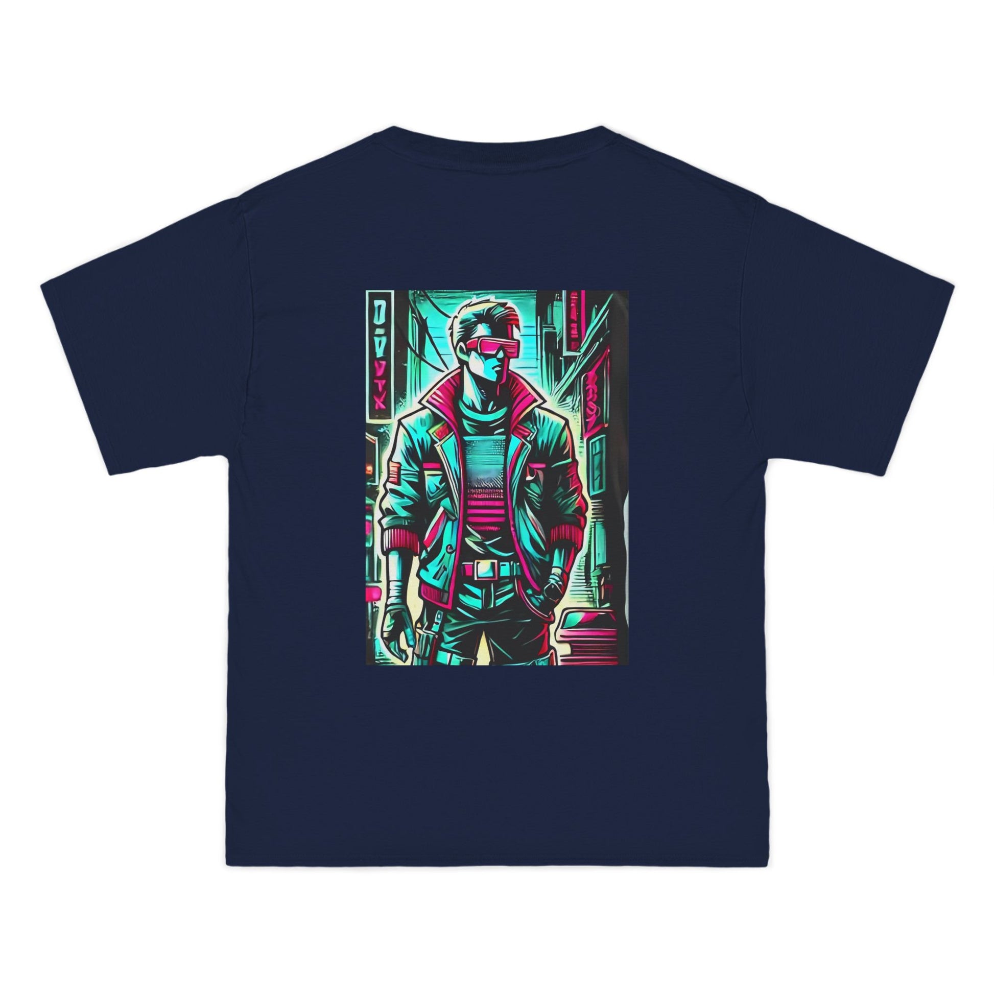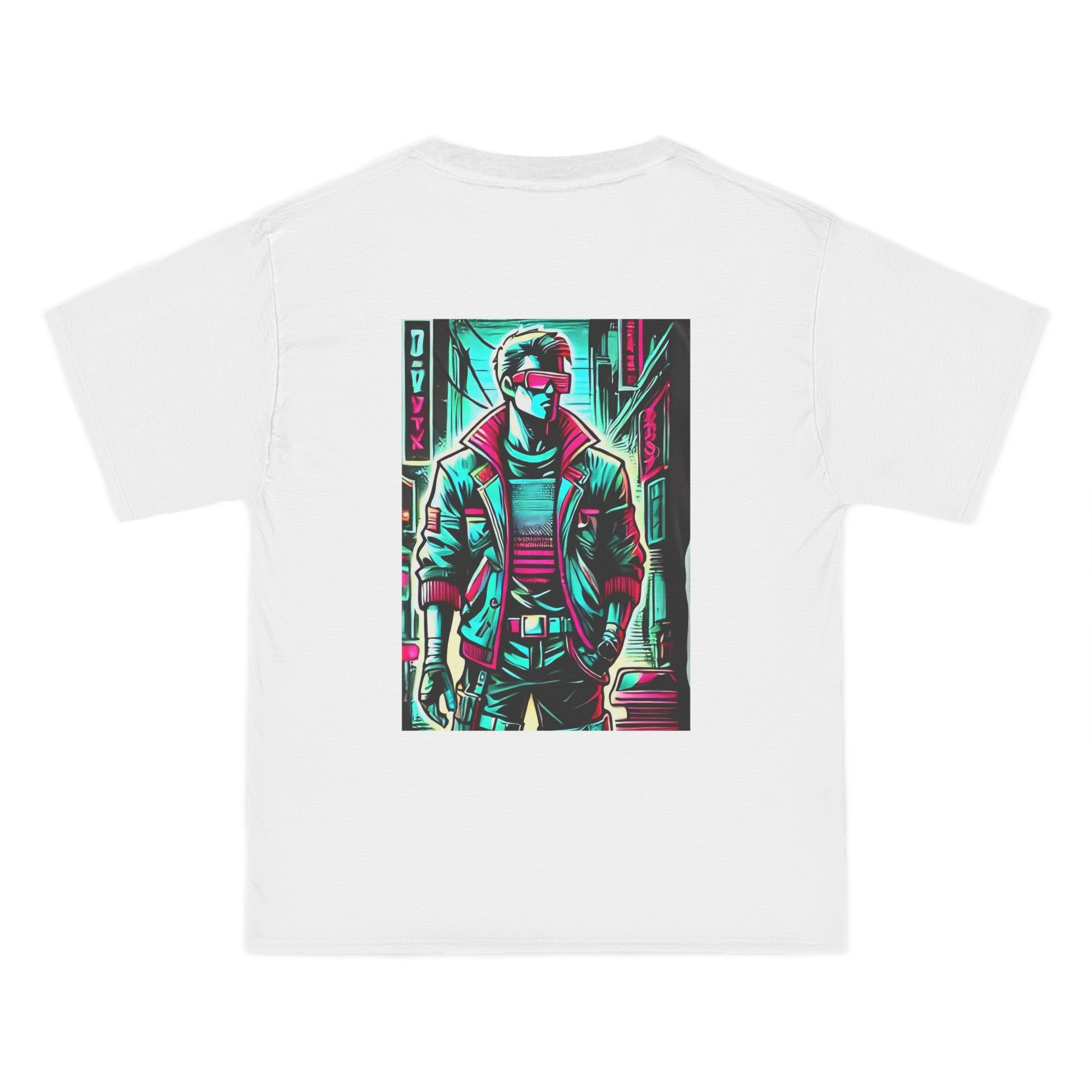 Step into the future with a blast from the past! Our Cyberpunk Retro-futuristic T-shirt, featuring a stylized human figure, is a true piece of wearable art. This vivid design, glowing with neon accents, fuses modern and 80s-style streetwear, and is set against a gritty cyberpunk backdrop that transports you into a universe of imagination and innovation.
