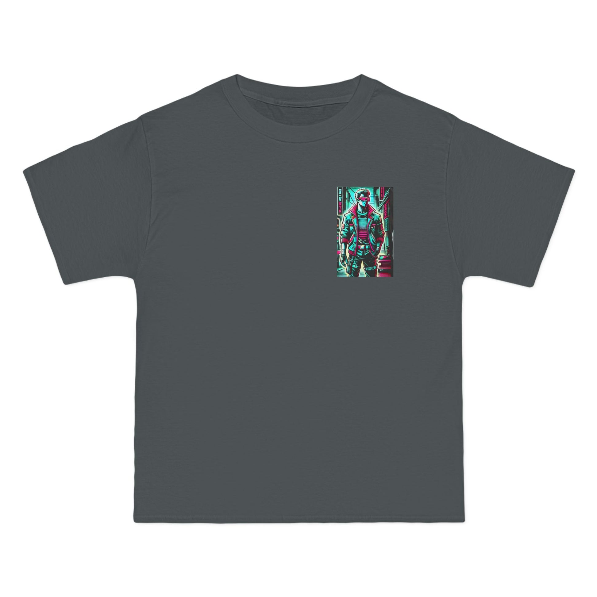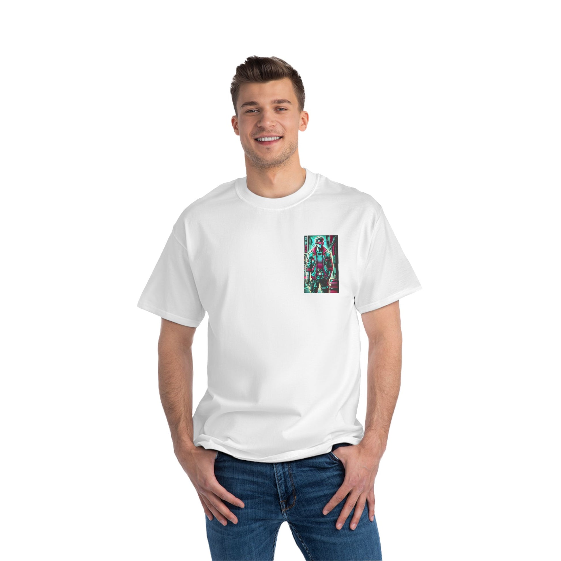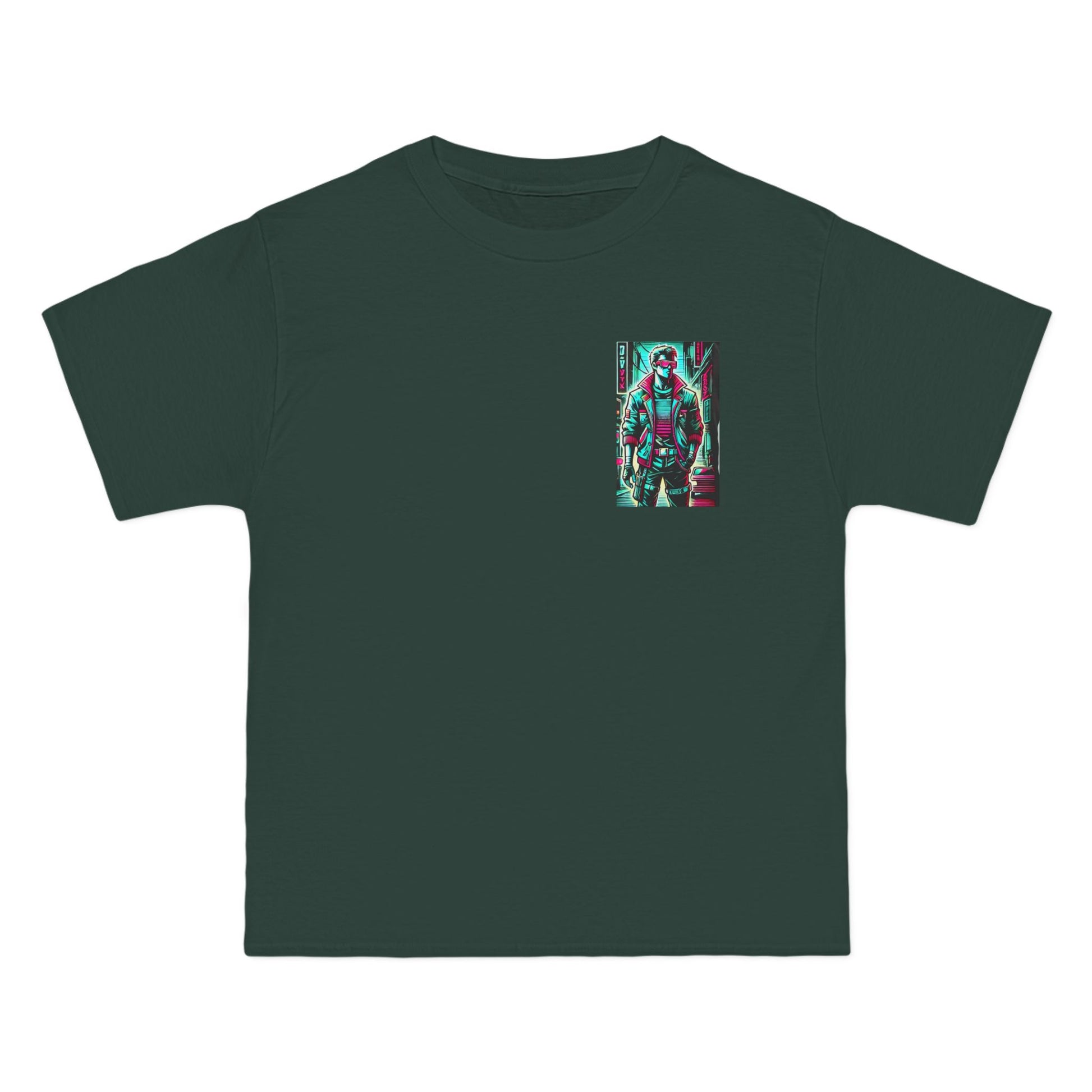 Step into the future with a blast from the past! Our Cyberpunk Retro-futuristic T-shirt, featuring a stylized human figure, is a true piece of wearable art. This vivid design, glowing with neon accents, fuses modern and 80s-style streetwear, and is set against a gritty cyberpunk backdrop that transports you into a universe of imagination and innovation.