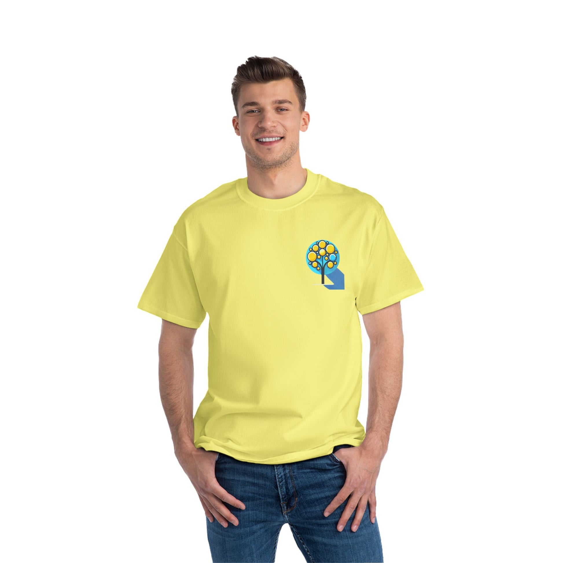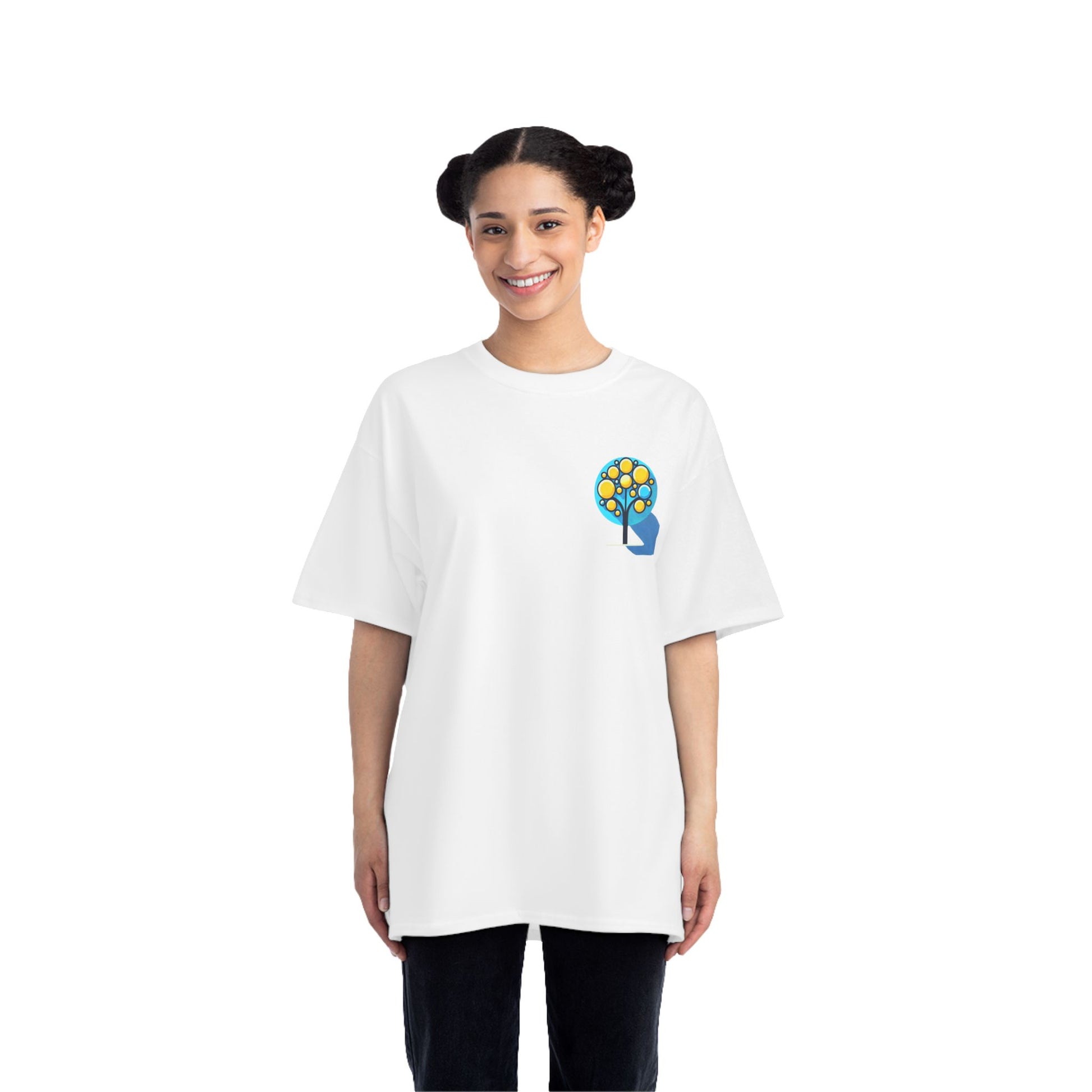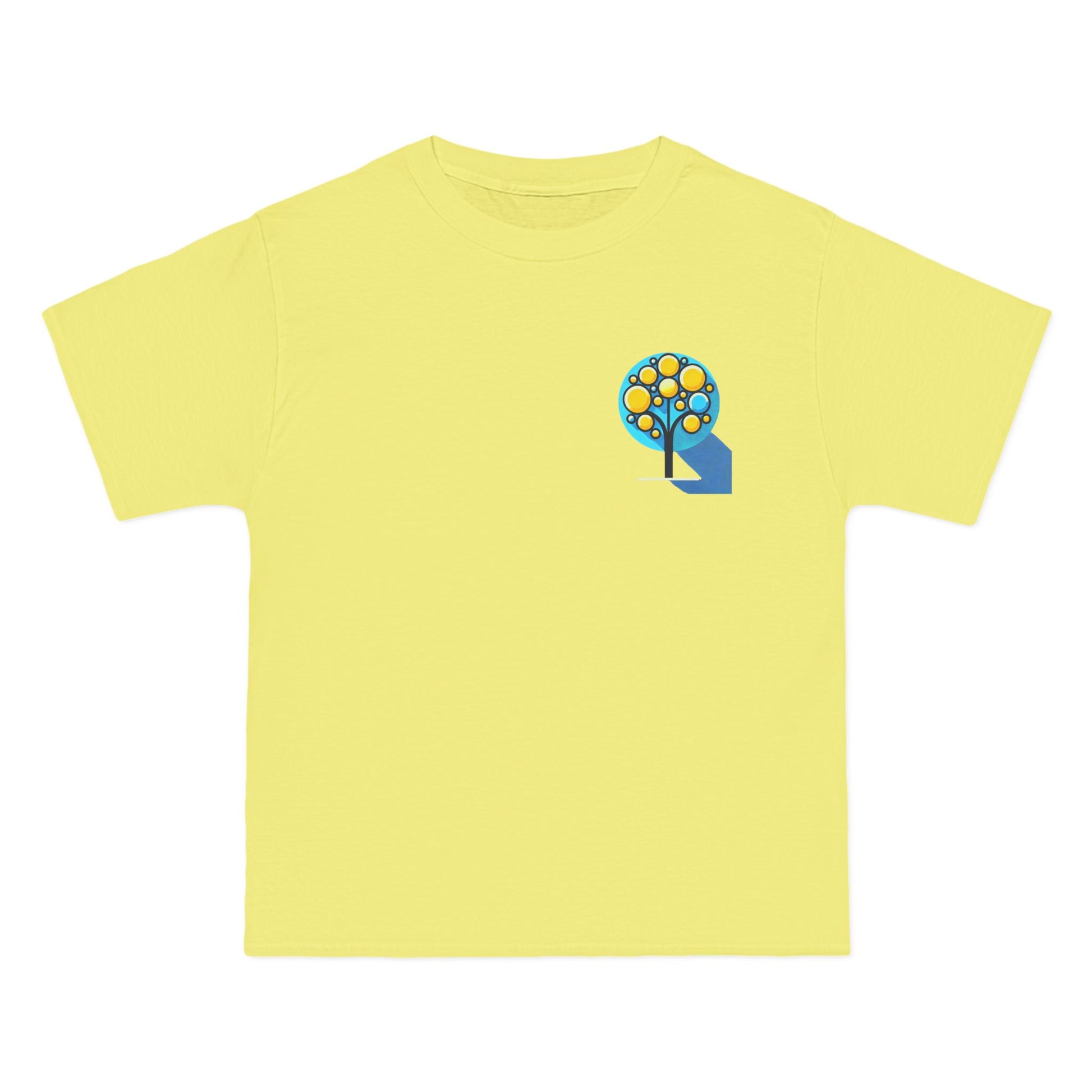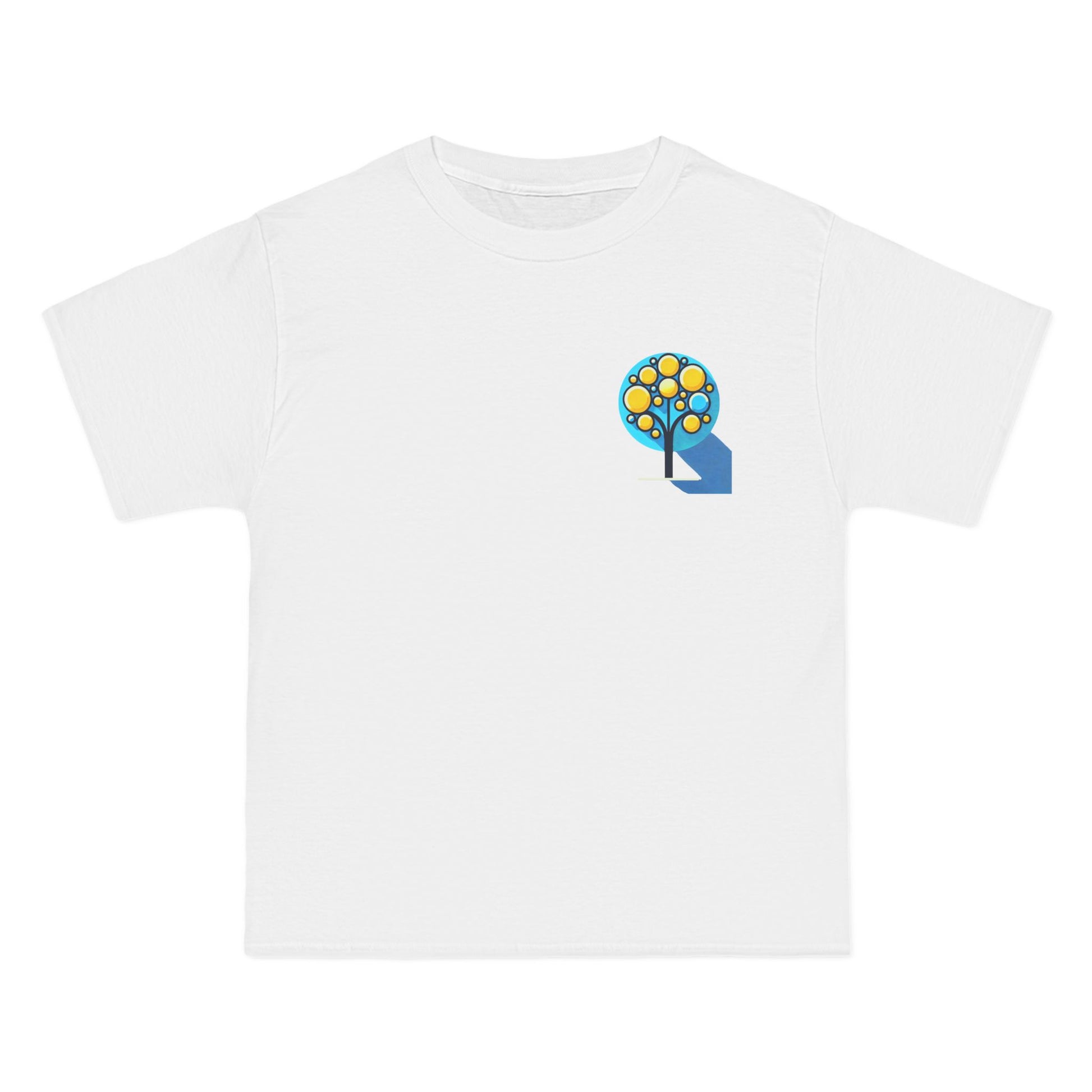 Unleash your creativity and wear your world with our Stylized Tree: Surreal Minimalism tee. This piece of wearable art features a surrealistic tree, its elongated trunk reaching for the sky, with circular yellow leaves that twinkle like stars against the backdrop of a serene blue canvas. The bold, minimalist shapes offer a fresh twist on nature's beauty, and the design's vibrant colors are sure to turn heads.