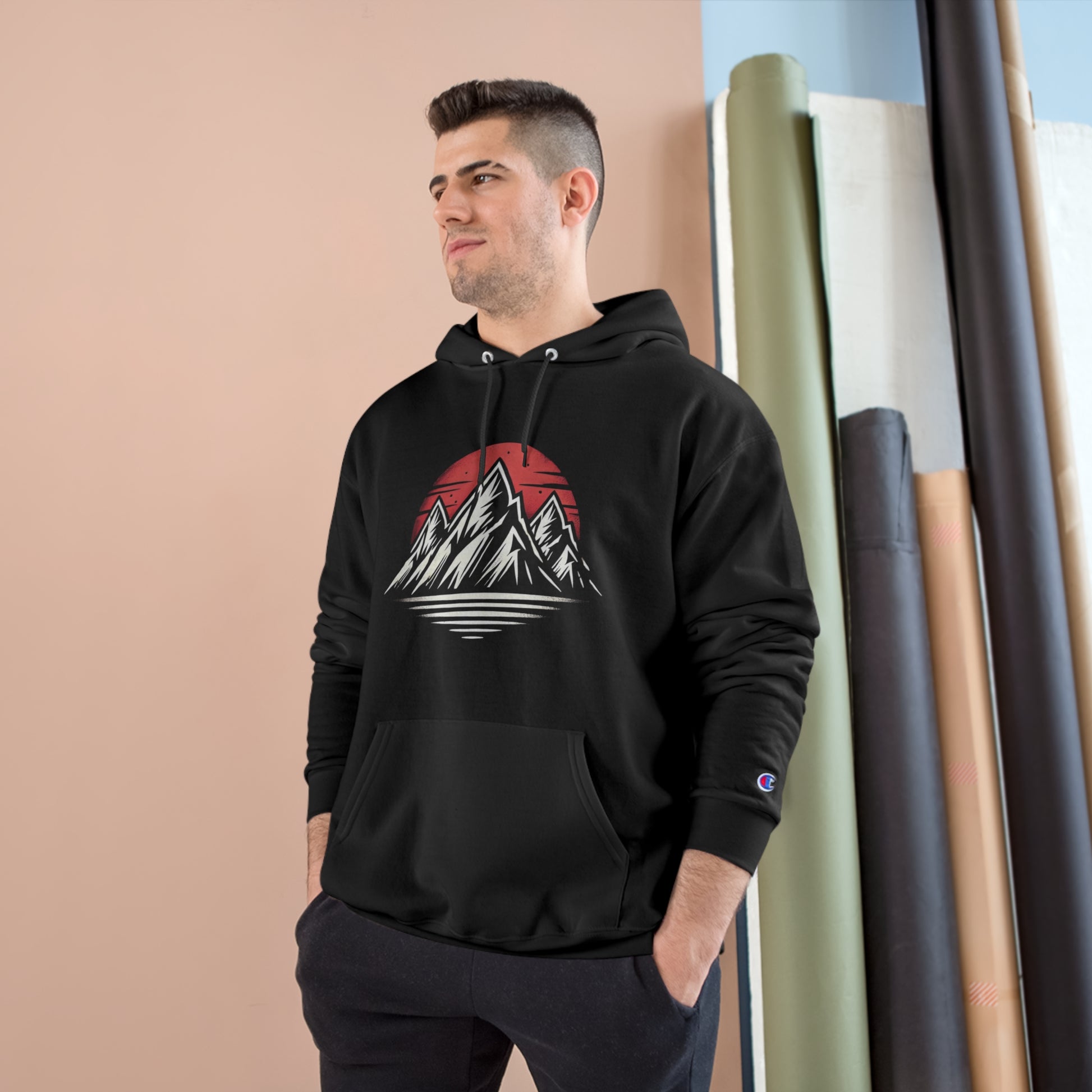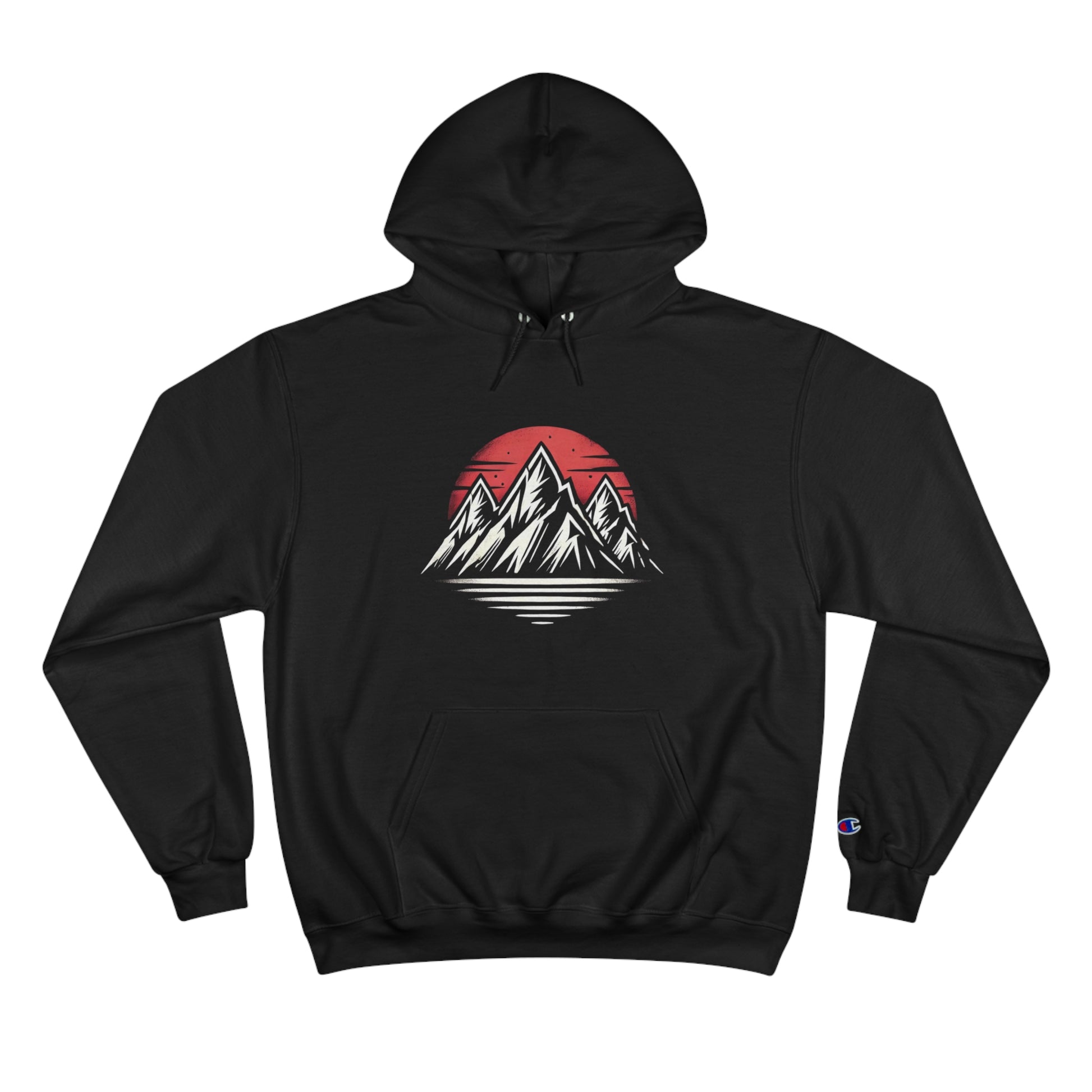 Unleash your creativity with our Mountain Silhouette: Gothic Streetwear. This unique piece, guaranteed to turn heads, features a dramatic black and white mountain range offset by a blood-red moon. This high-contrast scene is not just a design, it's a statement. Crafted using AI technology, this wearable art allows you to 'Wear your World' on your sleeves.