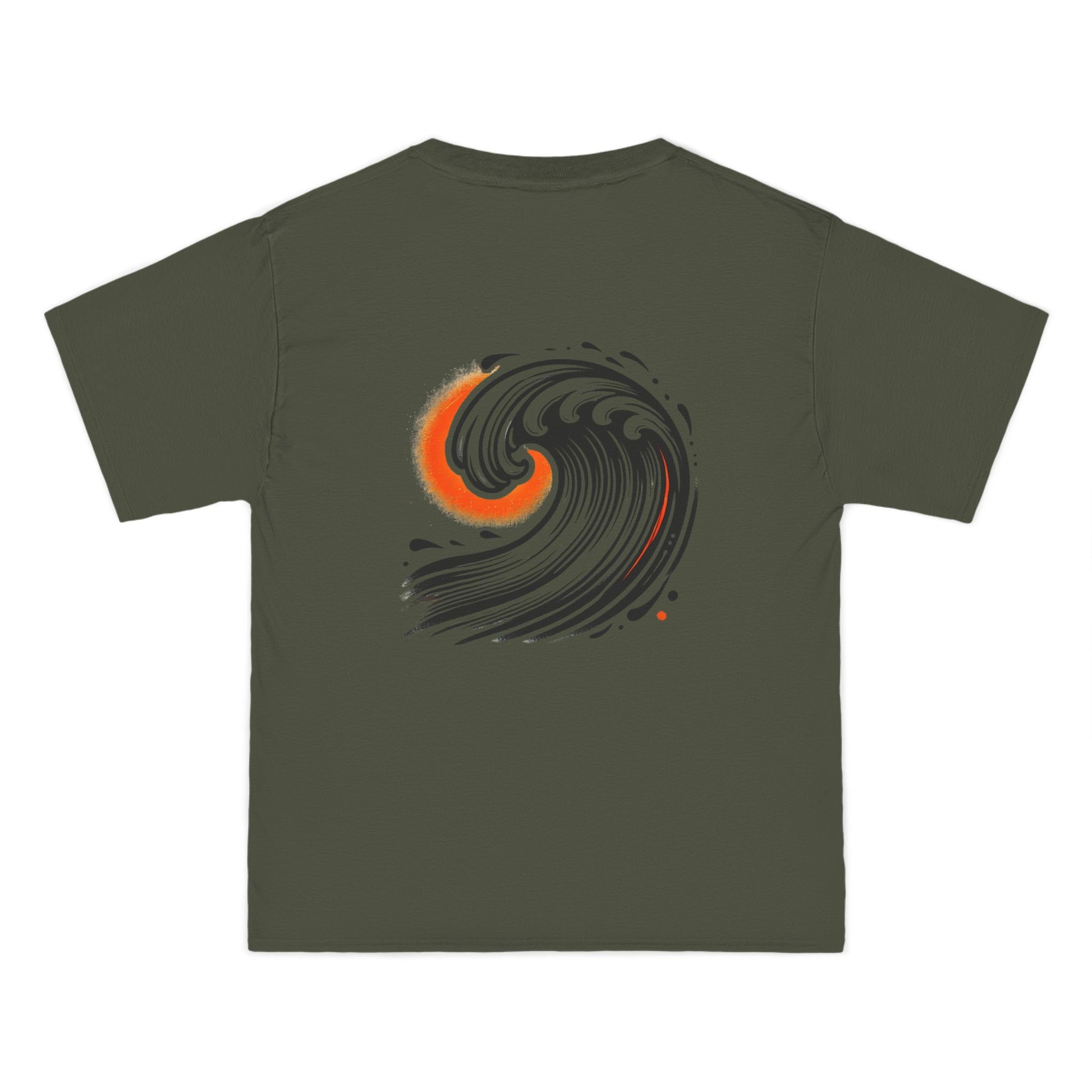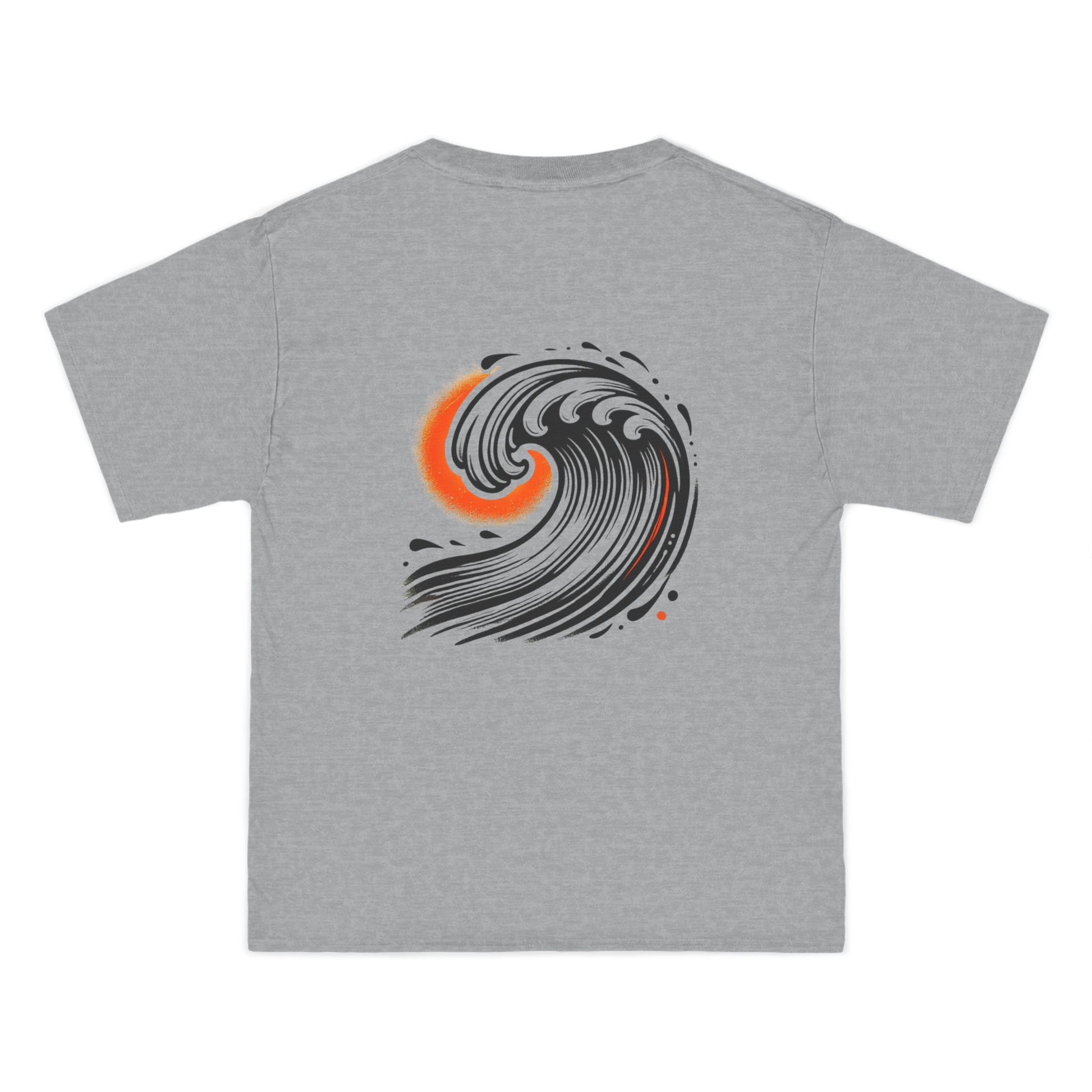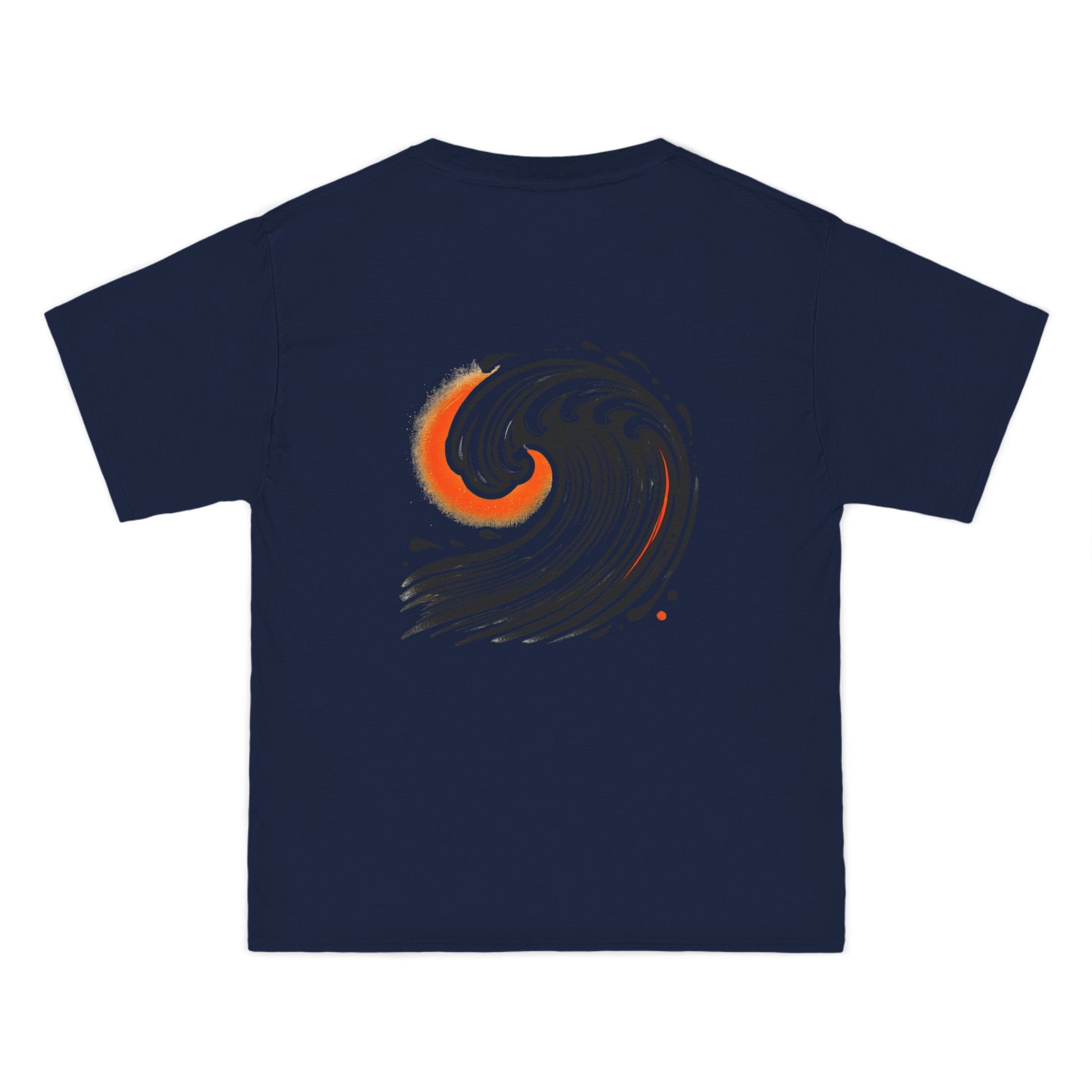 Make a splash with our Surf Wave: Pop Art Minimalistic tee. This isn't just a T-shirt, it's wearable art. Crafted with a vibrant, AI-generated design, this piece features a stylized ocean wave with sharp black lines and a fiery orange splatter, bringing a dynamic, energetic vibe to your wardrobe.
